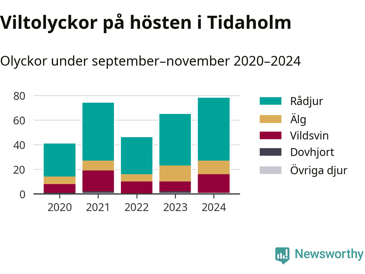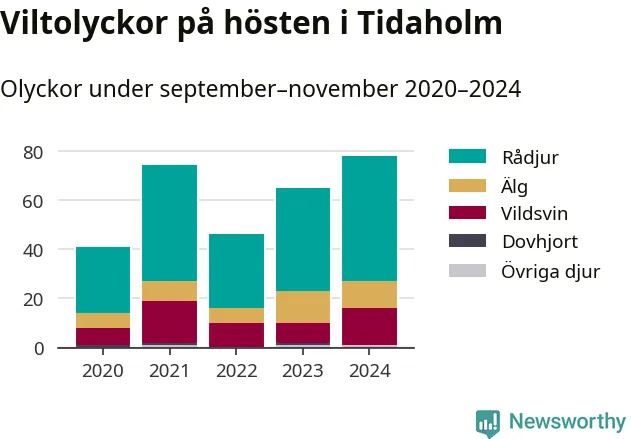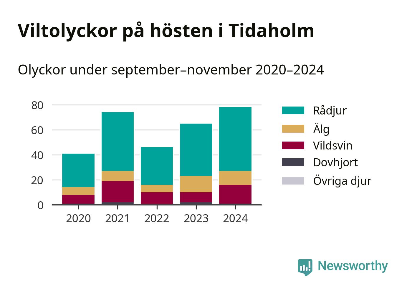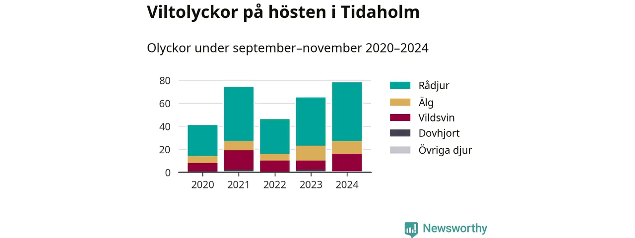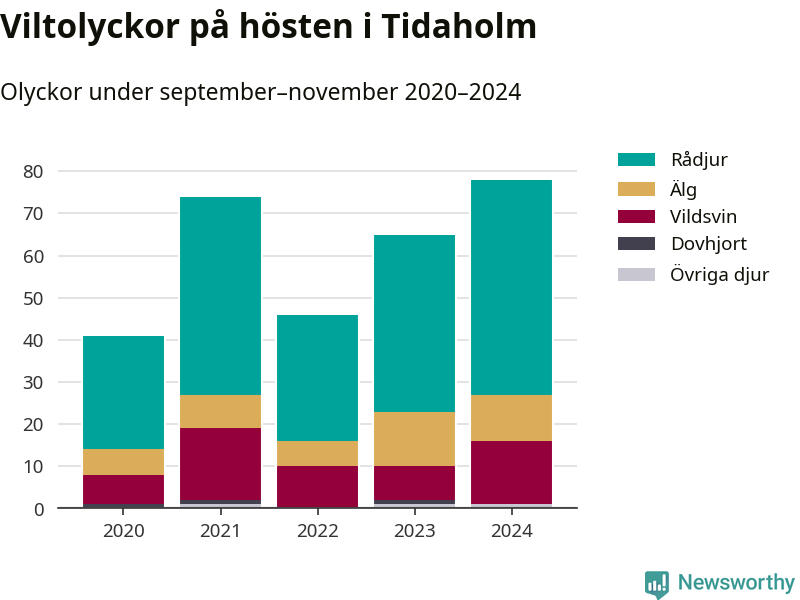 Under de senaste höstarna har antalet viltolyckor ökat i Sverige. I fjol höst noterades också flest viltolyckor i Tidaholm hittills under 2020-talet, totalt 78 stycken.