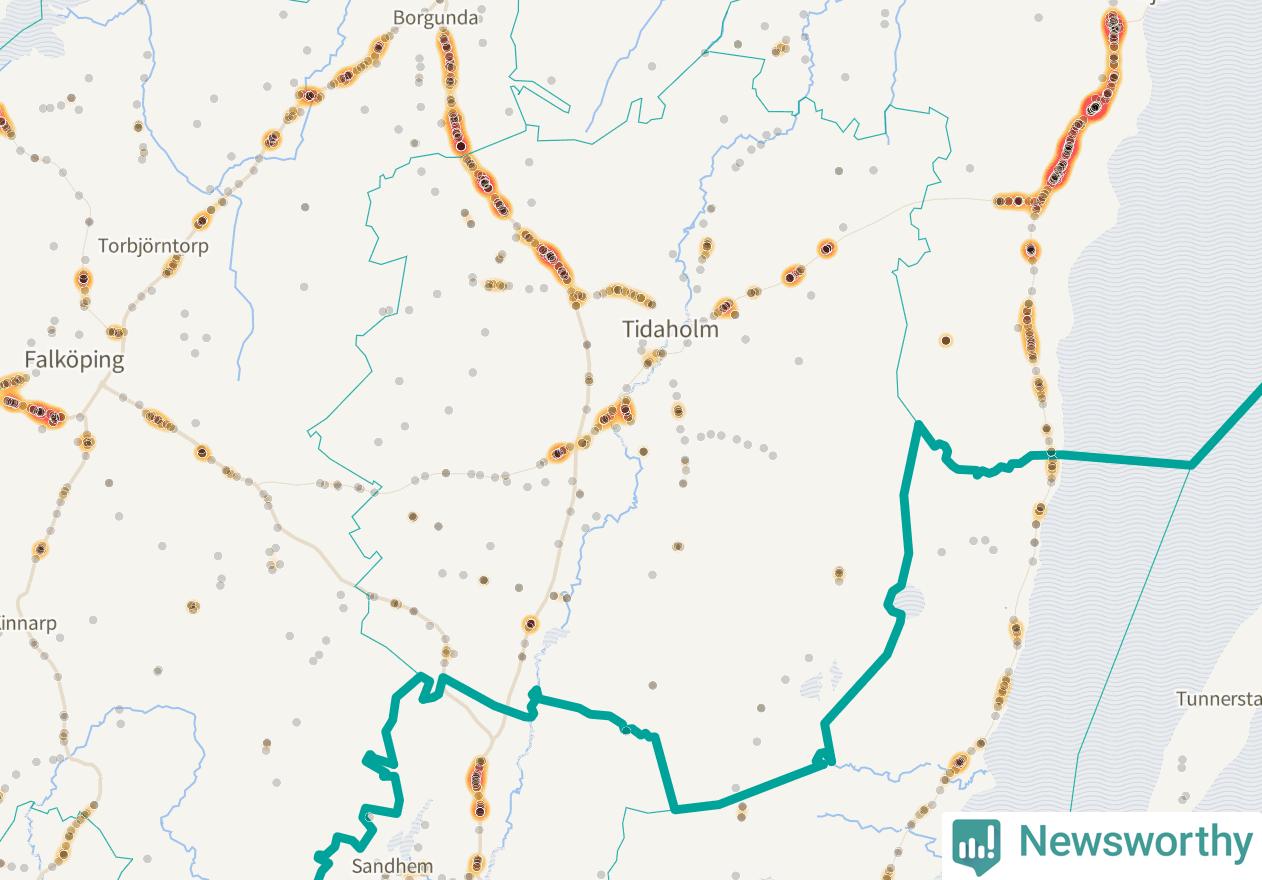 På hösten ökar risken för viltolyckor längs vägarna. Under de senaste fem höstarna har totalt 304 olyckor rapporterats i Tidaholms kommun. Här är de mest drabbade vägarna.