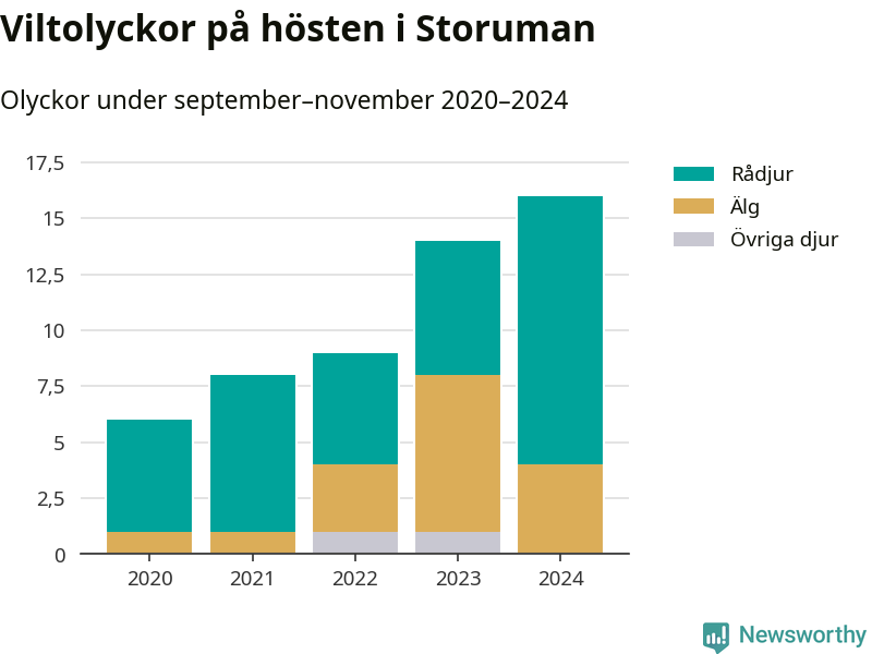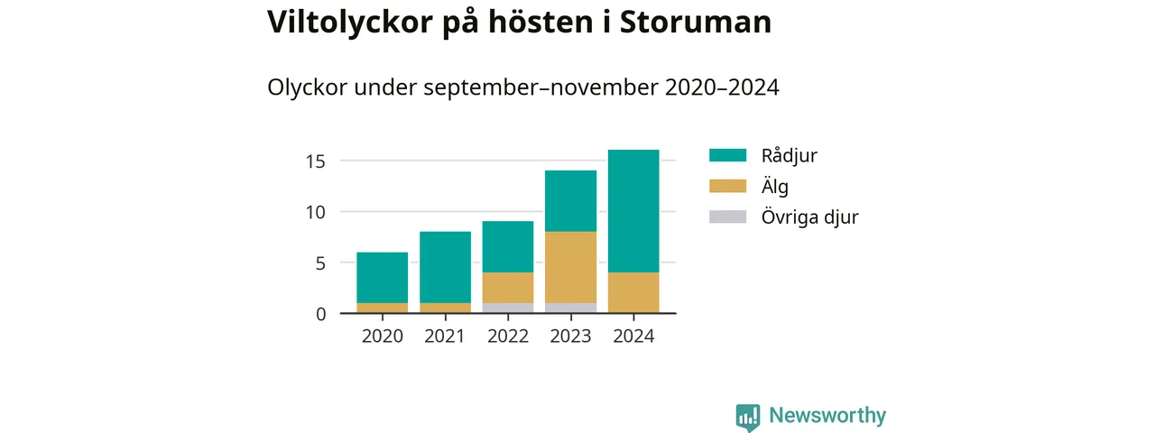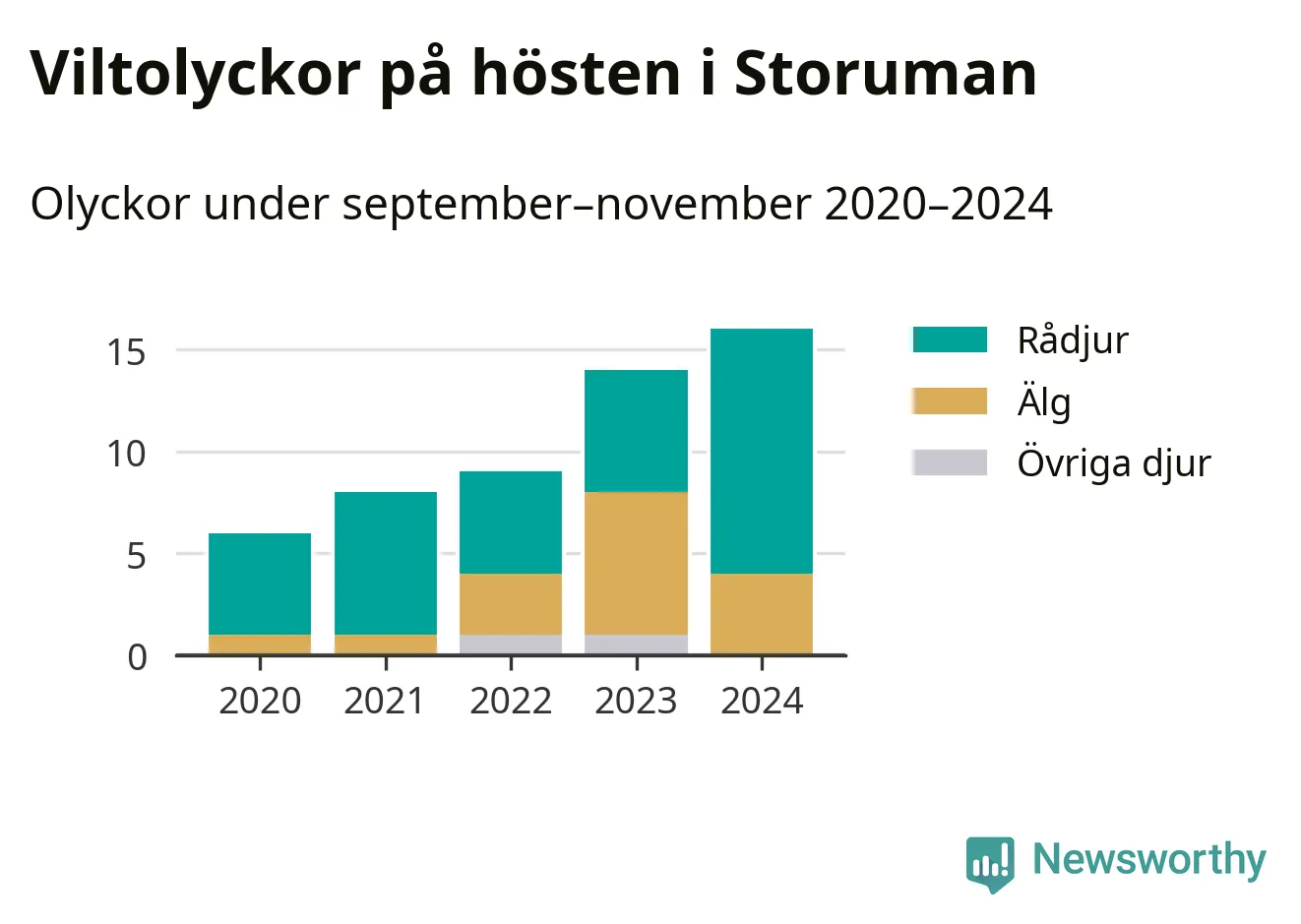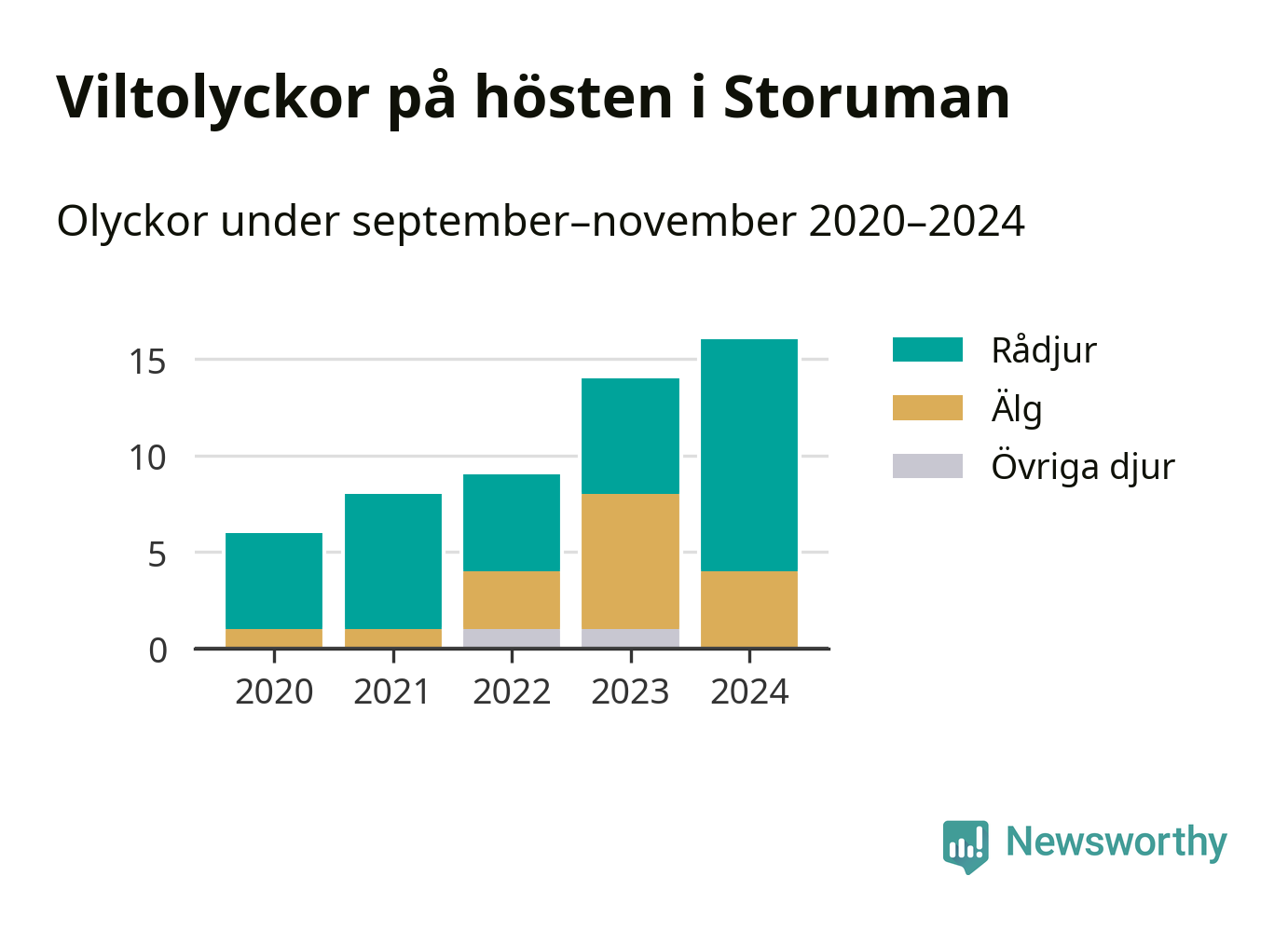 Under de senaste höstarna har antalet viltolyckor ökat i Sverige. I fjol höst noterades också flest viltolyckor i Storuman hittills under 2020-talet, totalt 16 stycken.
