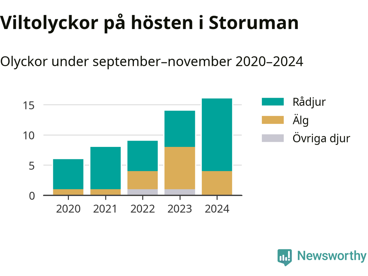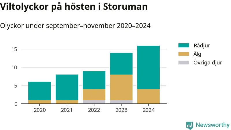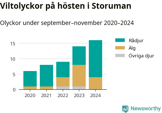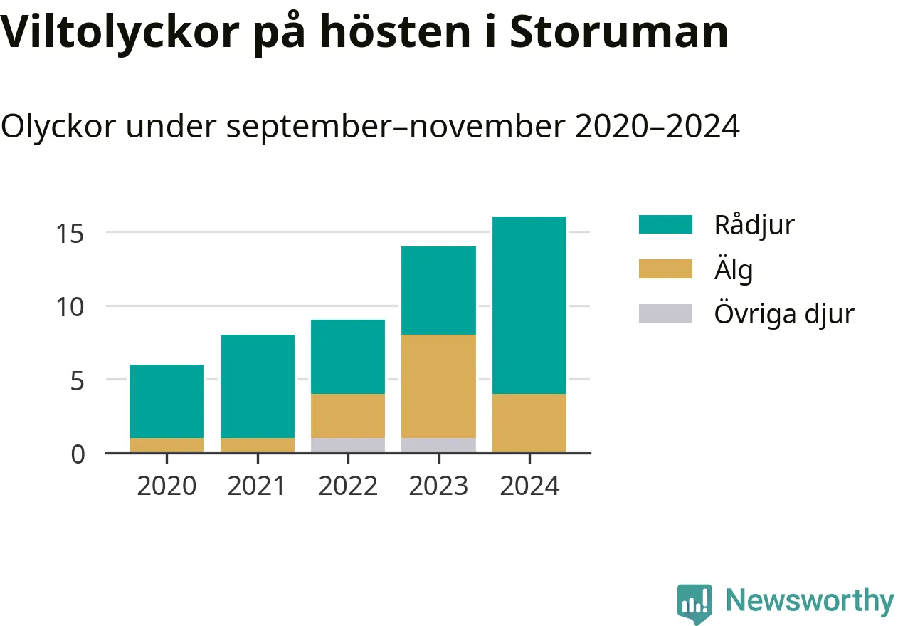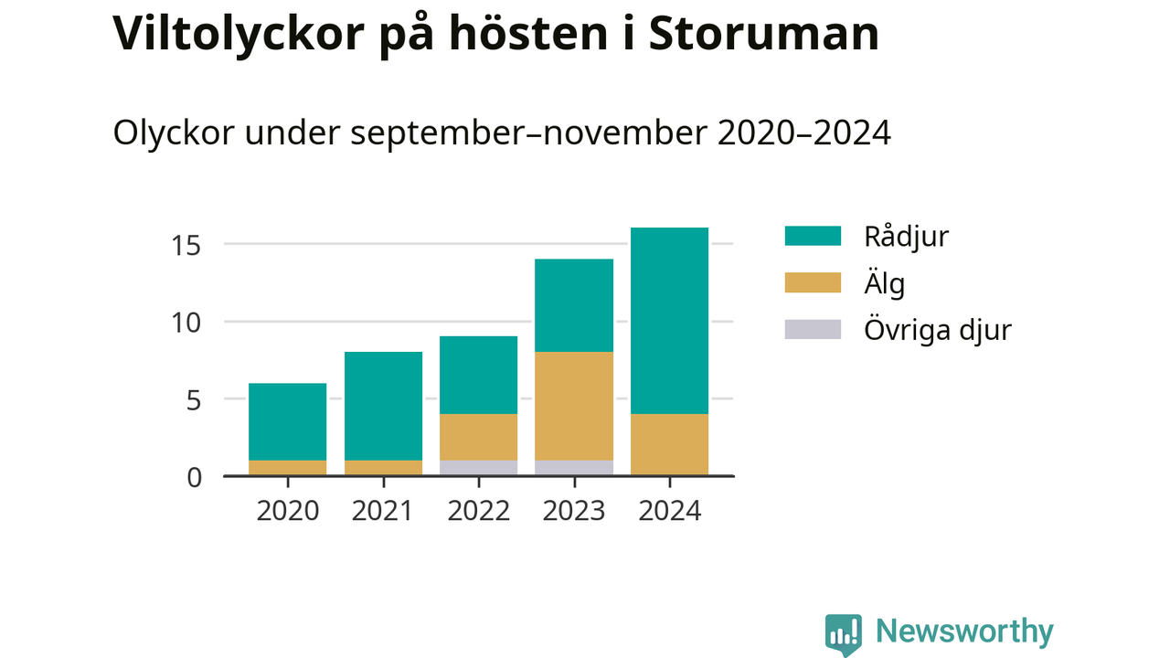 Under de senaste höstarna har antalet viltolyckor ökat i Sverige. I fjol höst noterades också flest viltolyckor i Storuman hittills under 2020-talet, totalt 16 stycken.