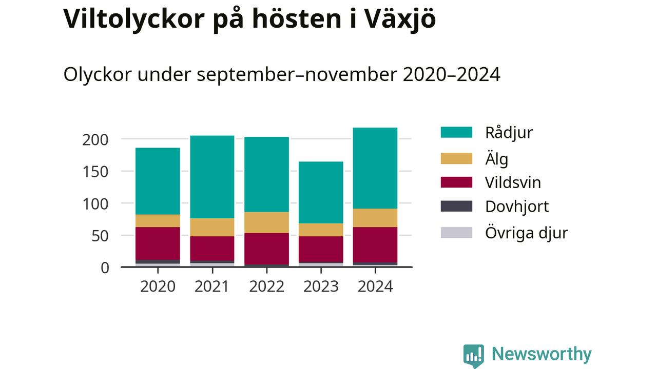 Under de senaste höstarna har antalet viltolyckor ökat i Sverige. I fjol höst noterades också flest viltolyckor i Växjö hittills under 2020-talet, totalt 217 stycken.