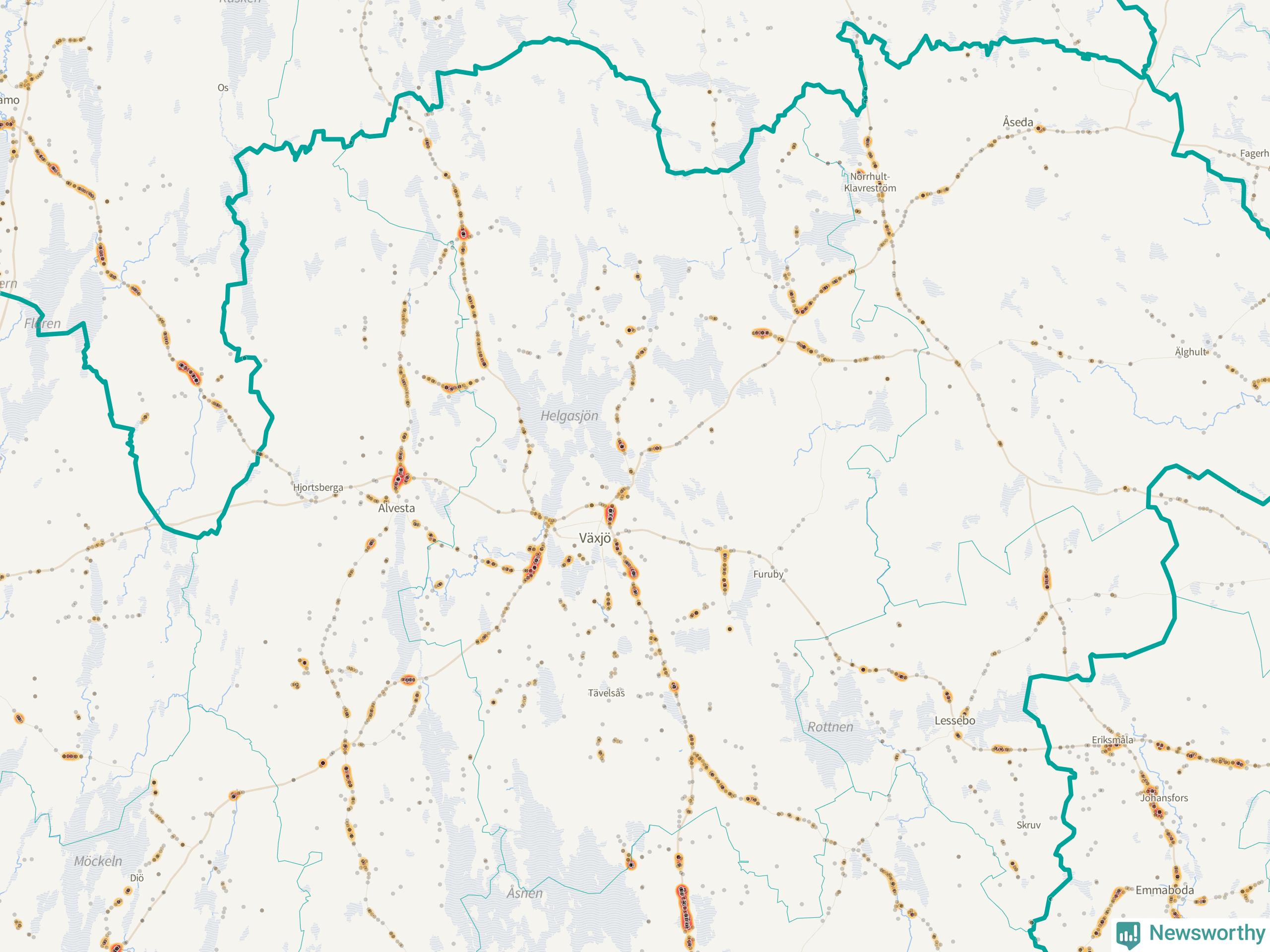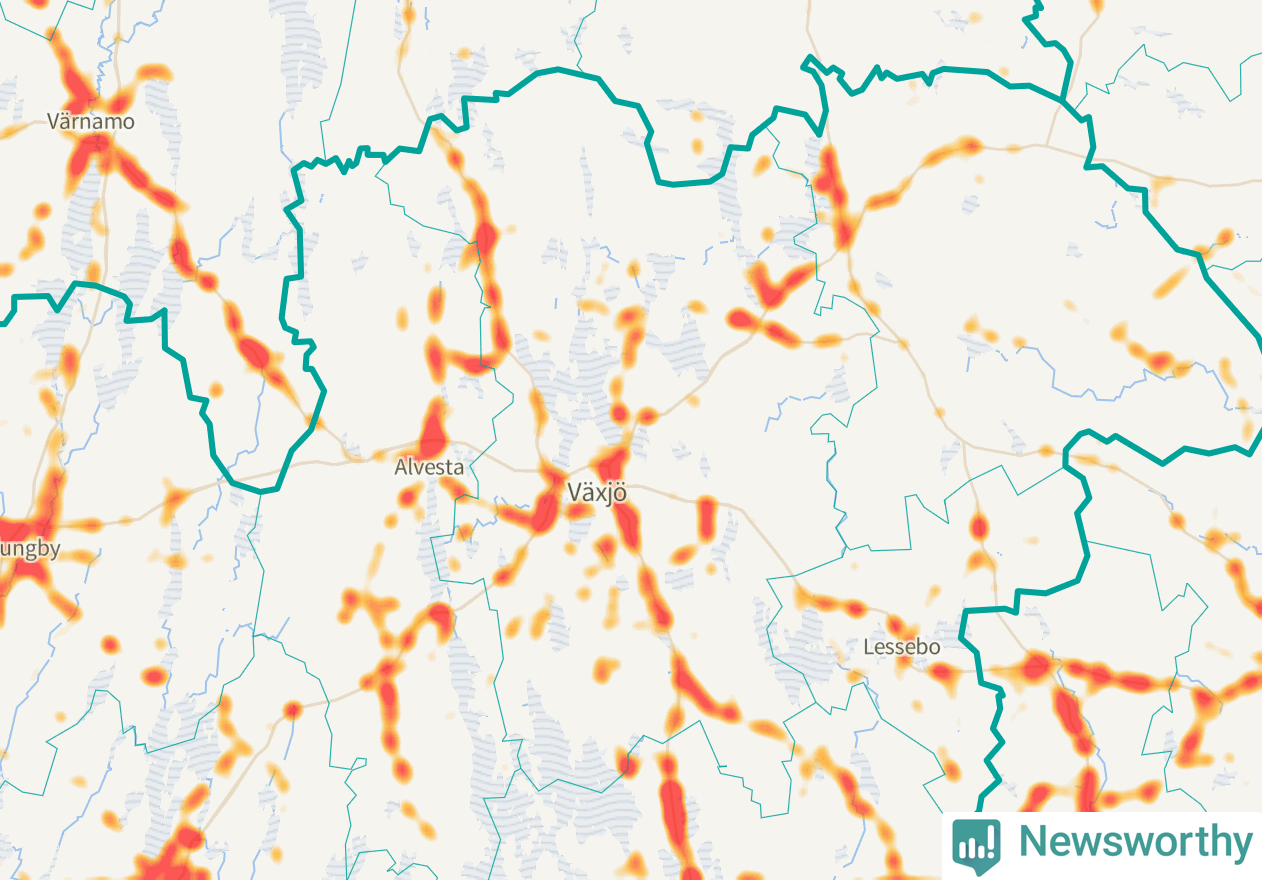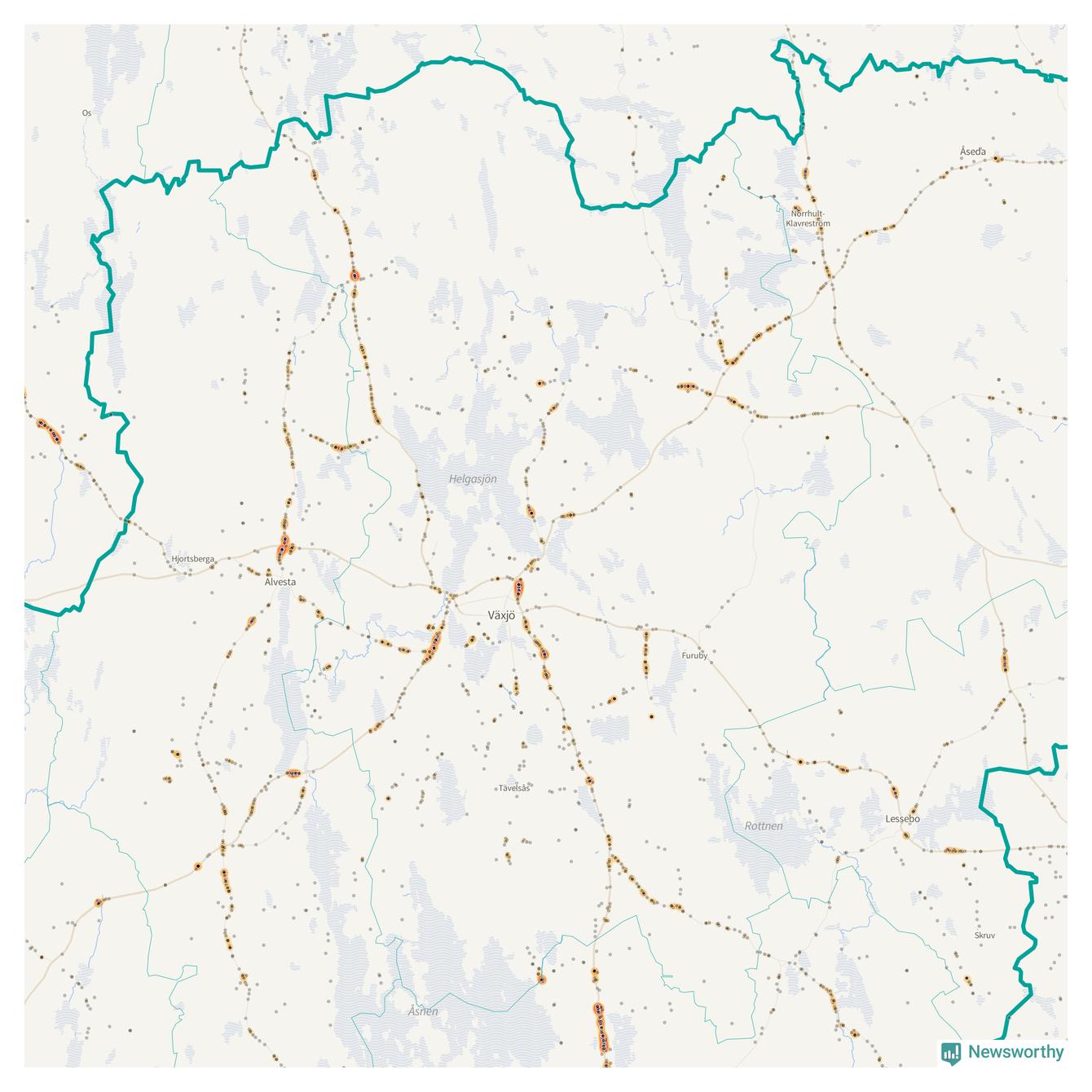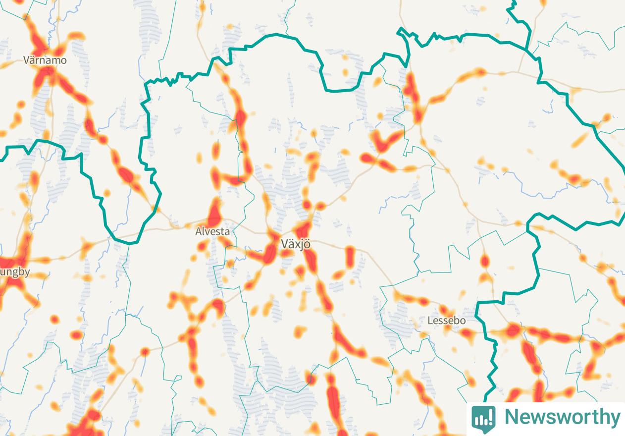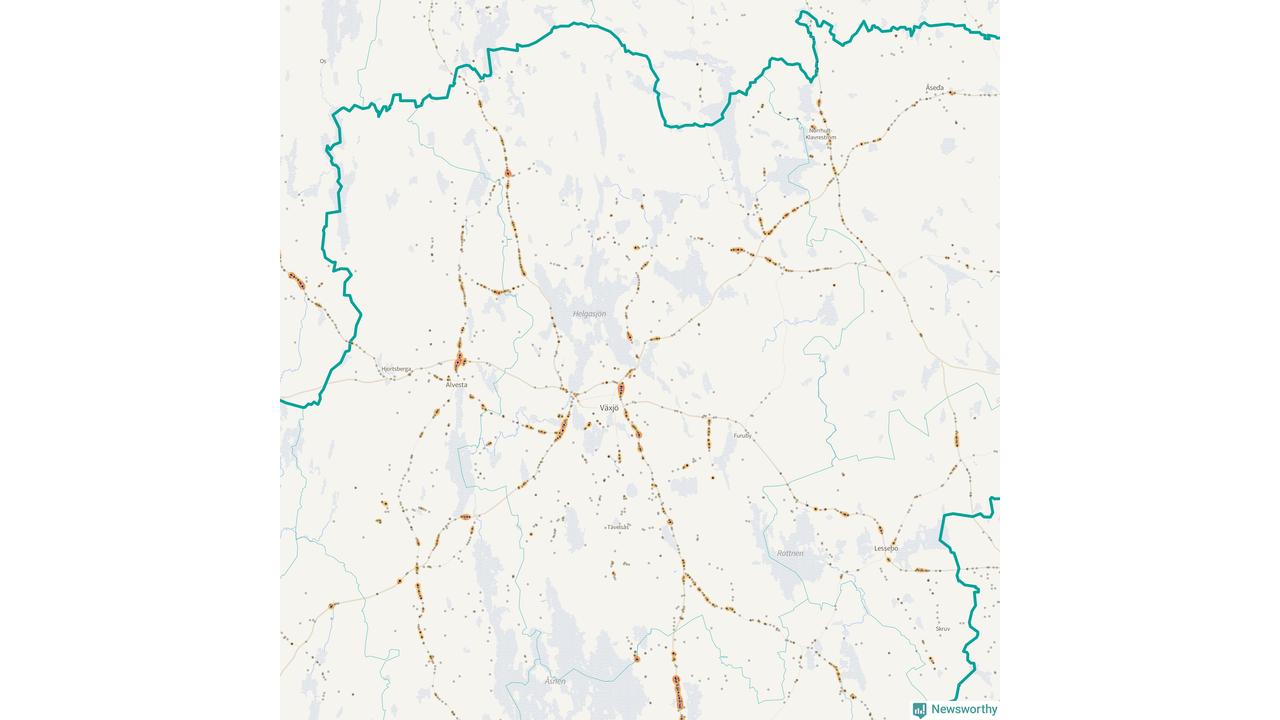 Här sker viltolyckorna i Växjö