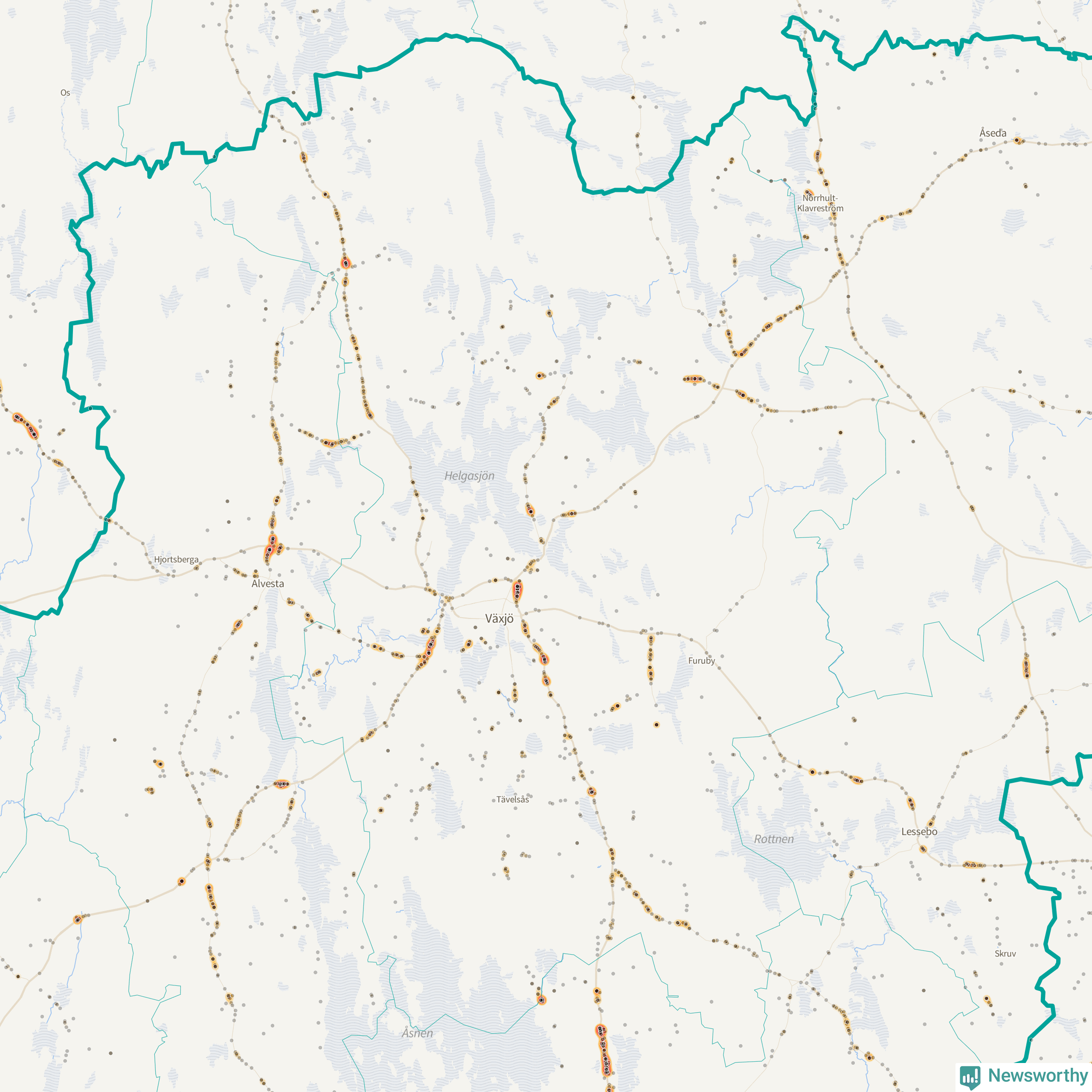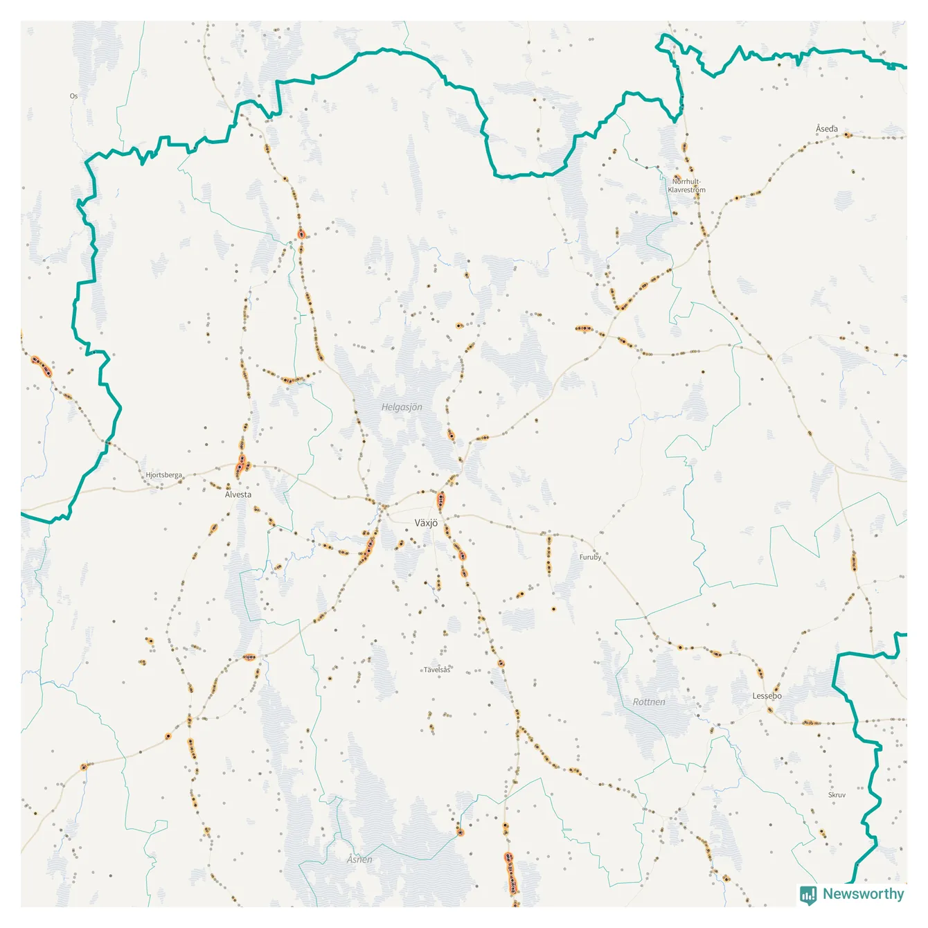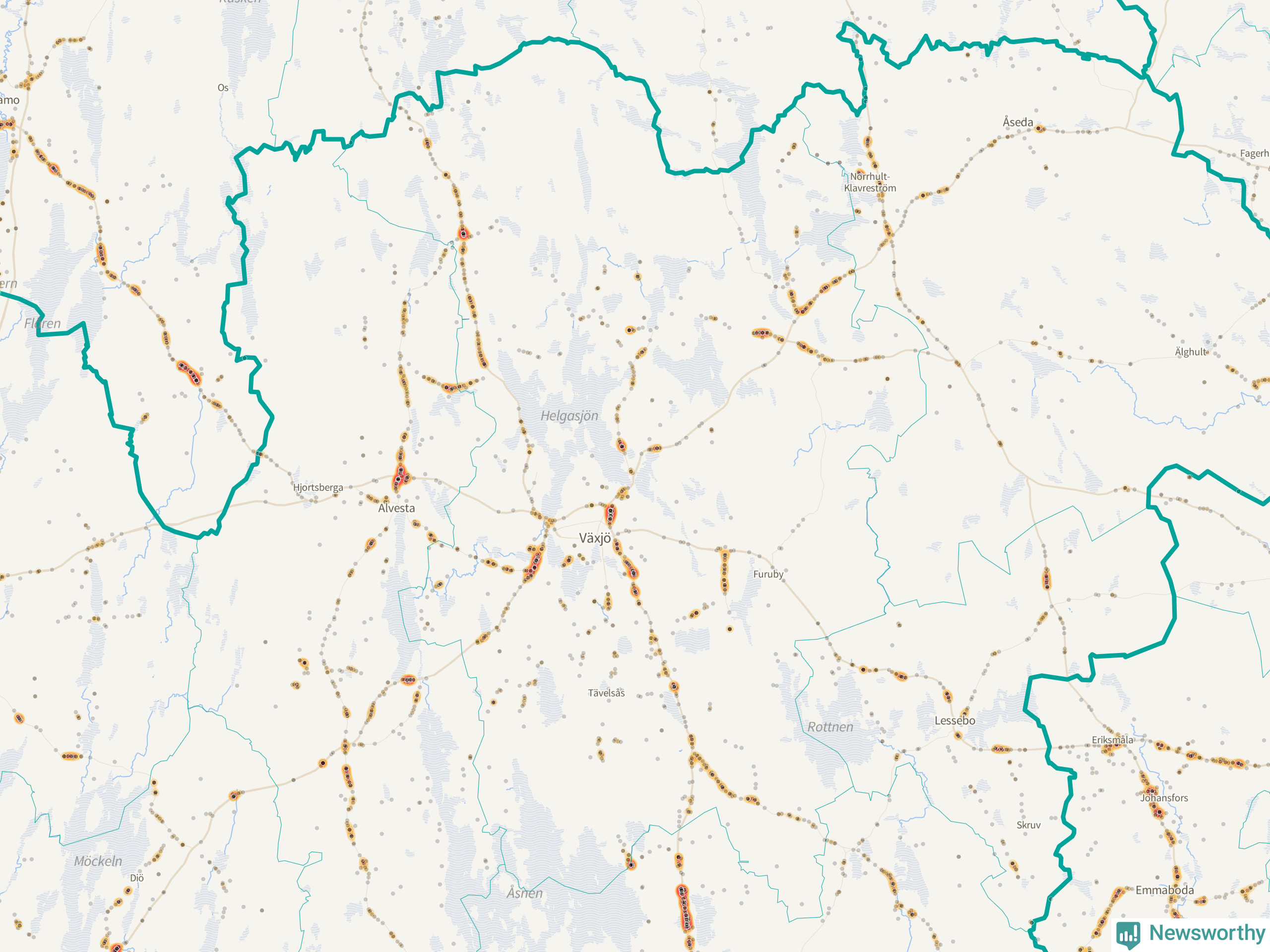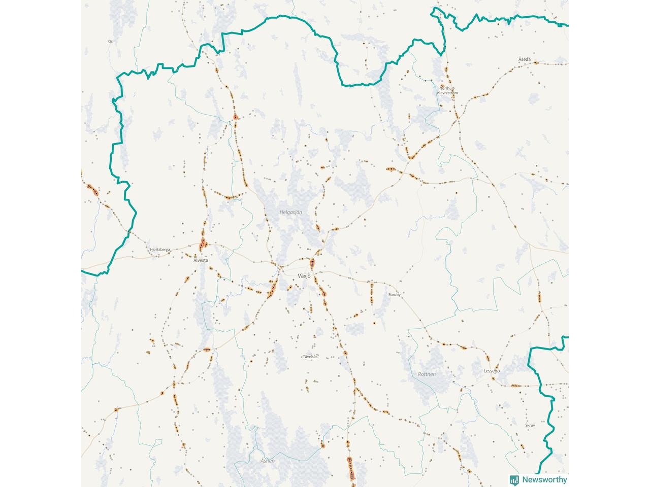 Här sker viltolyckorna i Växjö