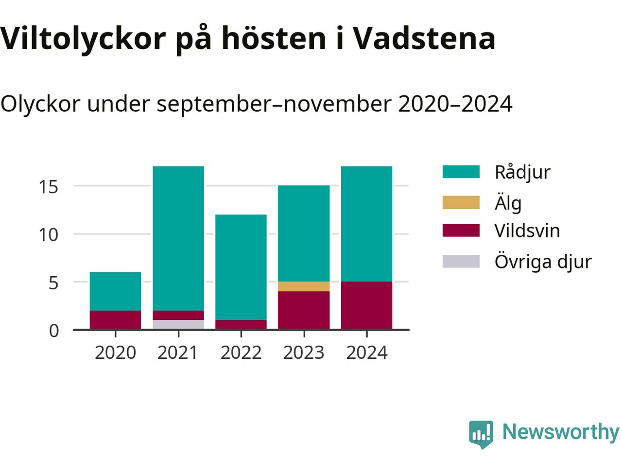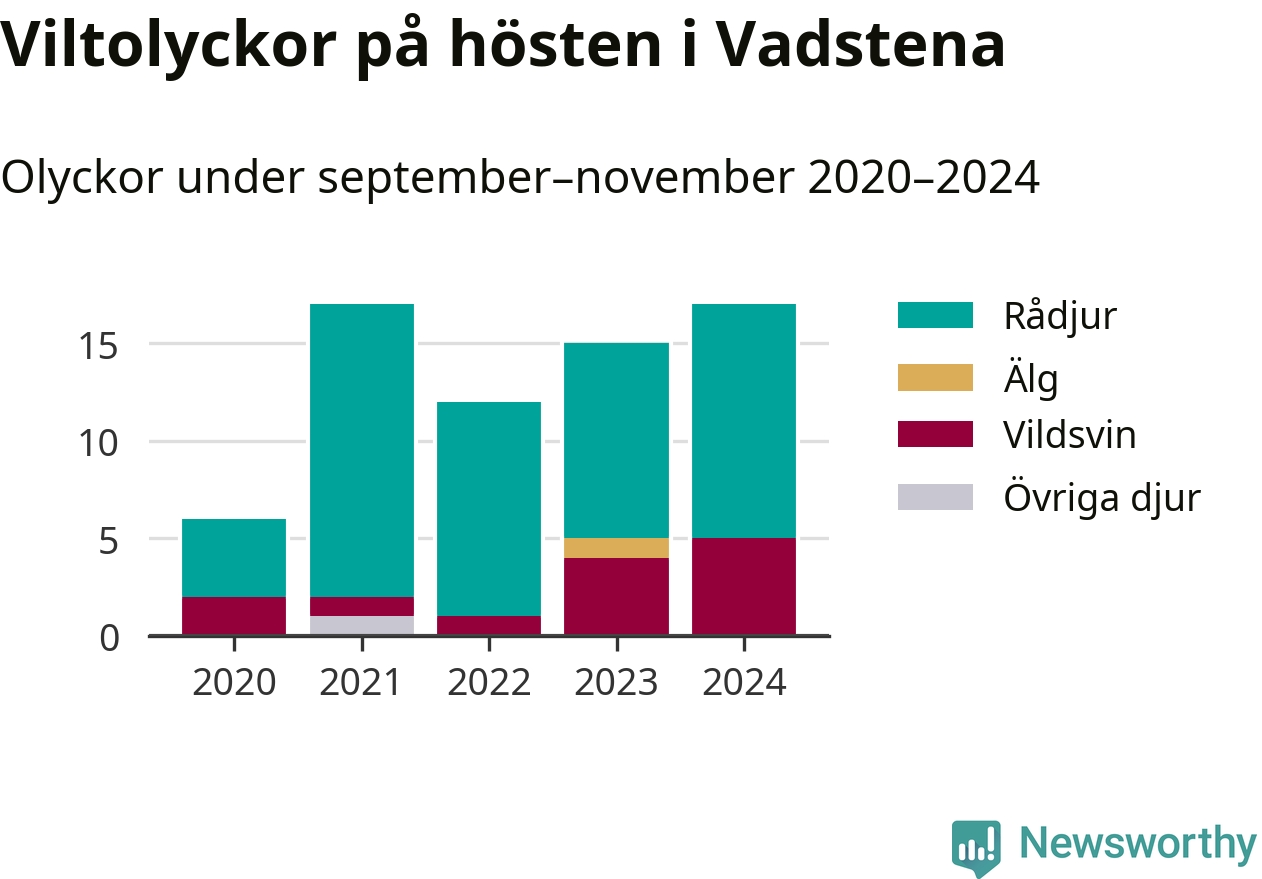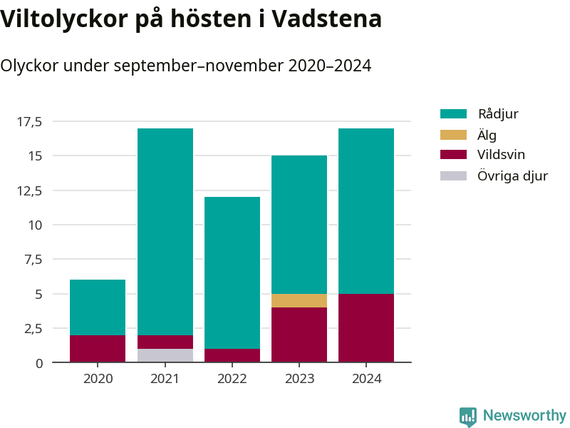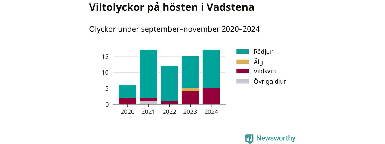 Under de senaste höstarna har antalet viltolyckor ökat i Sverige. I fjol höst noterades också flest viltolyckor i Vadstena hittills under 2020-talet, totalt 17 stycken.