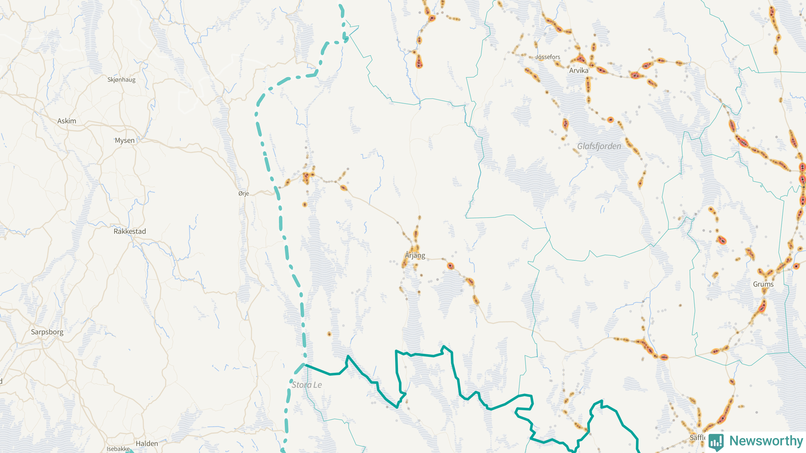 Flest olyckor i kommunen – 89 stycken – har skett längs E18 (då räknar vi in en olycka där E18 har gemensam sträckning med väg 172). Av dessa orsakades 64 av rådjur. Längs väg 172 har 51 viltolyckor rapporterats under motsvarande period.