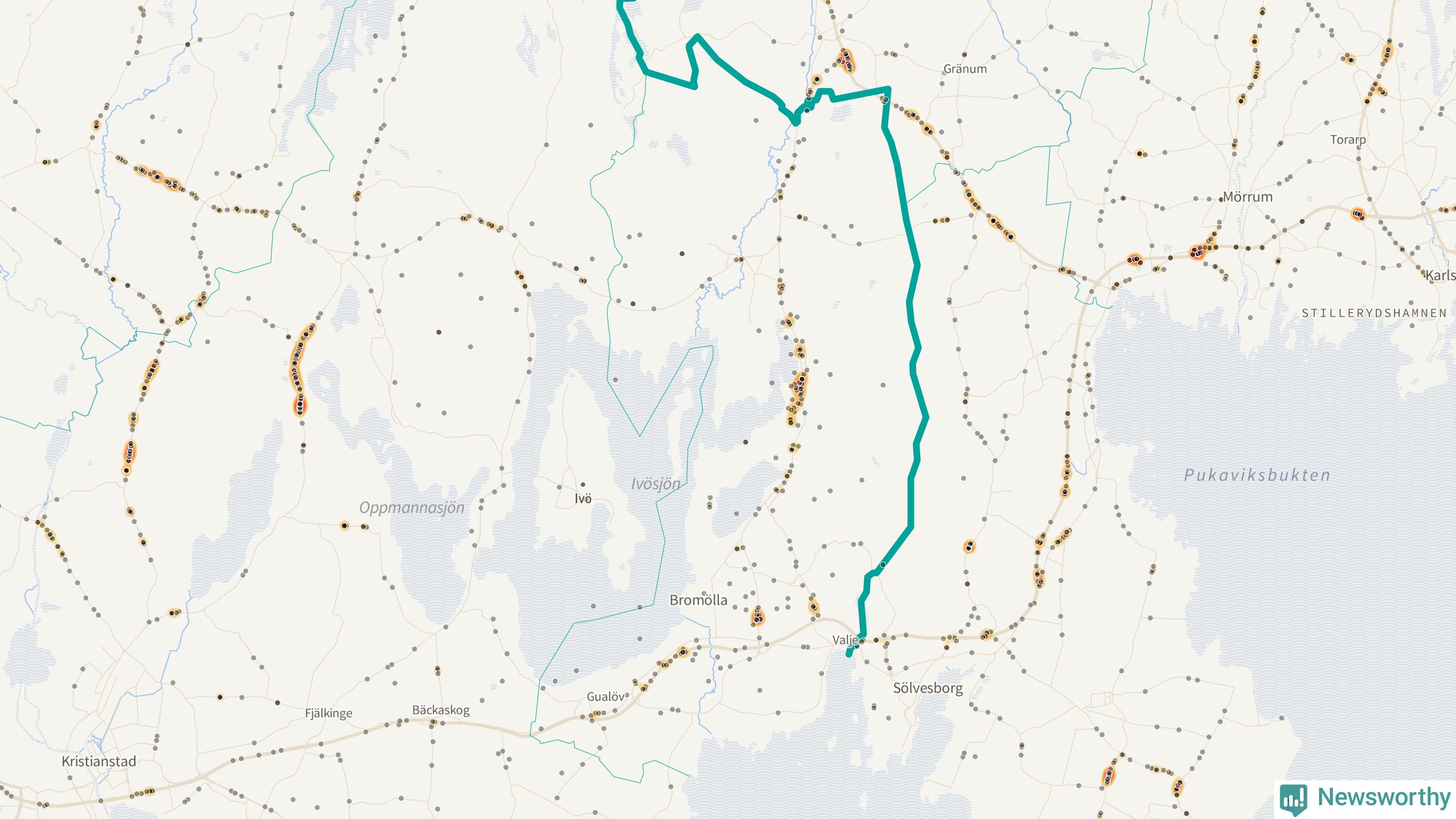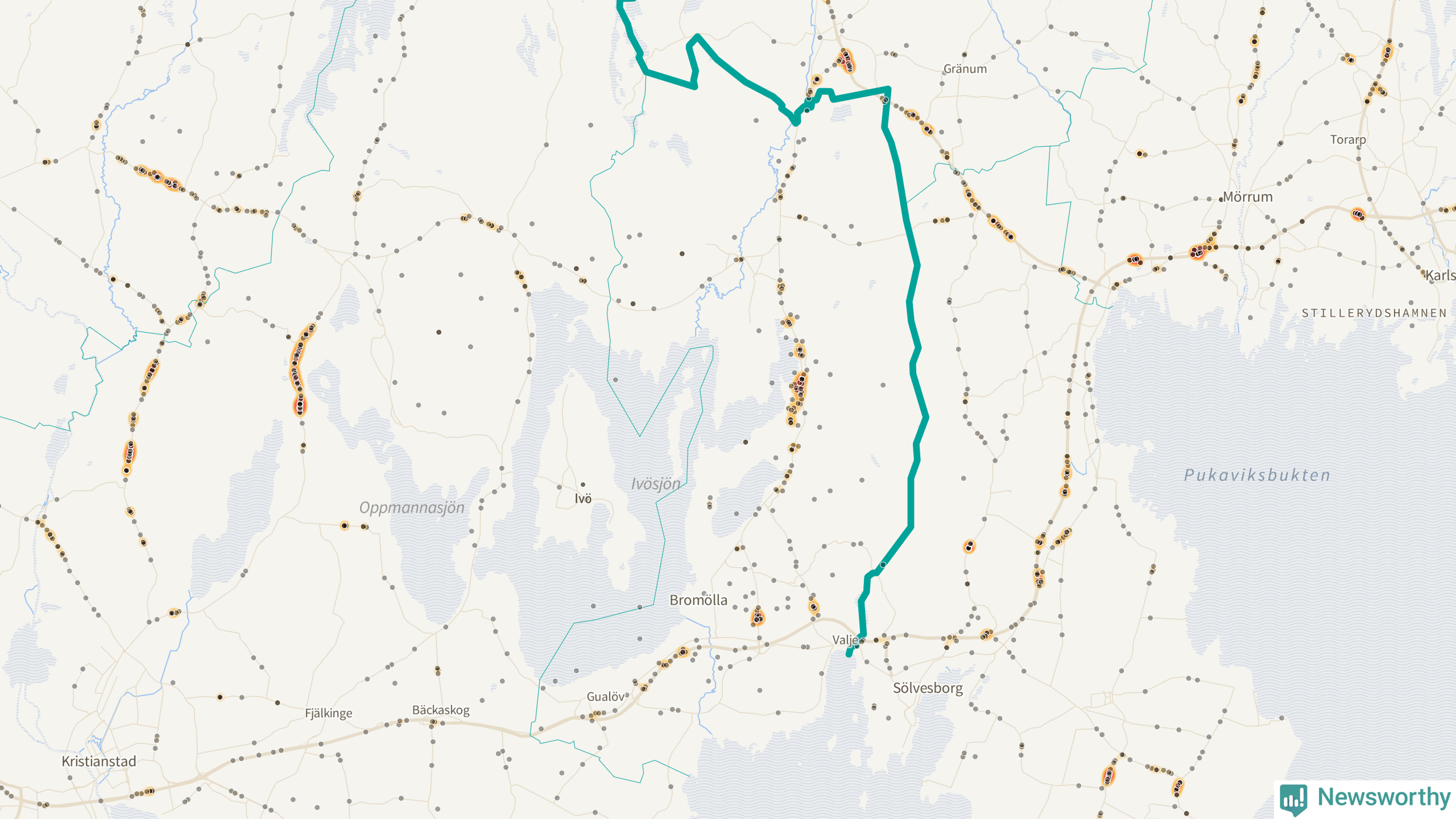 Flest olyckor i kommunen – 74 stycken – har skett längs väg 116. Av dessa orsakades 40 av rådjur. Längs E22 har 19 viltolyckor rapporterats under motsvarande period.