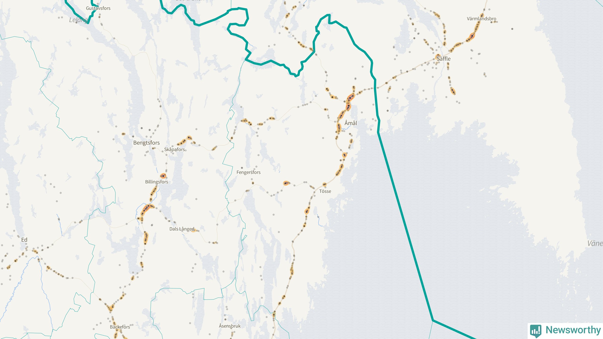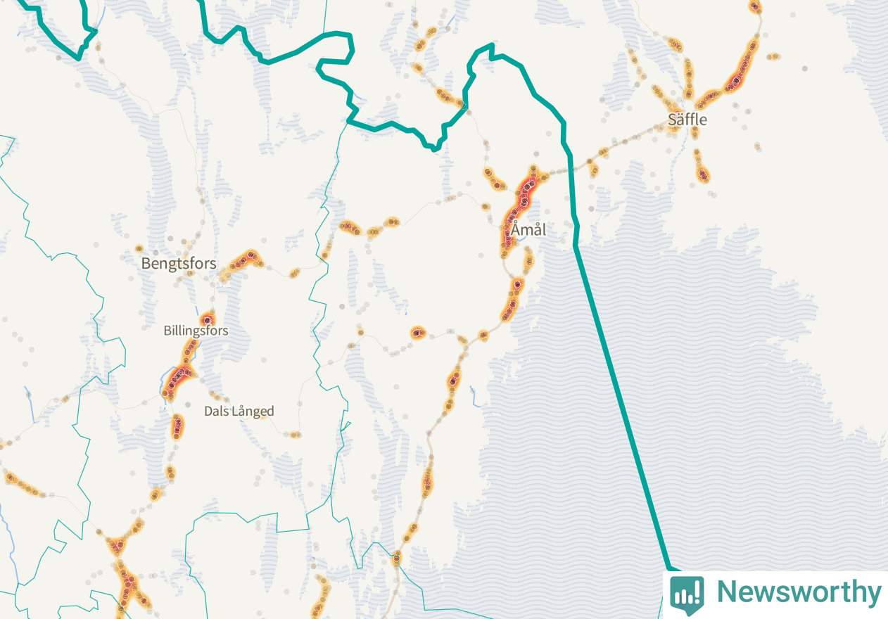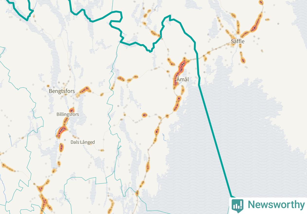 På hösten ökar risken för viltolyckor längs vägarna. Under de senaste fem höstarna har totalt 308 olyckor rapporterats i Åmåls kommun. Här är de mest drabbade vägarna.