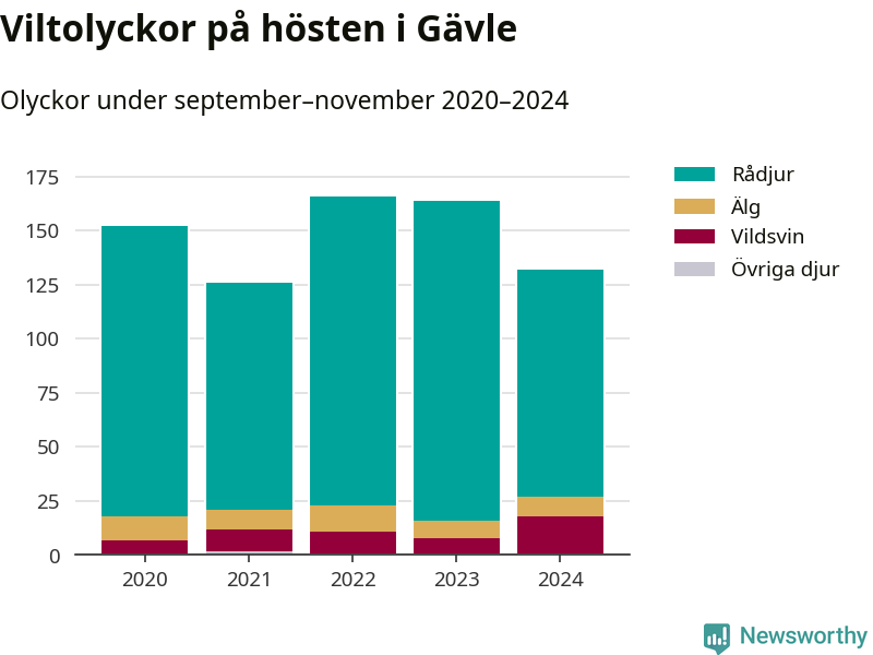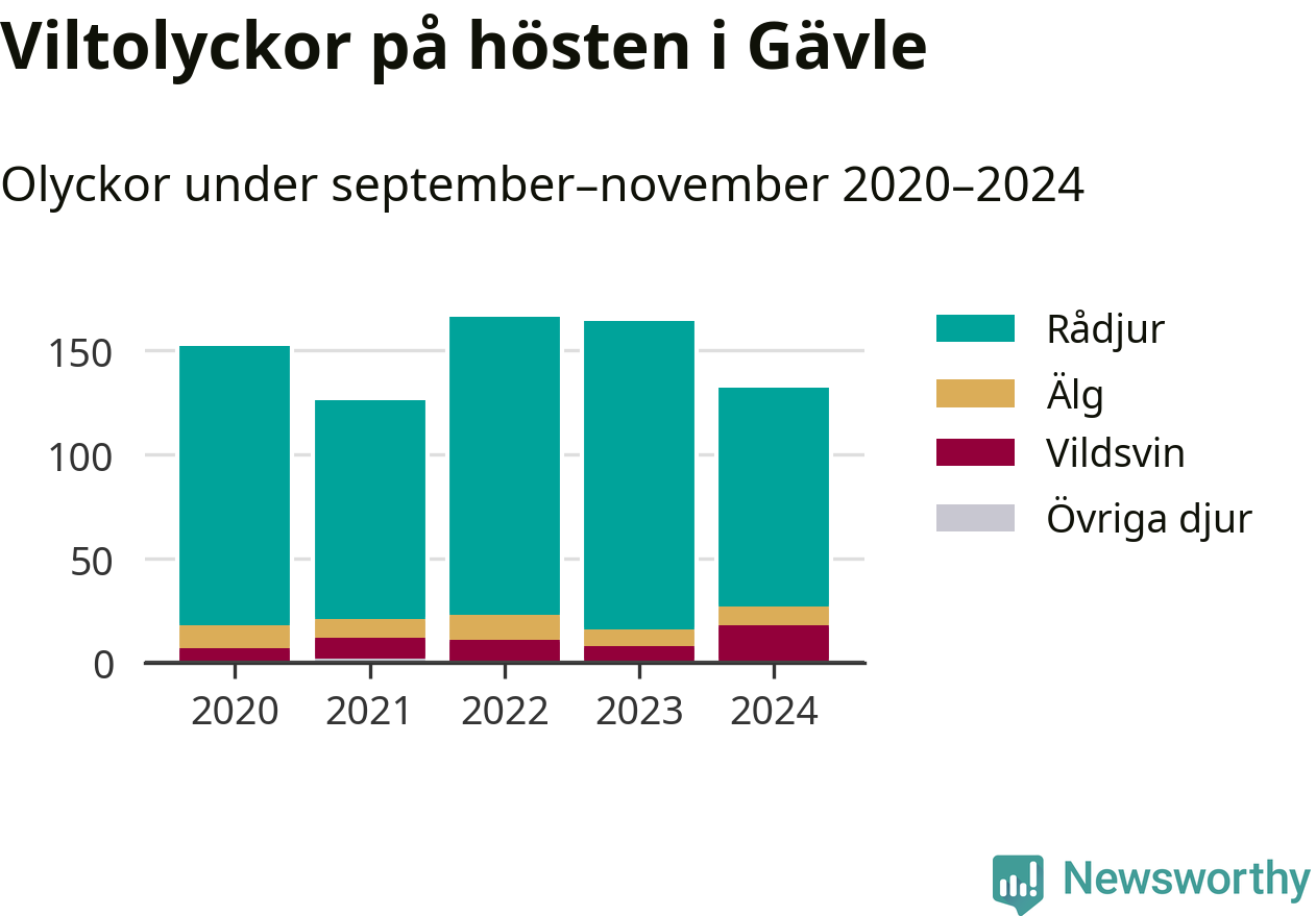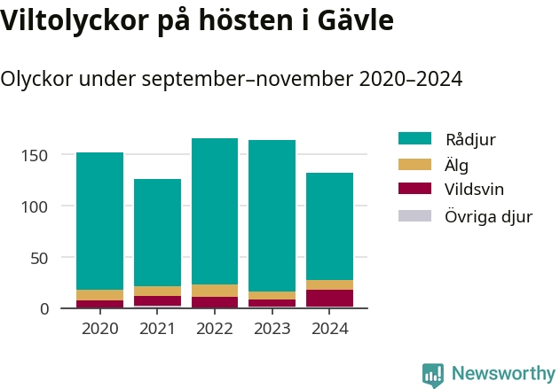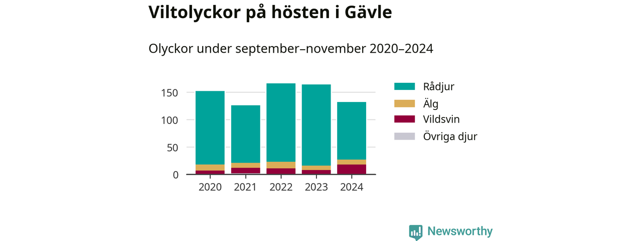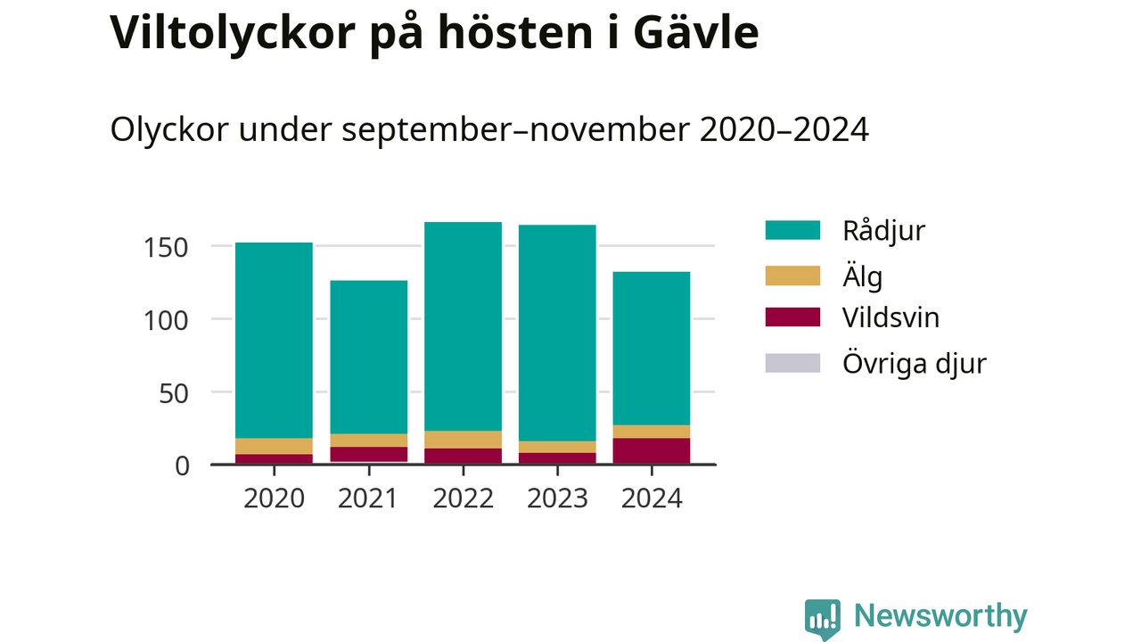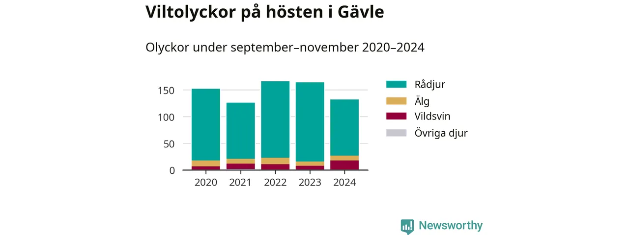 Under de senaste höstarna har antalet viltolyckor ökat i Sverige. Den höst med flest viltolyckor i Gävle hittills under 2020-talet var 2022, 166 olyckor. I fjol höst rapporterades totalt 132 olyckor.