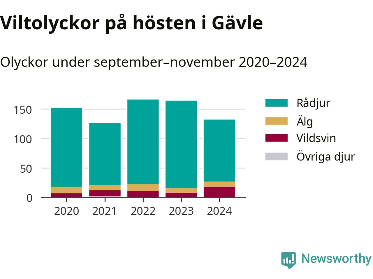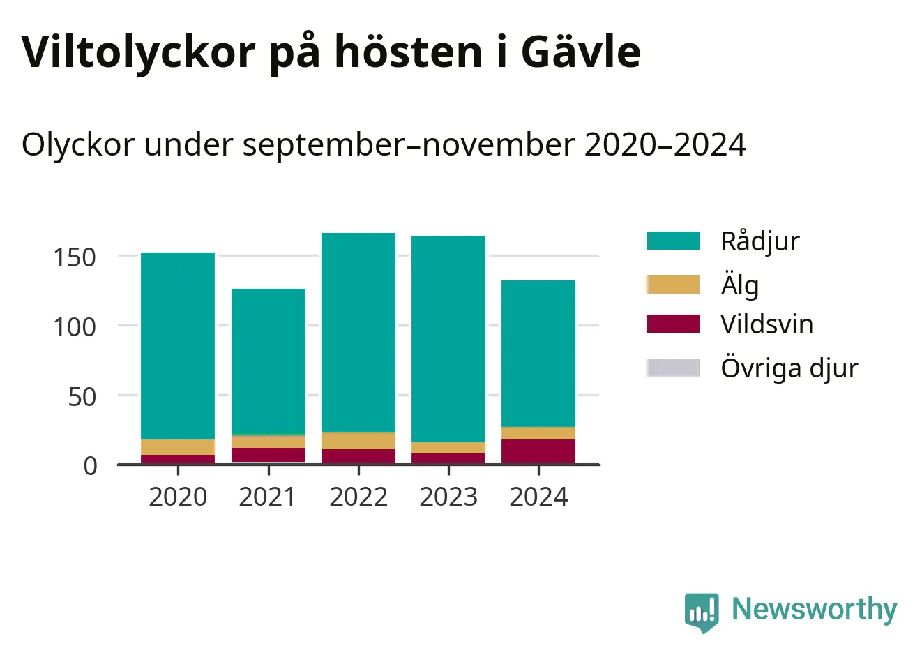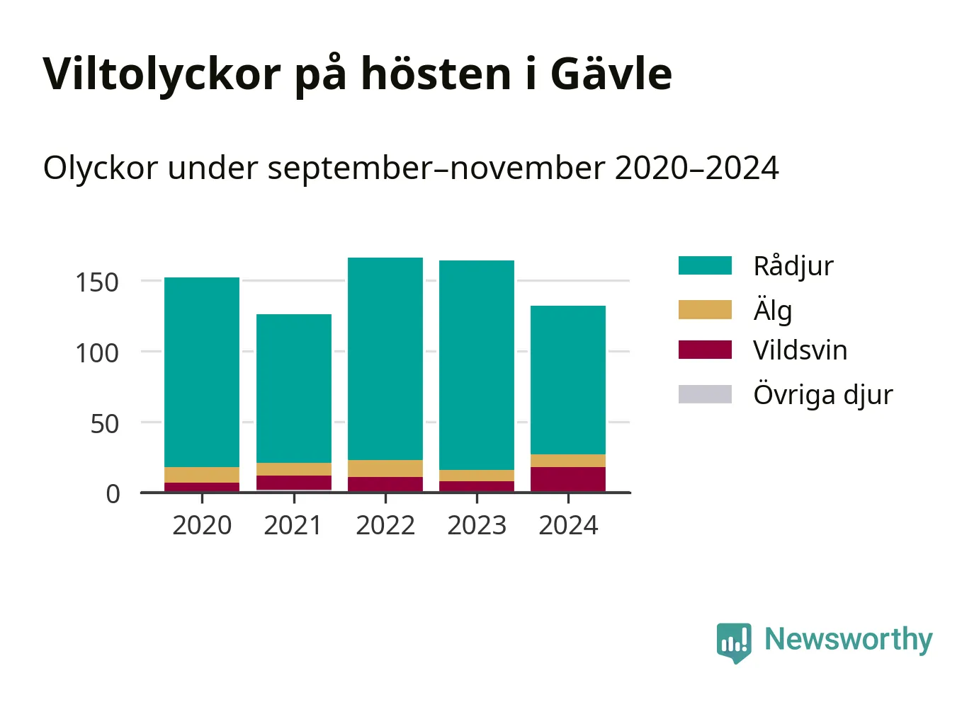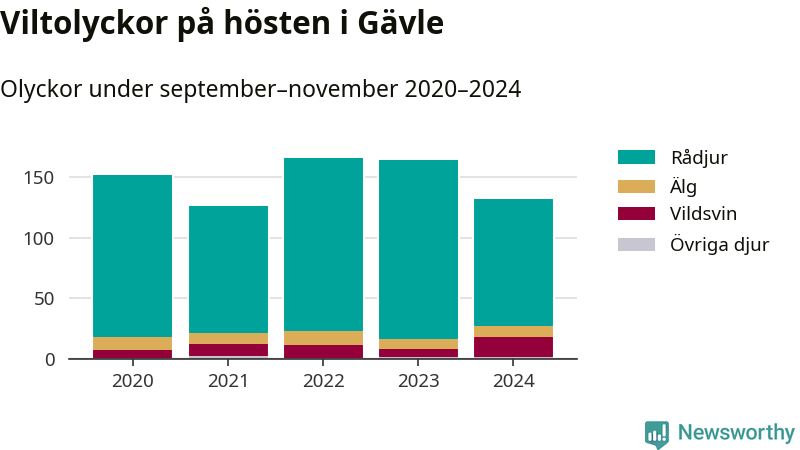 Under de senaste höstarna har antalet viltolyckor ökat i Sverige. Den höst med flest viltolyckor i Gävle hittills under 2020-talet var 2022, 166 olyckor. I fjol höst rapporterades totalt 132 olyckor.