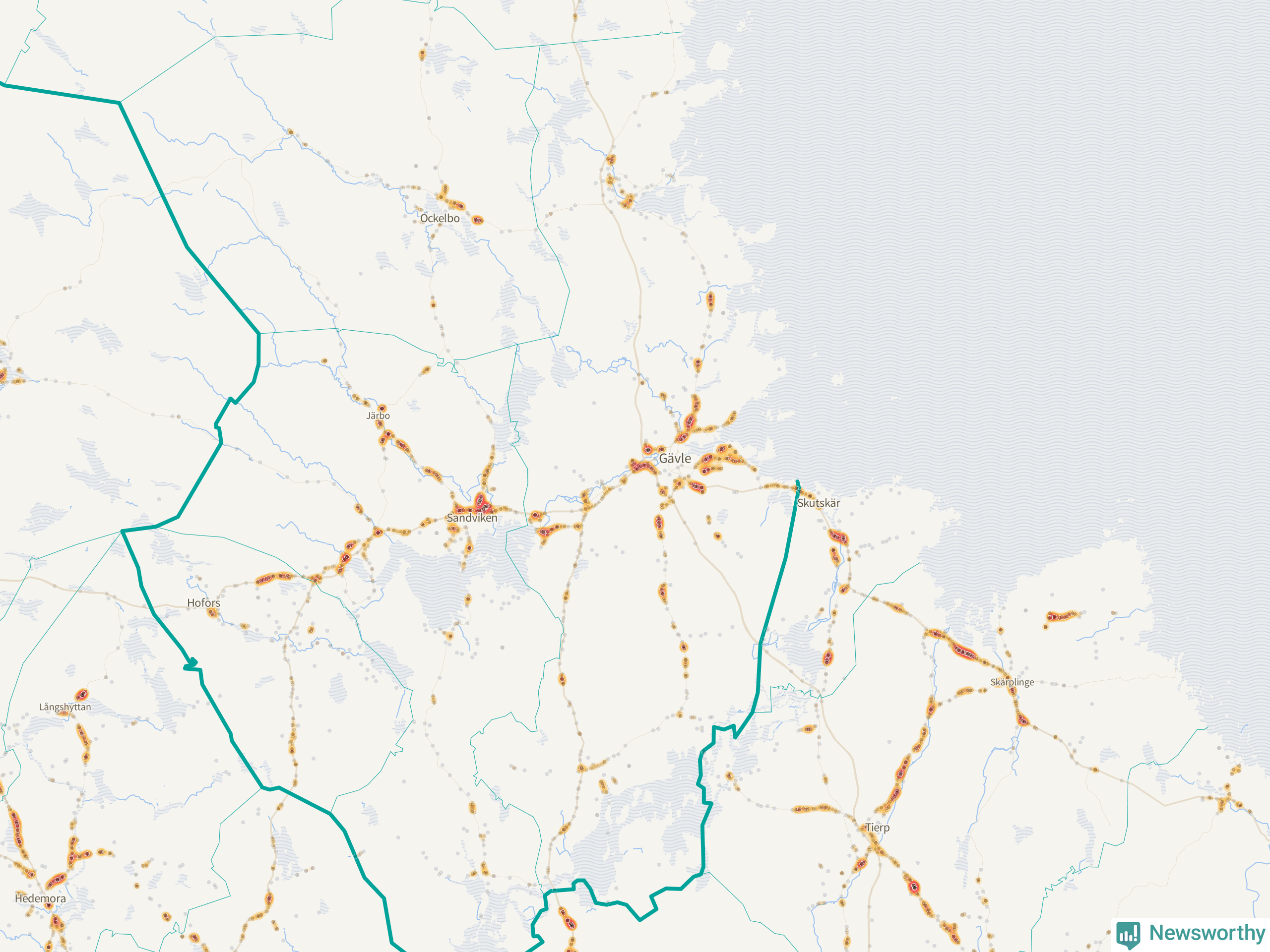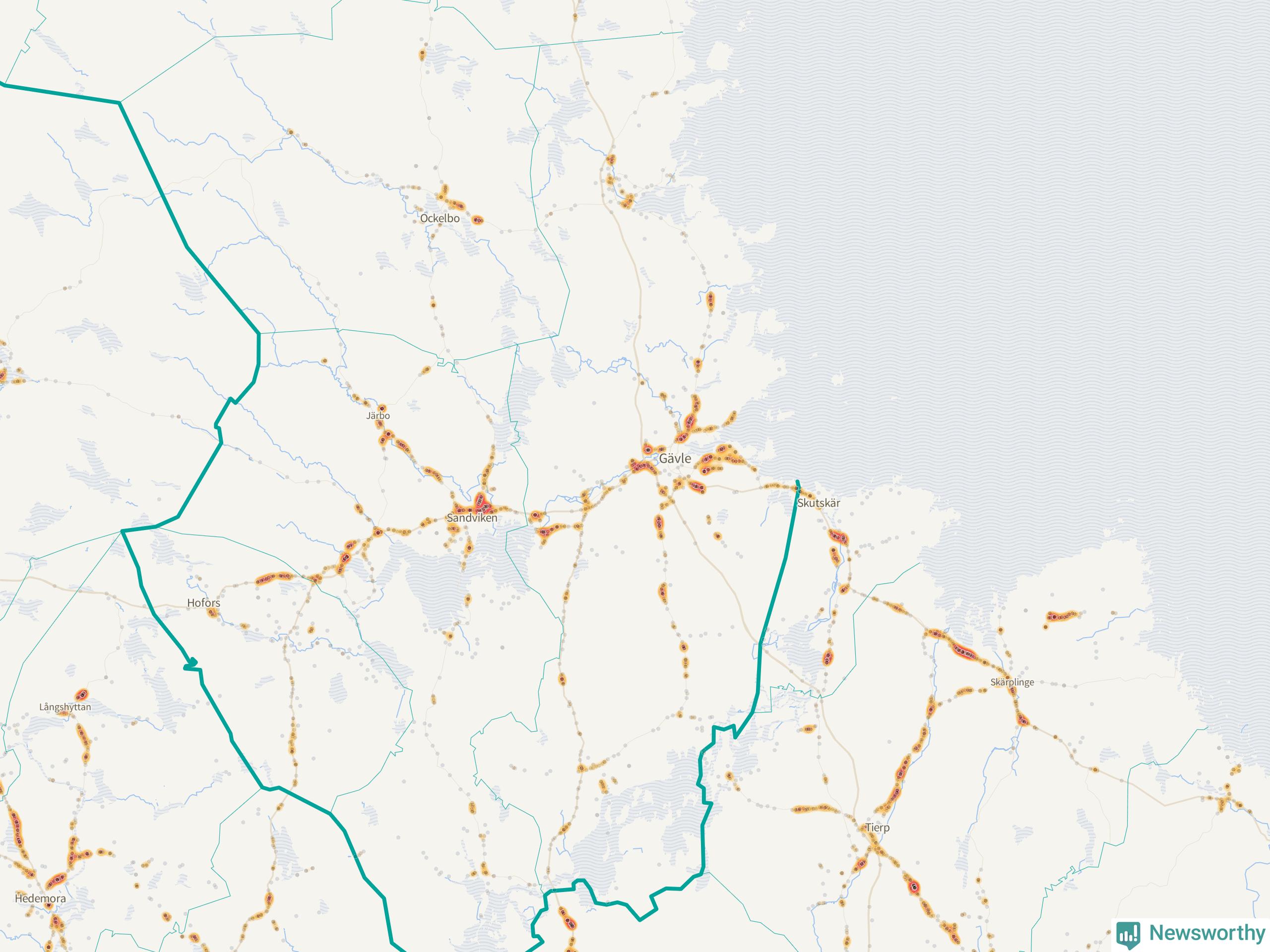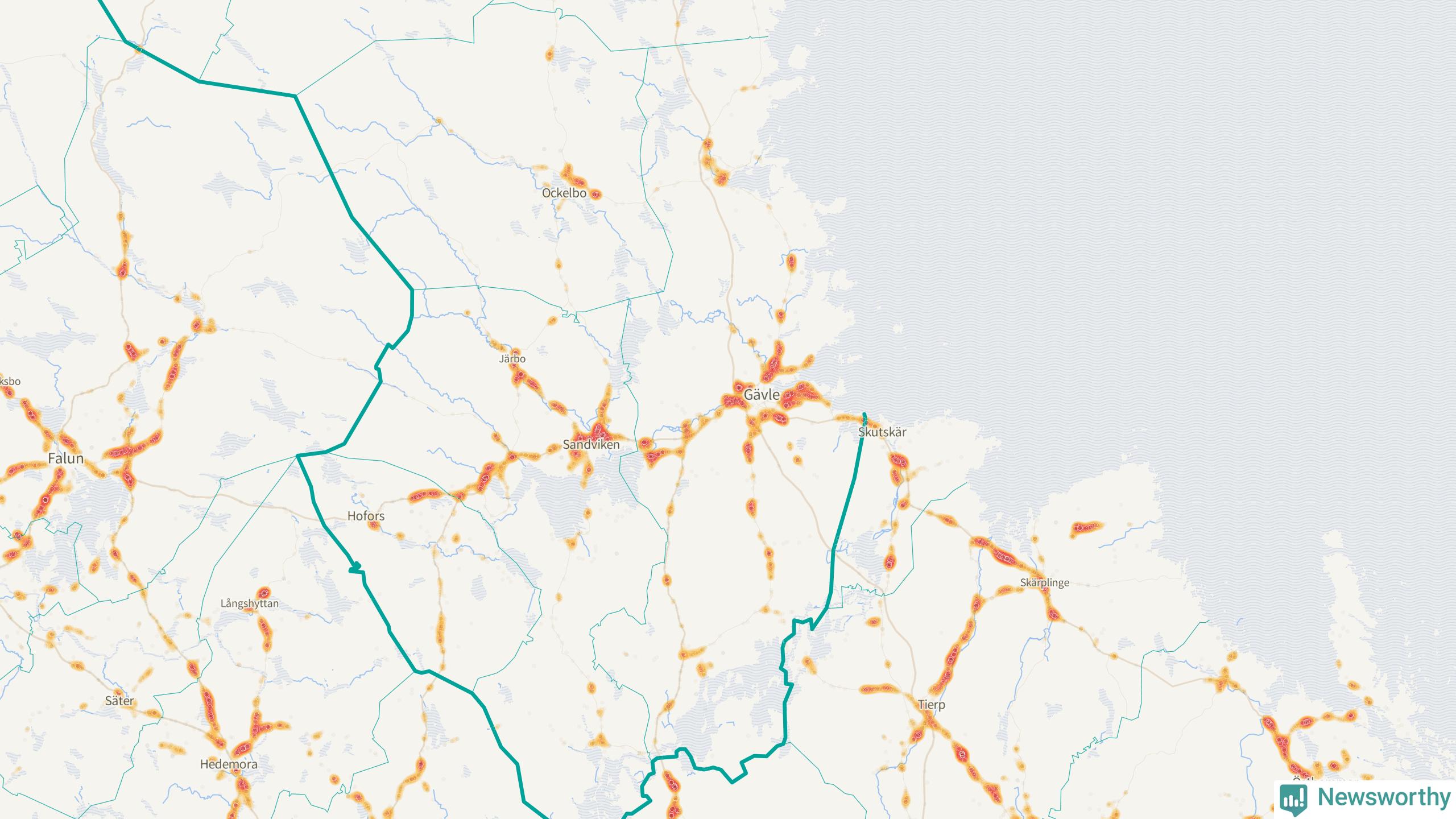 Flest olyckor i kommunen – 107 stycken – har skett längs väg 583 (Björkevägen/Axmarstig/Hamnleden/Trödjevägen/Hamrångevägen/Ockelbovägen). Av dessa orsakades 100 av rådjur. Längs väg 509 har 90 viltolyckor rapporterats under motsvarande period.