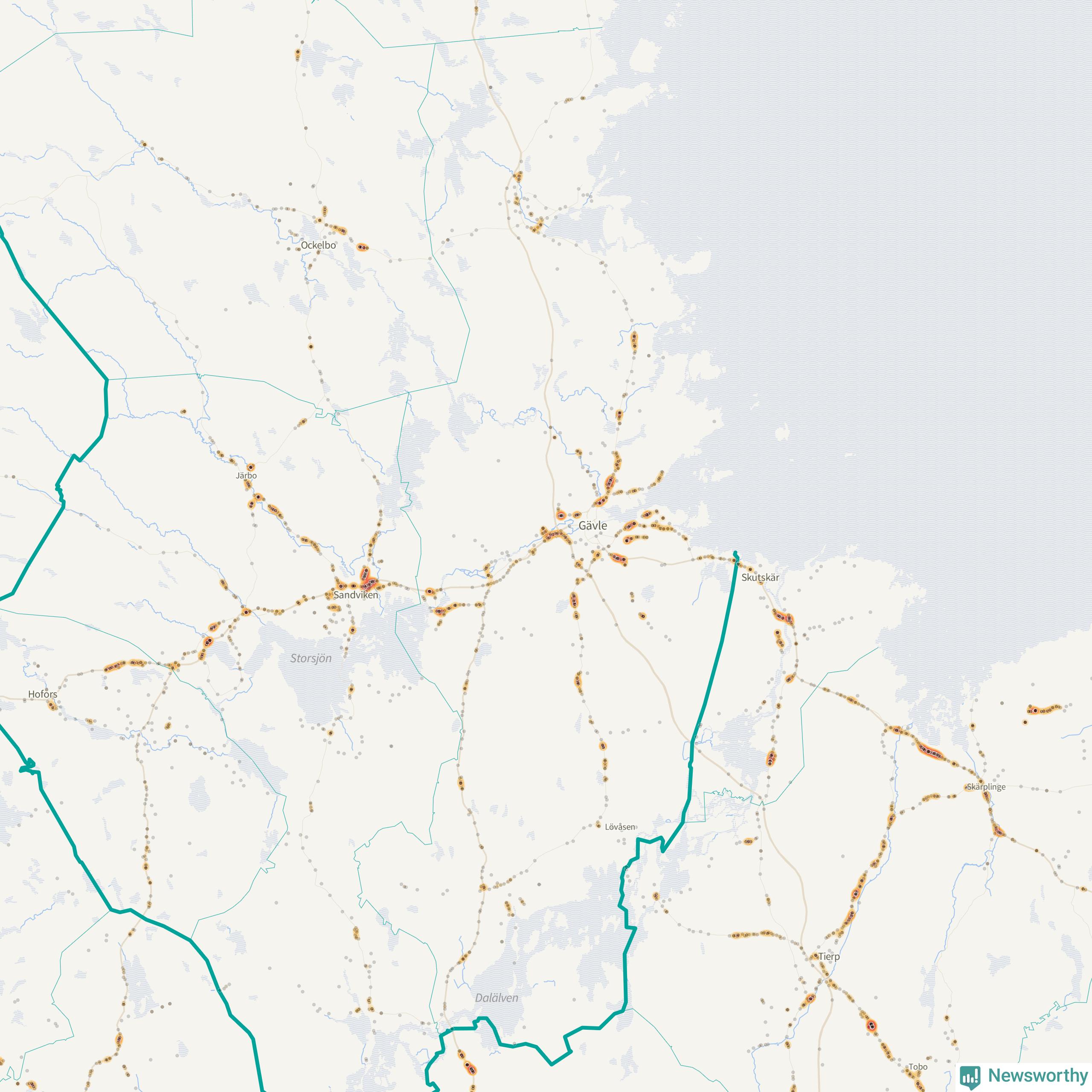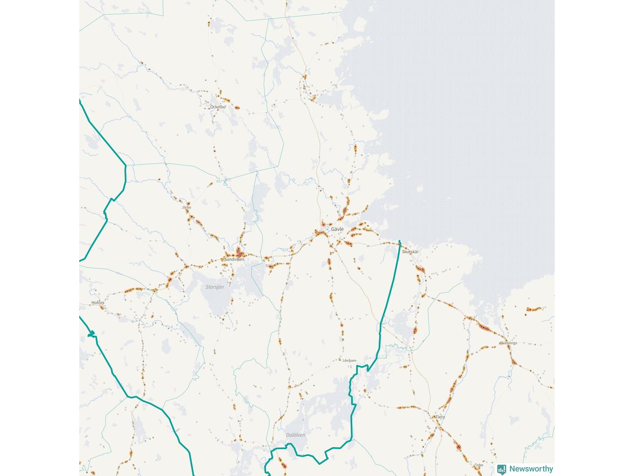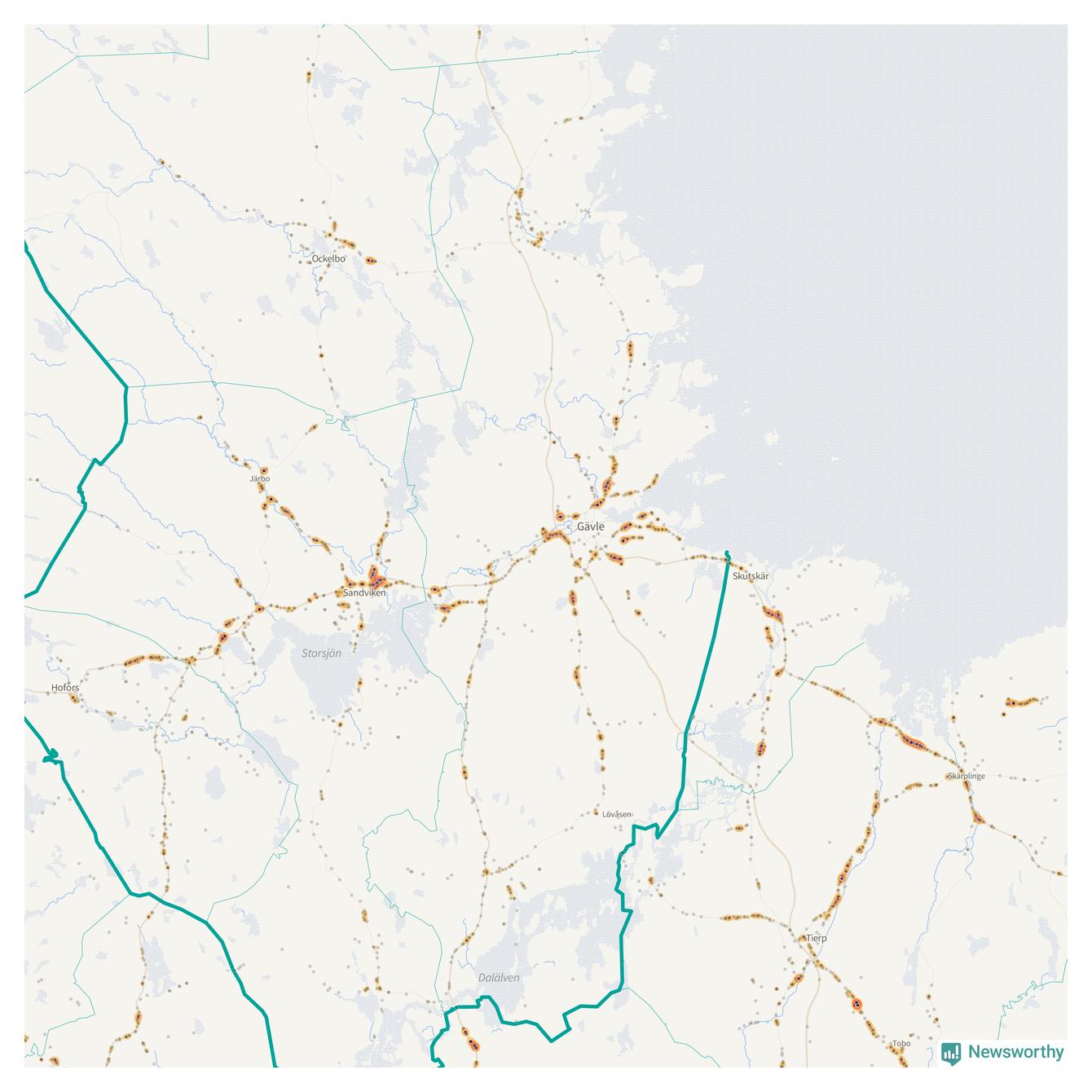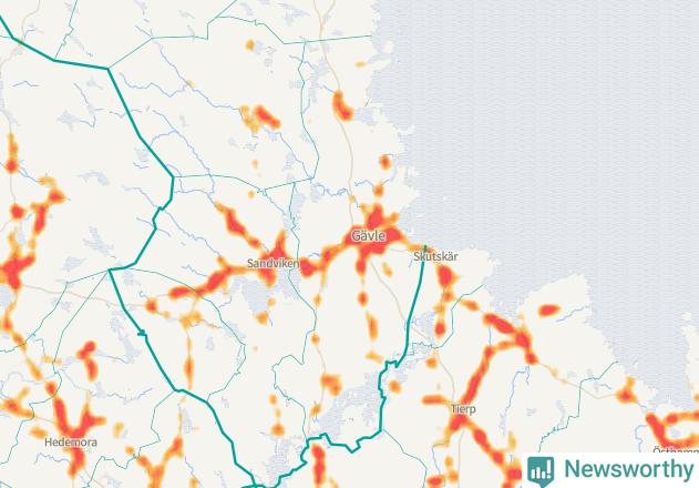 | Väg 583 (Björkevägen, Axmarstig, Hamnleden, Trödjevägen, Hamrångevägen, Ockelbovägen) | 107 | rådjur (100 olyckor) |