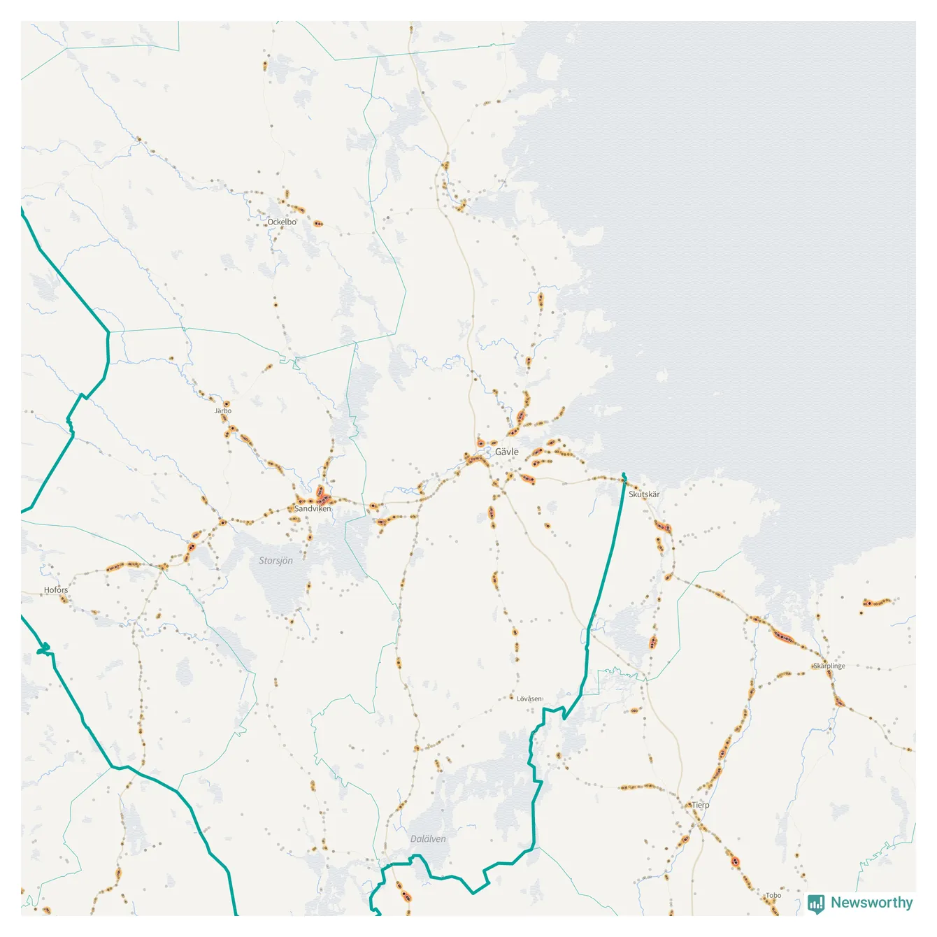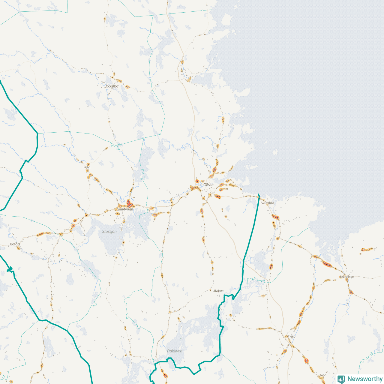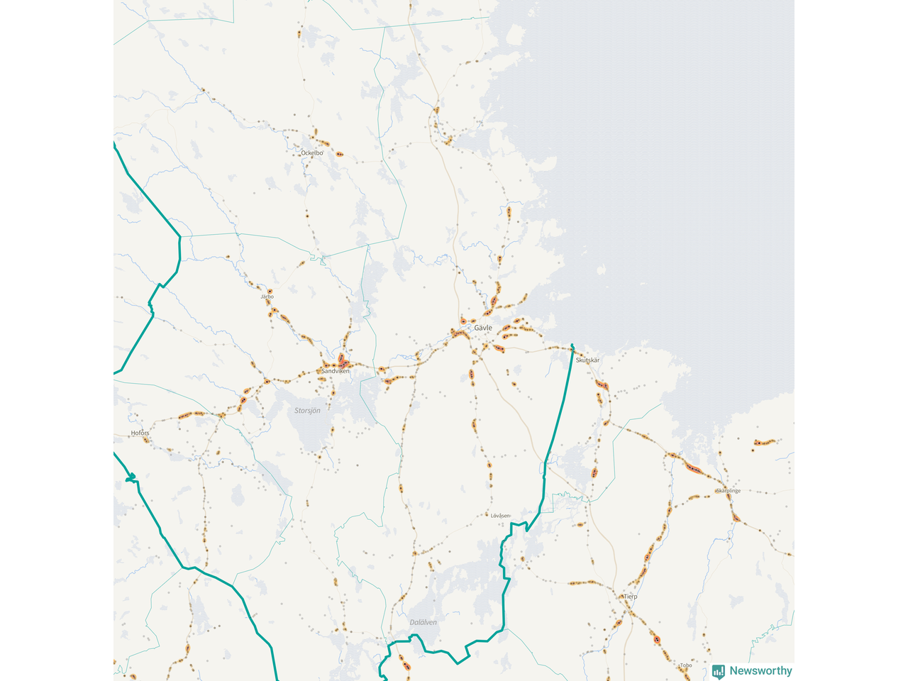 | Väg 583 (Björkevägen, Axmarstig, Hamnleden, Trödjevägen, Hamrångevägen, Ockelbovägen) | 107 | rådjur (100 olyckor) |