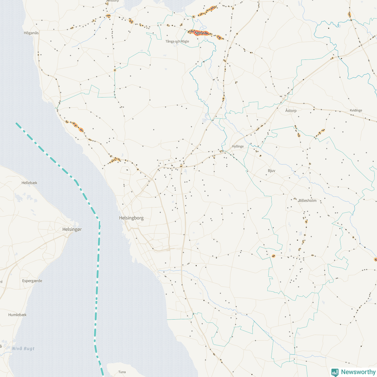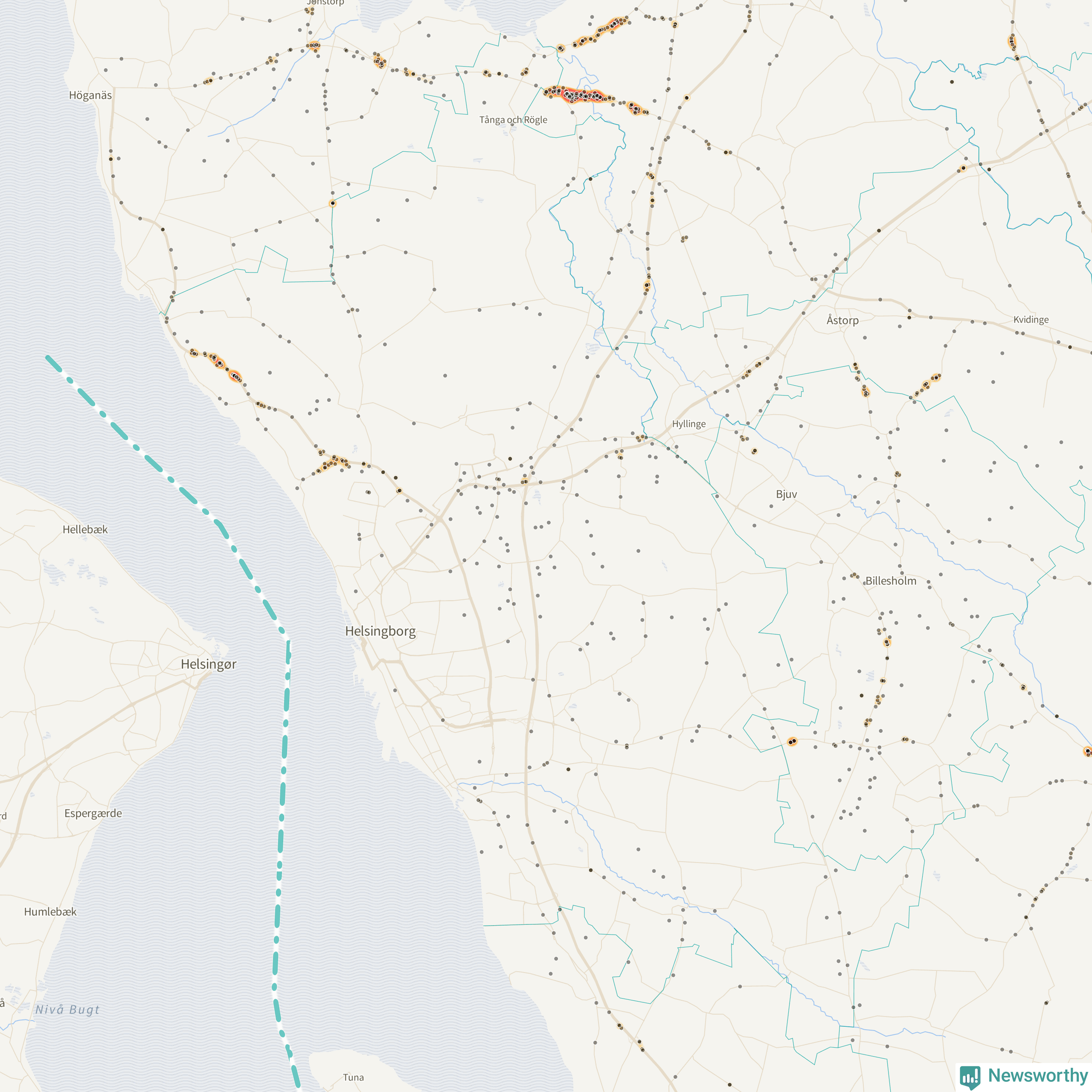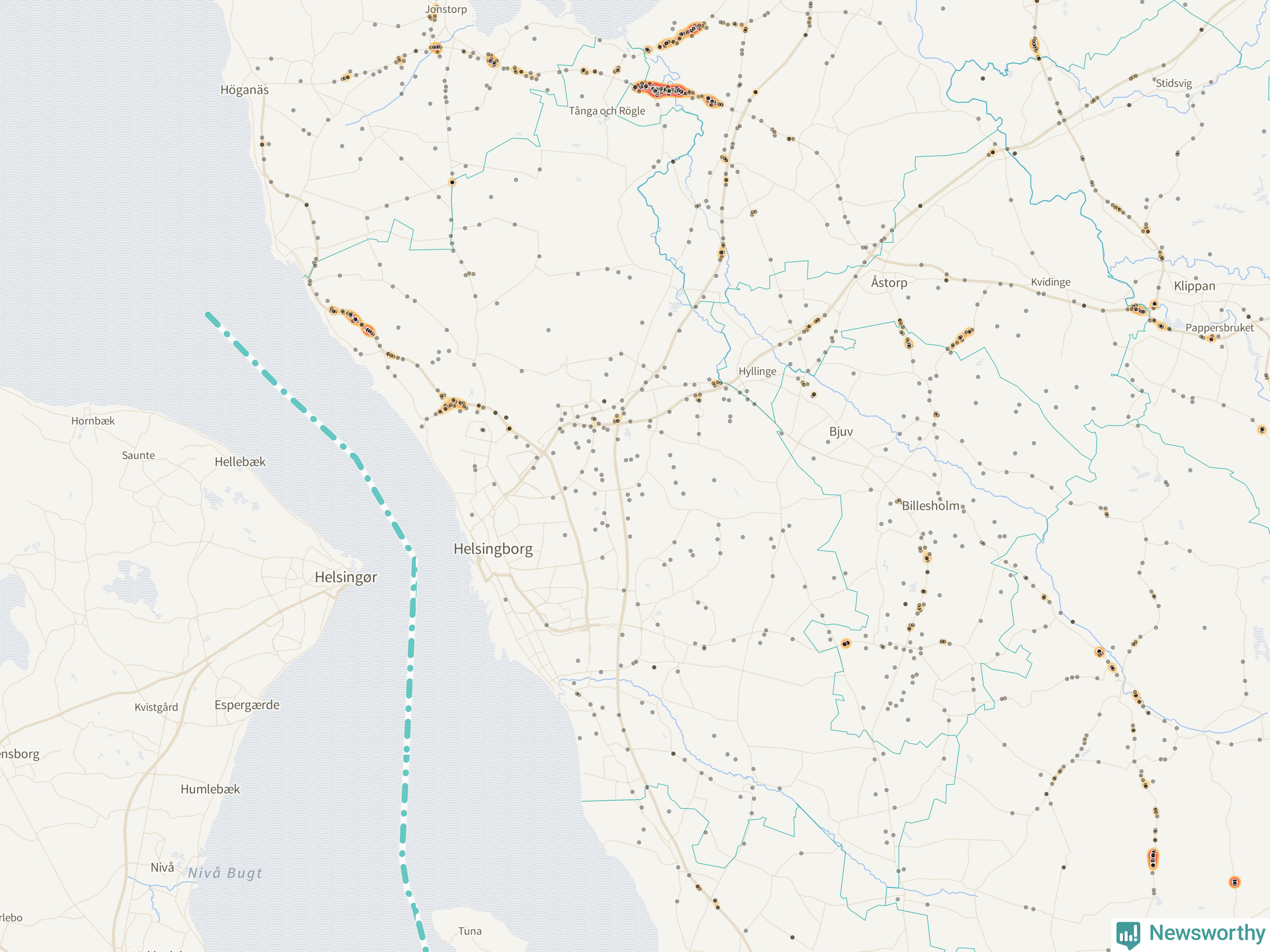 | Väg 1394 (Kulla Gunnarstorpsvägen, Larödsvägen) | 11 | rådjur (10 olyckor) |