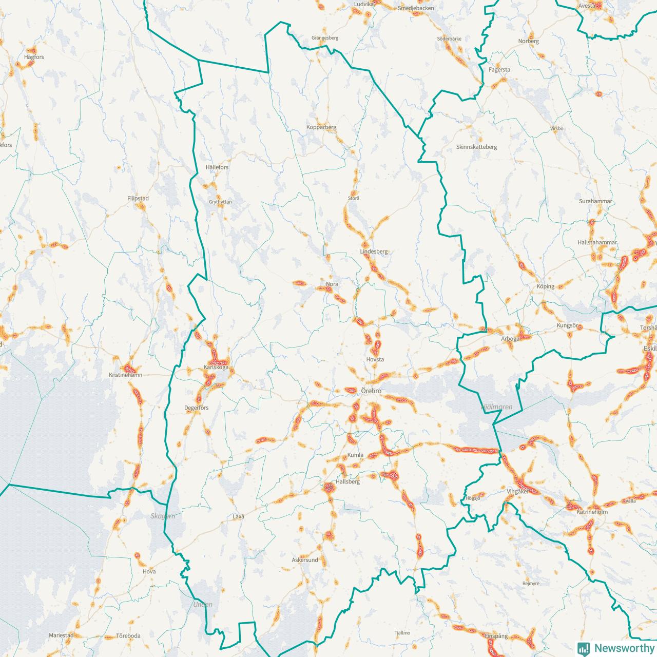 På hösten ökar risken för viltolyckor längs vägarna. Under de senaste fem höstarna har totalt 4 117 olyckor rapporterats i Örebro län. Här är de mest drabbade vägarna.