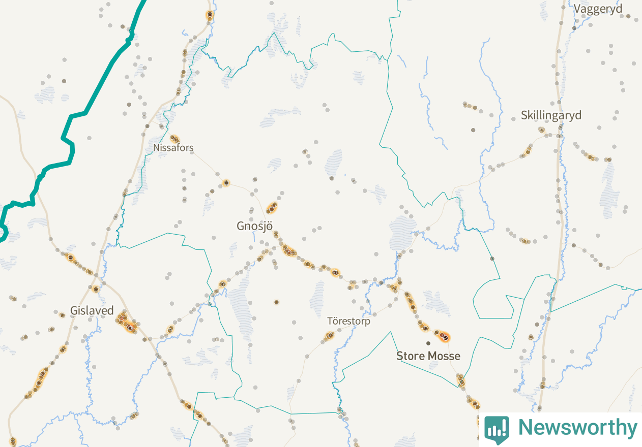 På hösten ökar risken för viltolyckor längs vägarna. Under de senaste fem höstarna har totalt 211 olyckor rapporterats i Gnosjö kommun. Här är de mest drabbade vägarna.