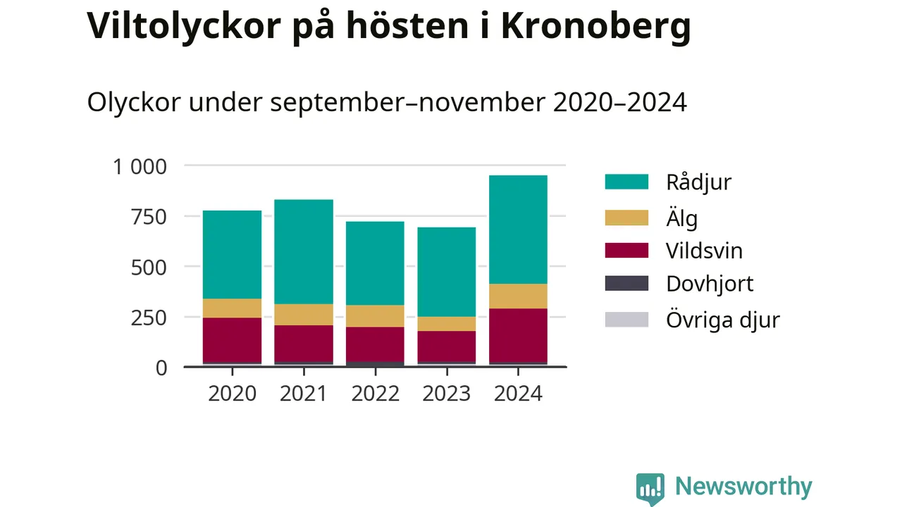 Under de senaste höstarna har antalet viltolyckor ökat i Sverige. I fjol höst noterades också flest viltolyckor i Kronoberg hittills under 2020-talet, totalt 948 stycken.