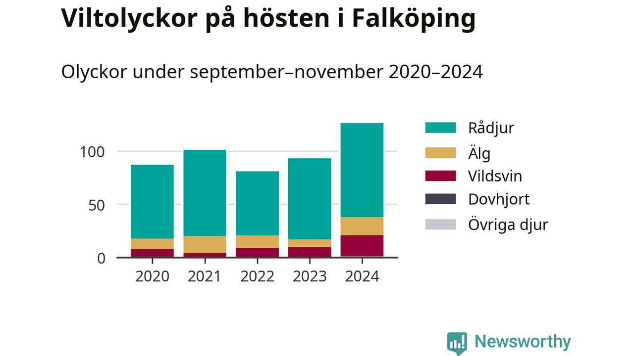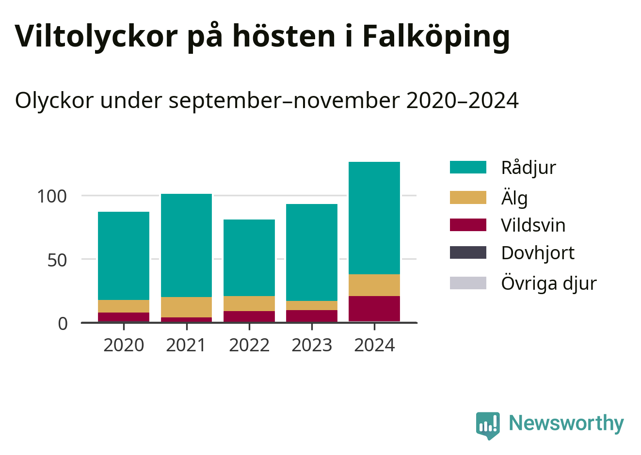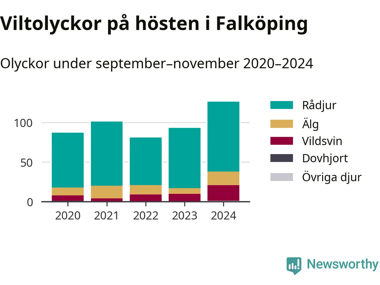 Under de senaste höstarna har antalet viltolyckor ökat i Sverige. I fjol höst noterades också flest viltolyckor i Falköping hittills under 2020-talet, totalt 126 stycken.