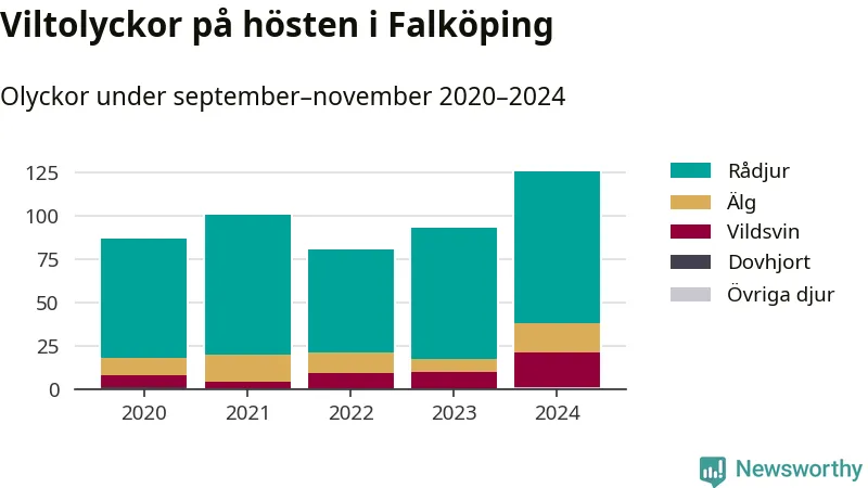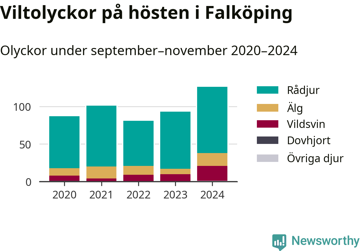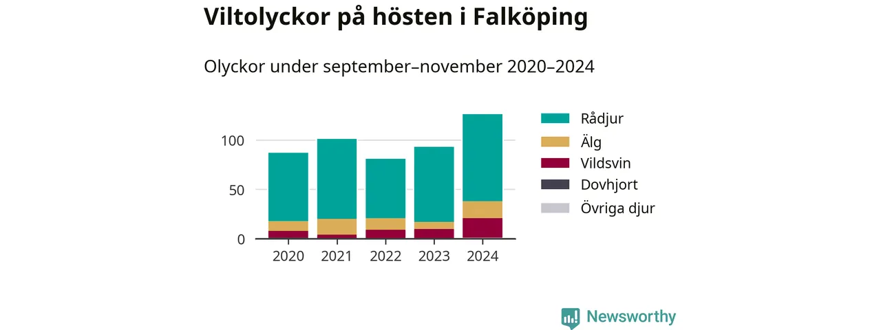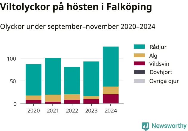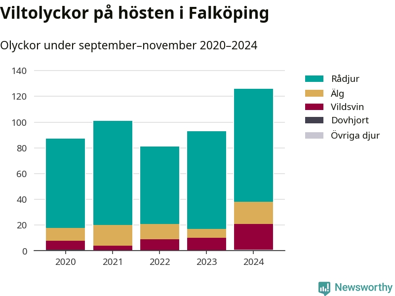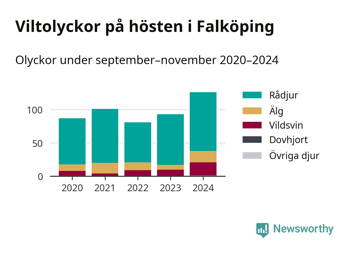 Under de senaste höstarna har antalet viltolyckor ökat i Sverige. I fjol höst noterades också flest viltolyckor i Falköping hittills under 2020-talet, totalt 126 stycken.
