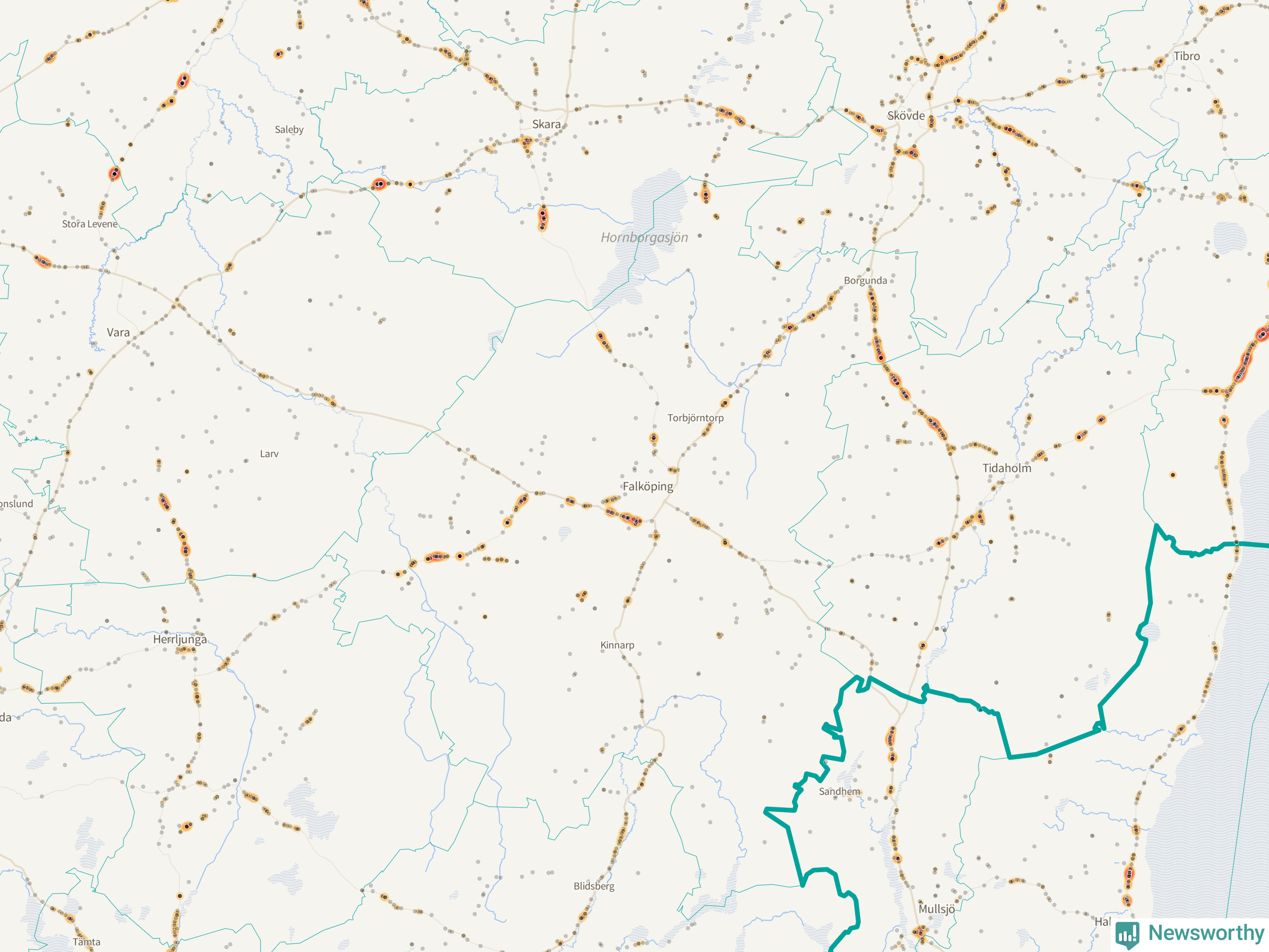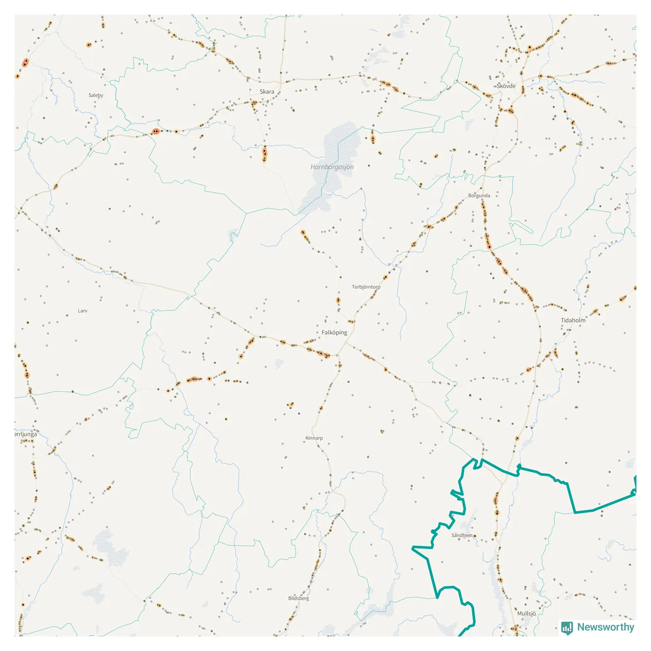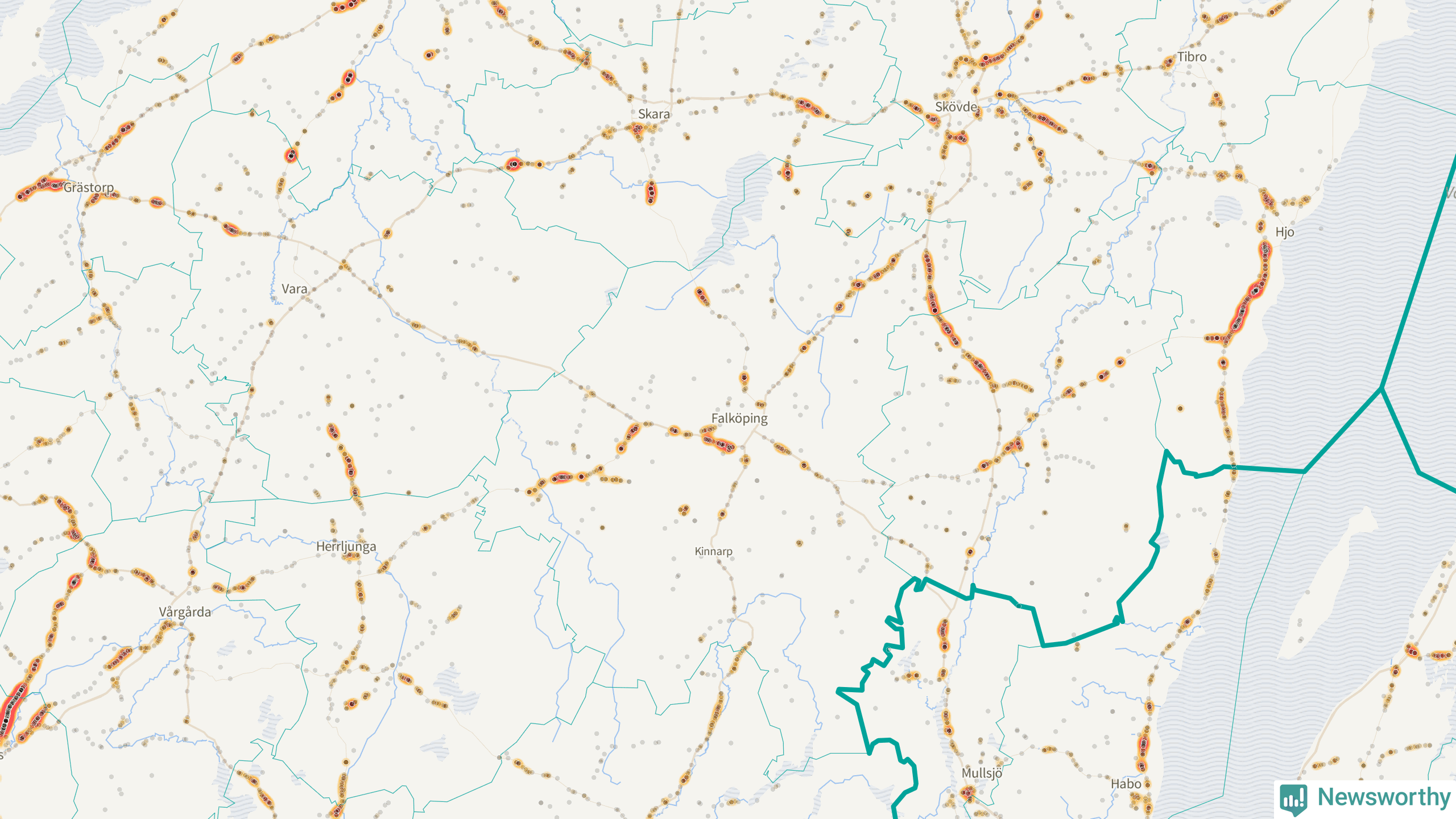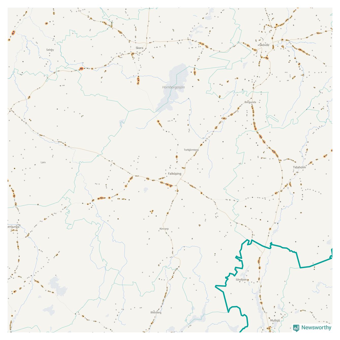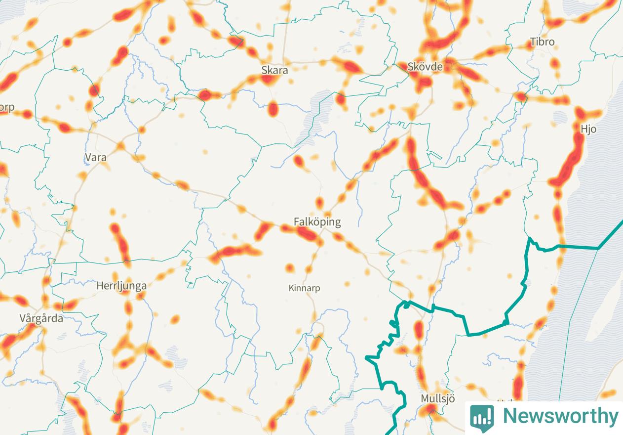 På hösten ökar risken för viltolyckor längs vägarna. Under de senaste fem höstarna har totalt 488 olyckor rapporterats i Falköpings kommun. Här är de mest drabbade vägarna.