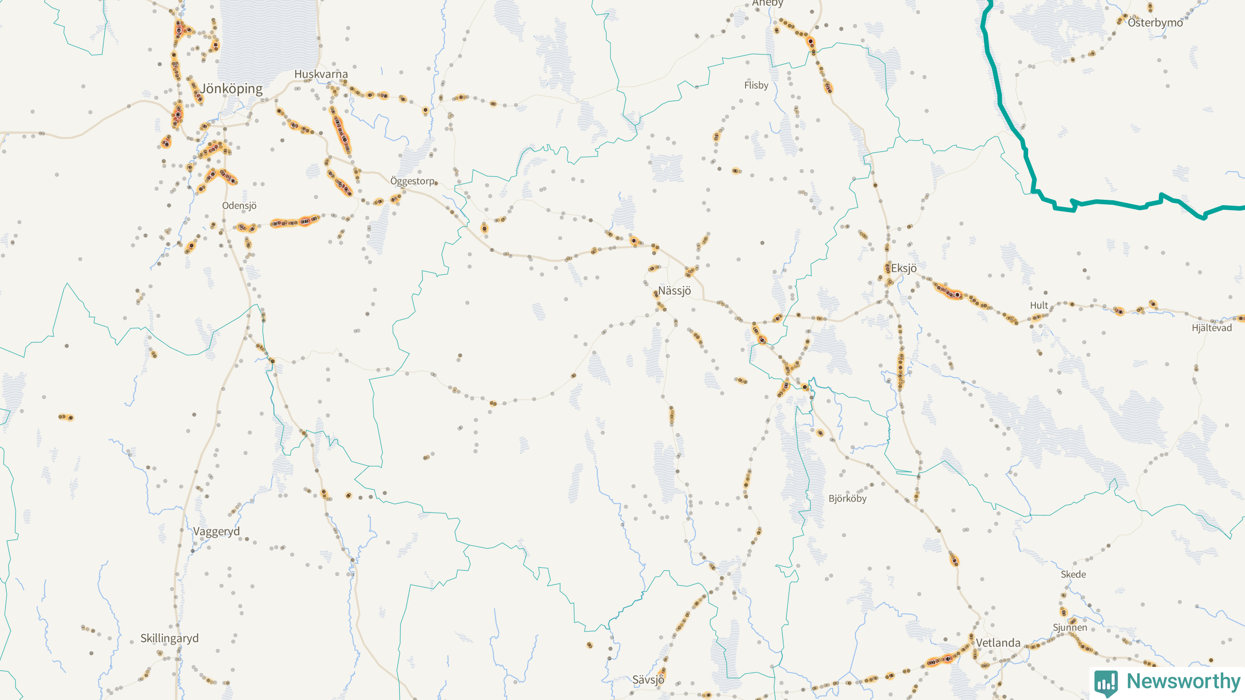 På hösten ökar risken för viltolyckor längs vägarna. Under de senaste fem höstarna har totalt 394 olyckor rapporterats i Nässjö kommun. Här är de mest drabbade vägarna.
