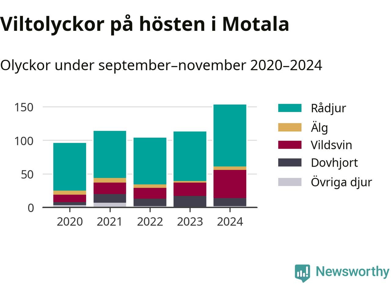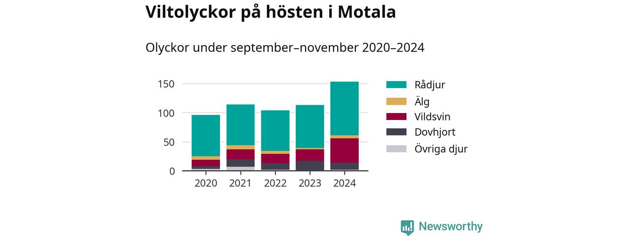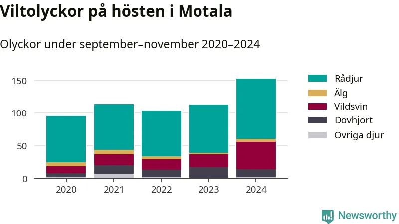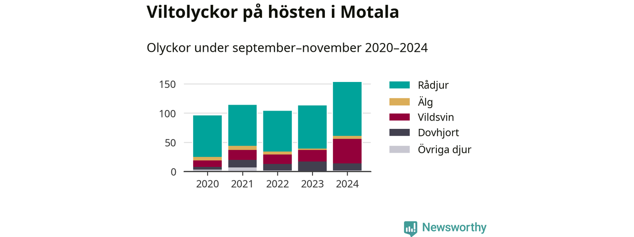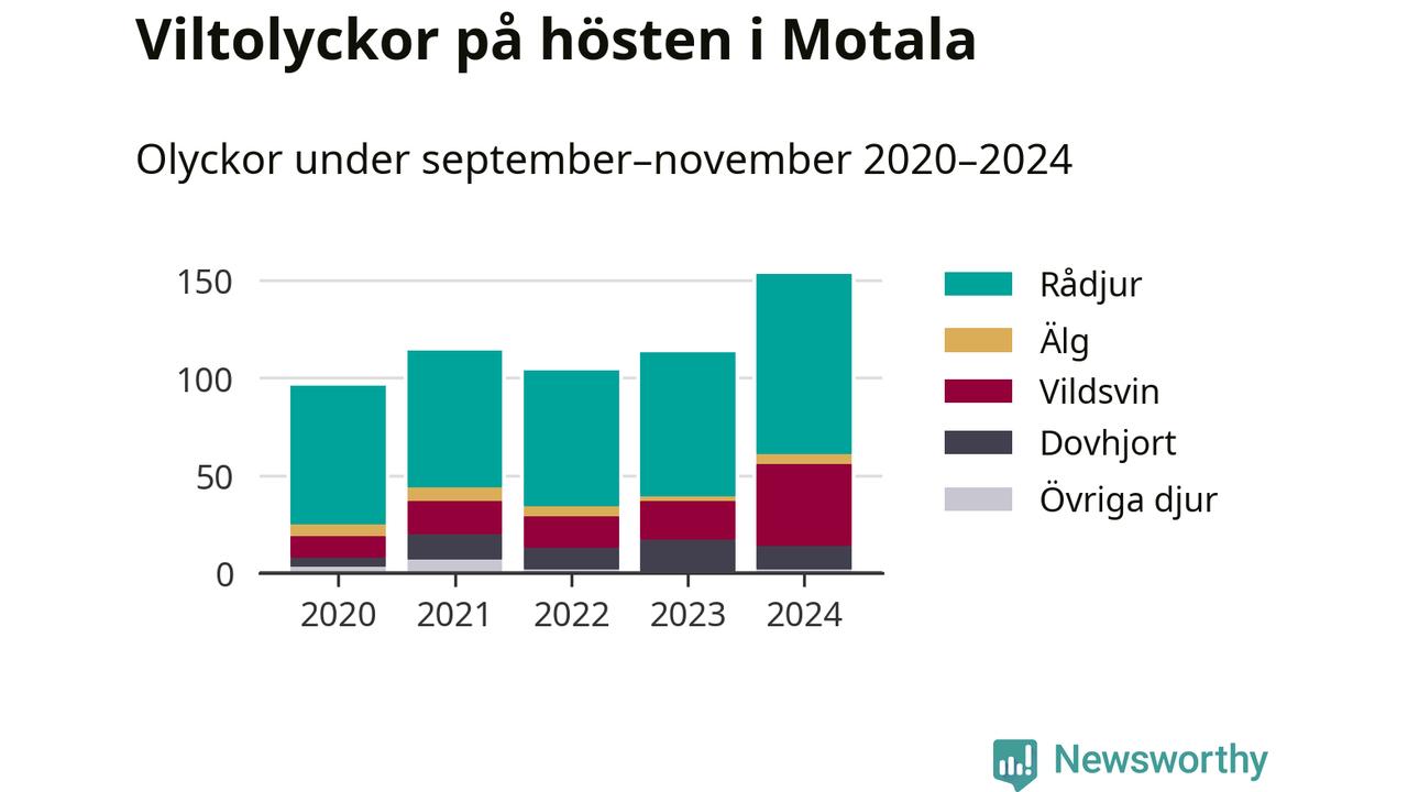 Under de senaste höstarna har antalet viltolyckor ökat i Sverige. I fjol höst noterades också flest viltolyckor i Motala hittills under 2020-talet, totalt 153 stycken.