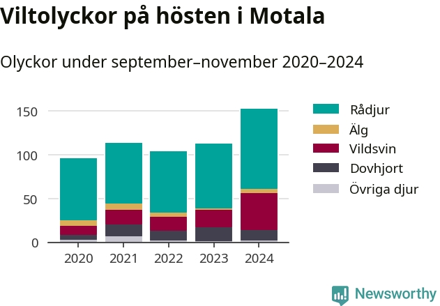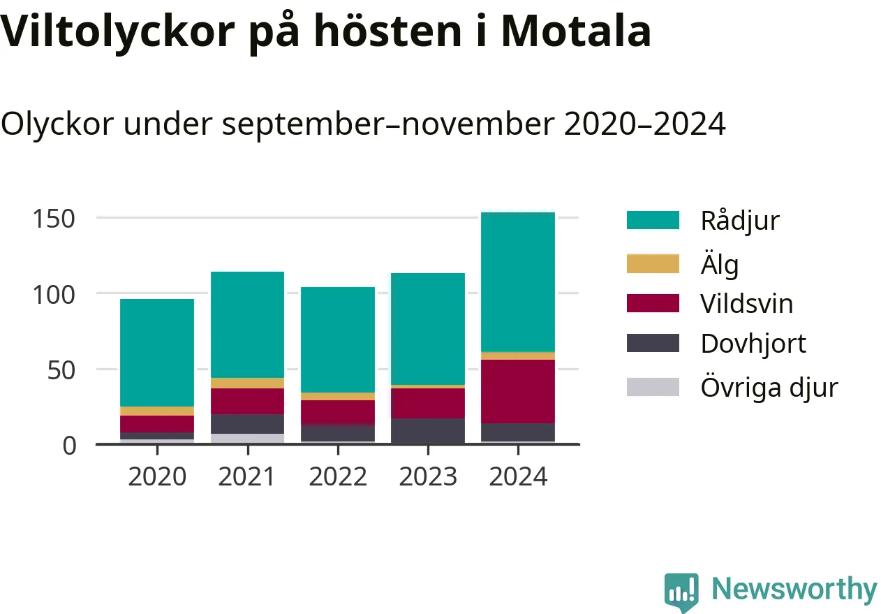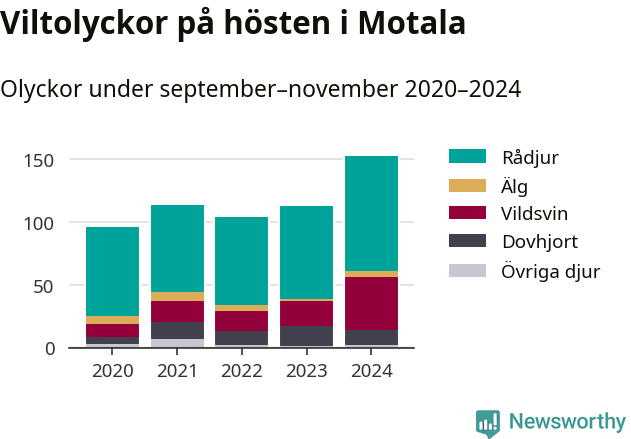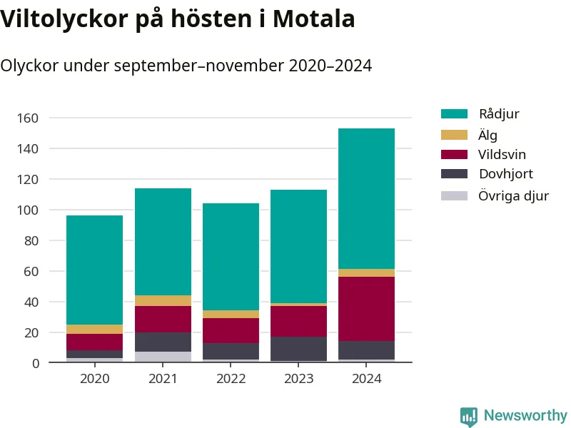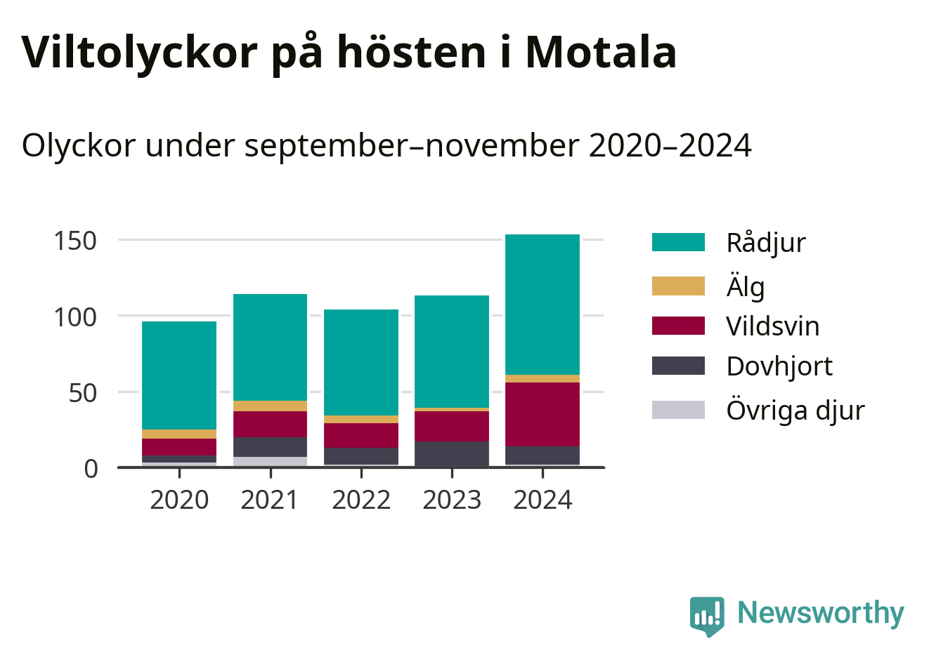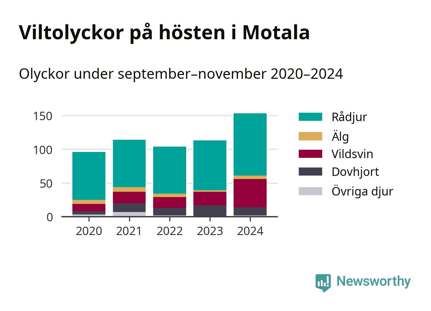 Under de senaste höstarna har antalet viltolyckor ökat i Sverige. I fjol höst noterades också flest viltolyckor i Motala hittills under 2020-talet, totalt 153 stycken.