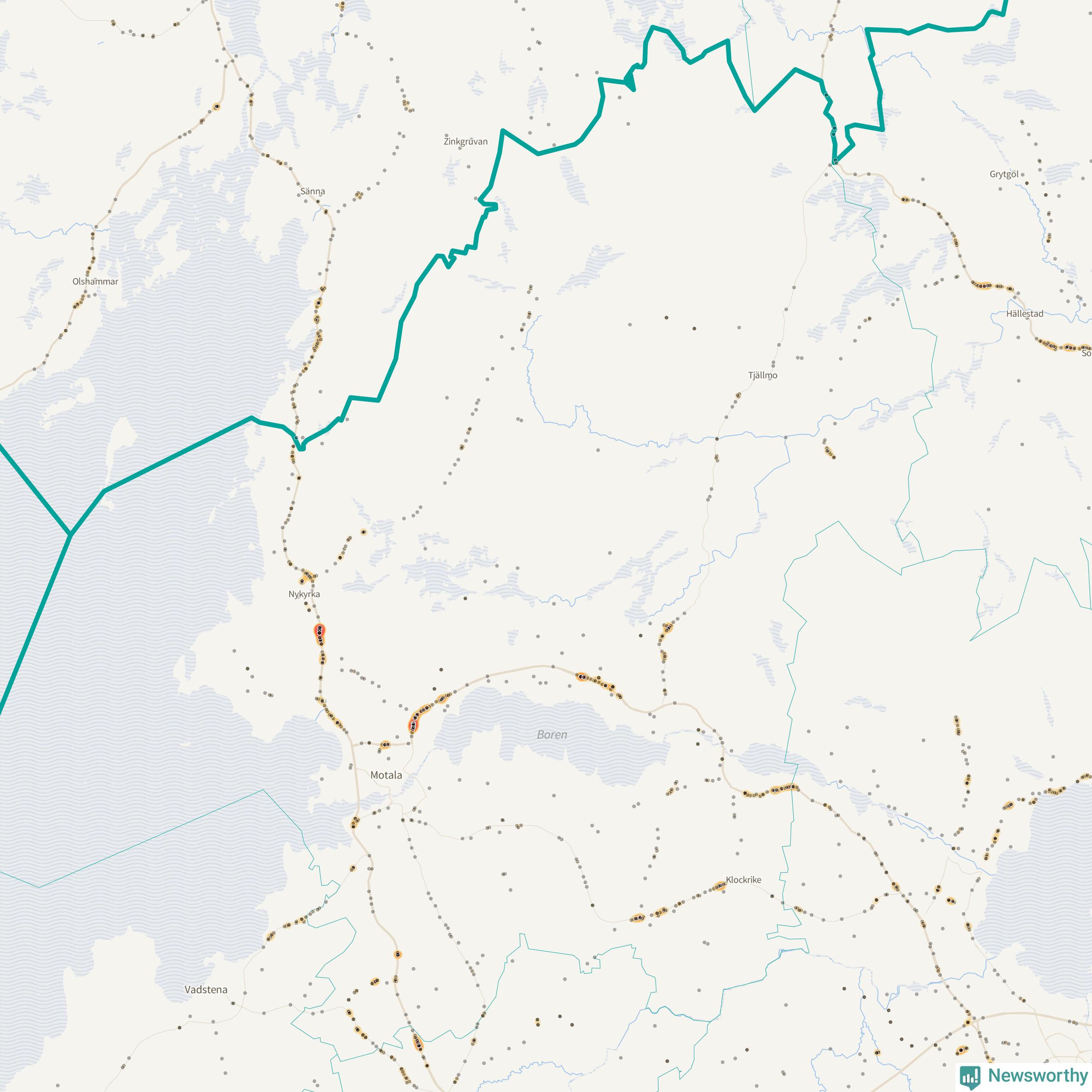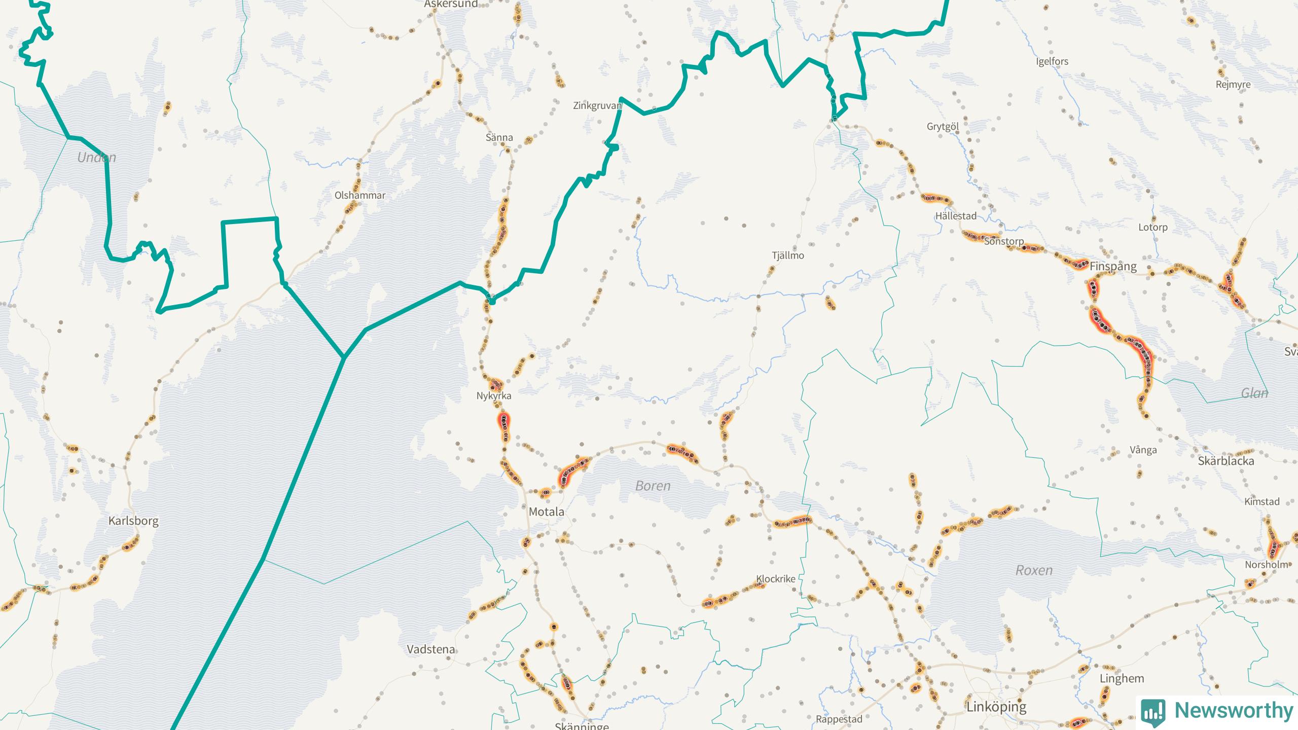 Den mest olycksdrabbade vägen i Östergötland är väg 35, med totalt 465 rapporterade viltolyckor i länet under femårsperioden. Flest olyckor längs väg 35 – 362 stycken – skedde i Åtvidabergs kommun. Linköping är den kommun med flest registrerade viltolyckor i länet totalt, 1 194 stycken under perioden september–november 2020–2024.