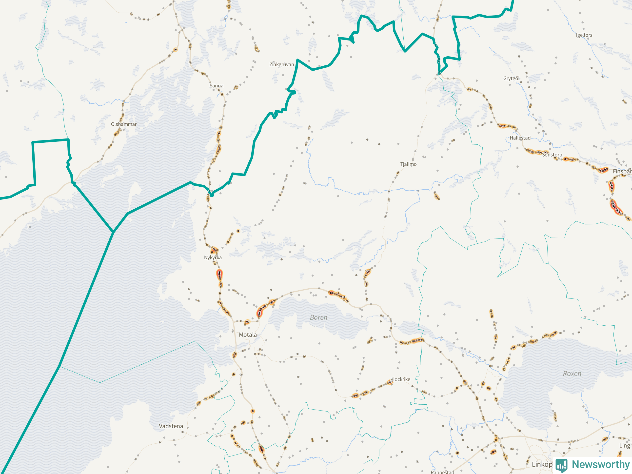 | Boxholm | väg 32 | rådjur, vildsvin | 130 |
