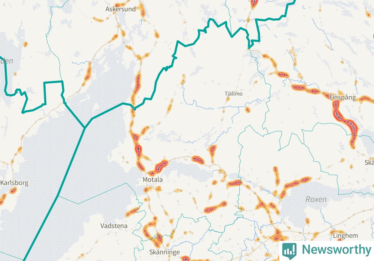 På hösten ökar risken för viltolyckor längs vägarna. Under de senaste fem höstarna har totalt 580 olyckor rapporterats i Motala kommun. Här är de mest drabbade vägarna.