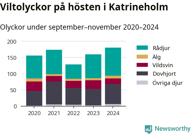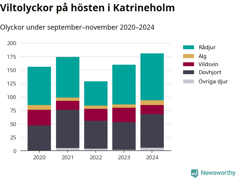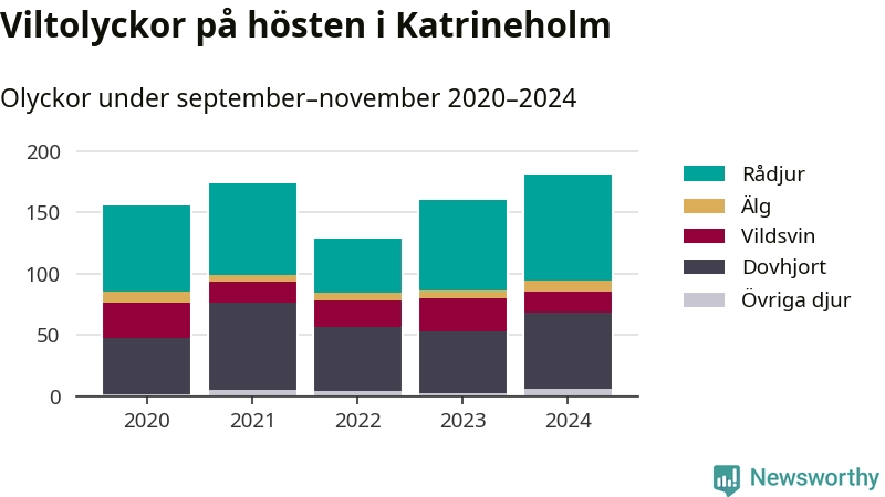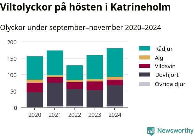 Under de senaste höstarna har antalet viltolyckor ökat i Sverige. I fjol höst noterades också flest viltolyckor i Katrineholm hittills under 2020-talet, totalt 181 stycken.