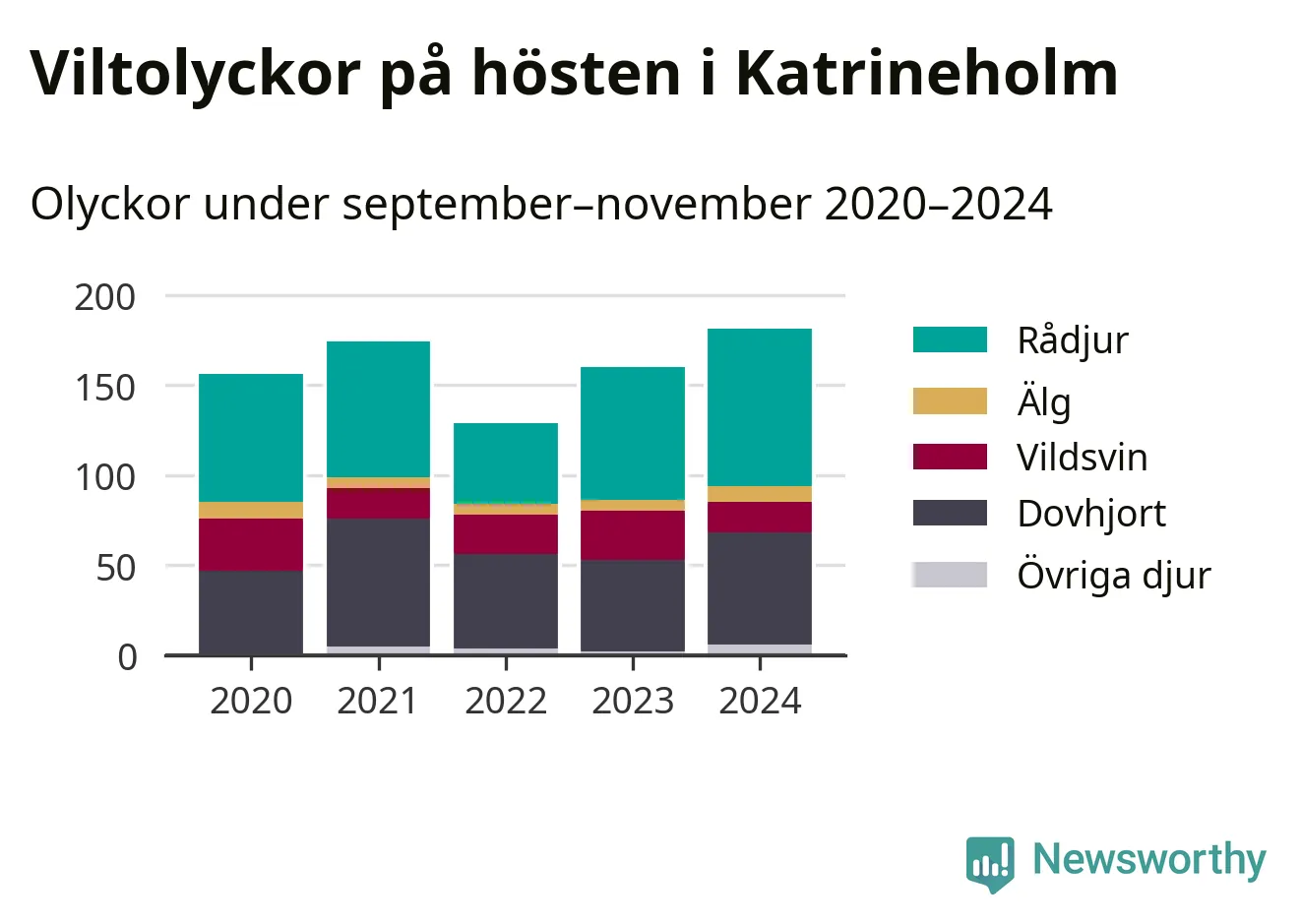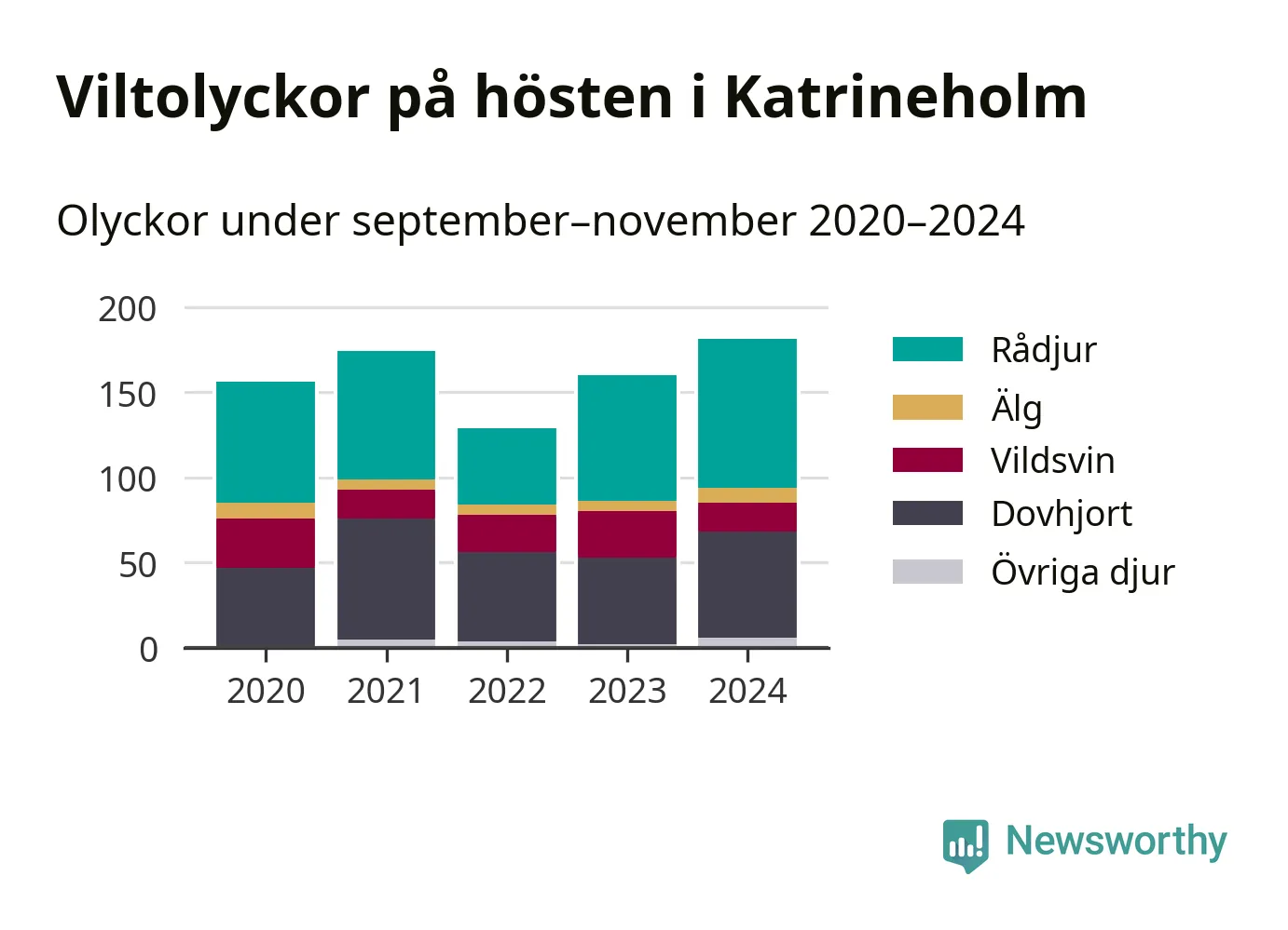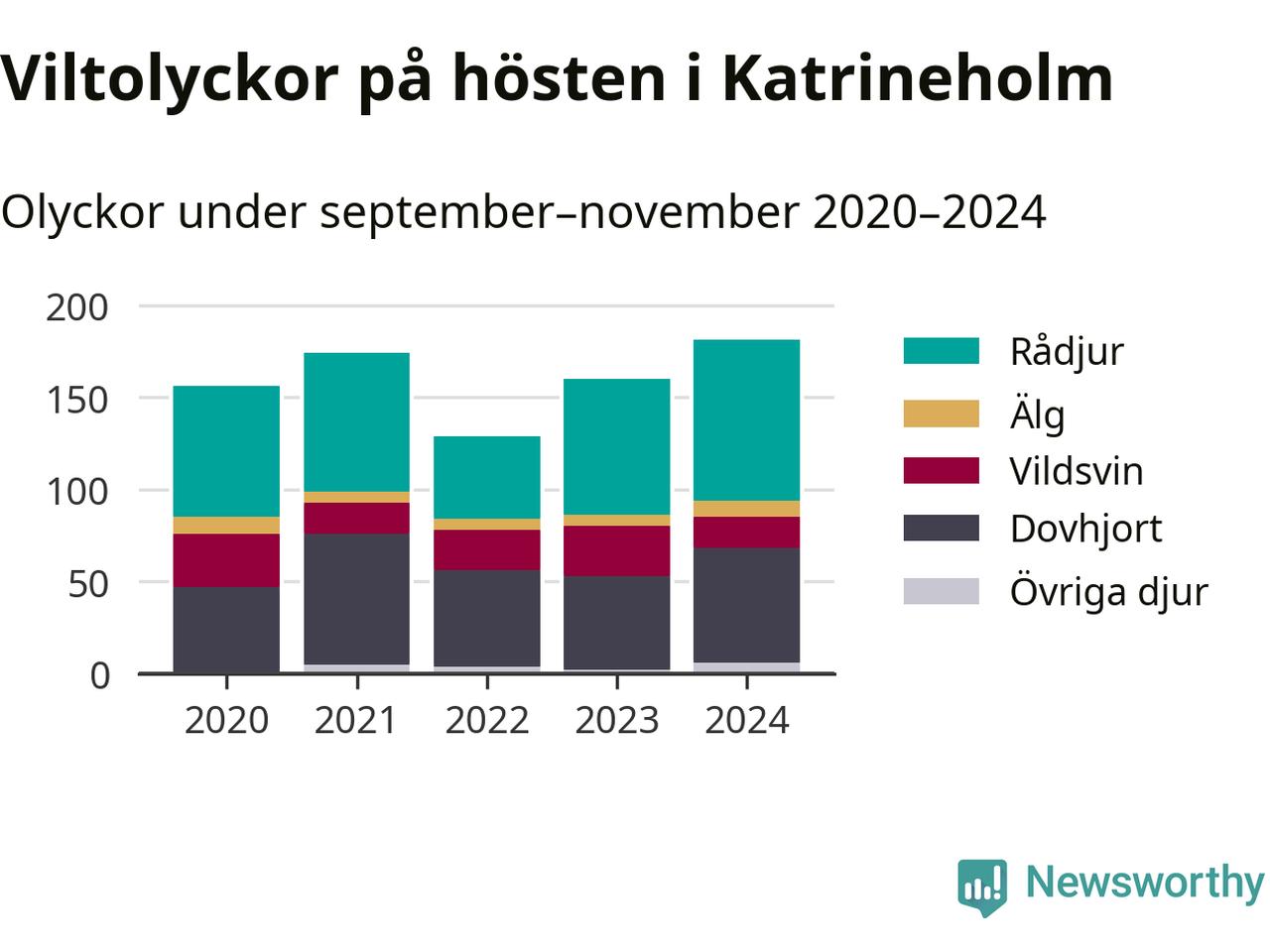 Källa: Nationella viltolycksrådet. Gäller olyckor under månaderna september–november 2020–2024.