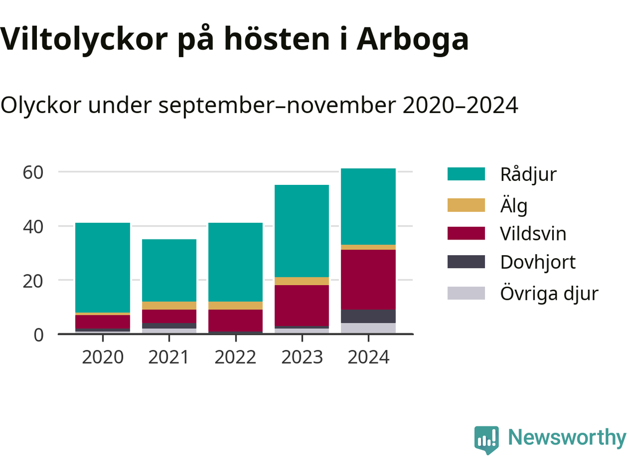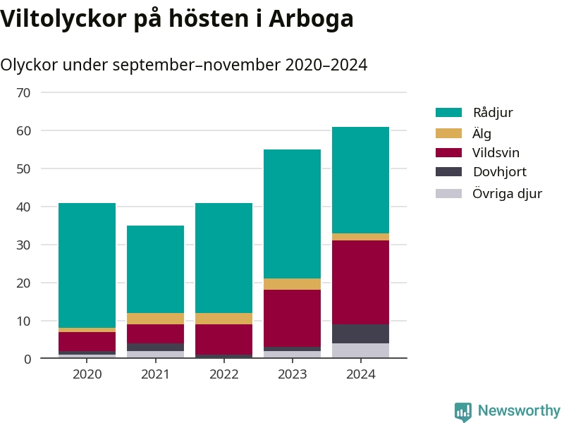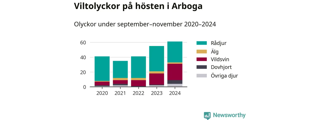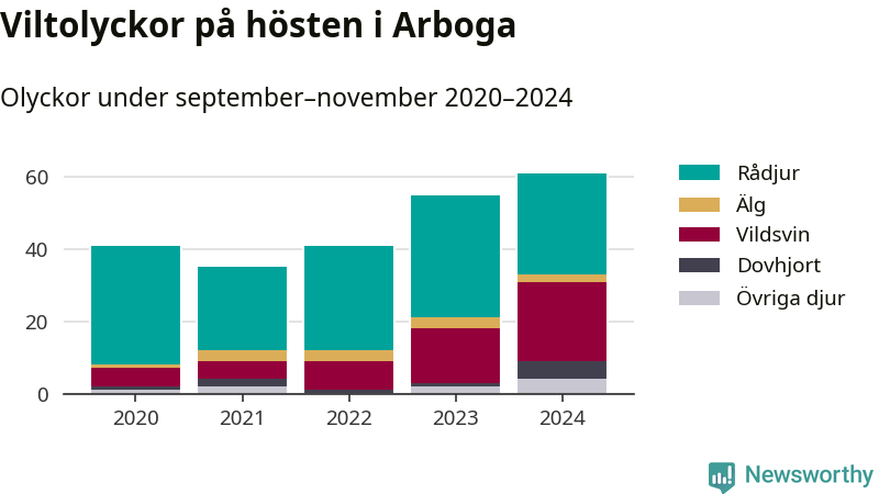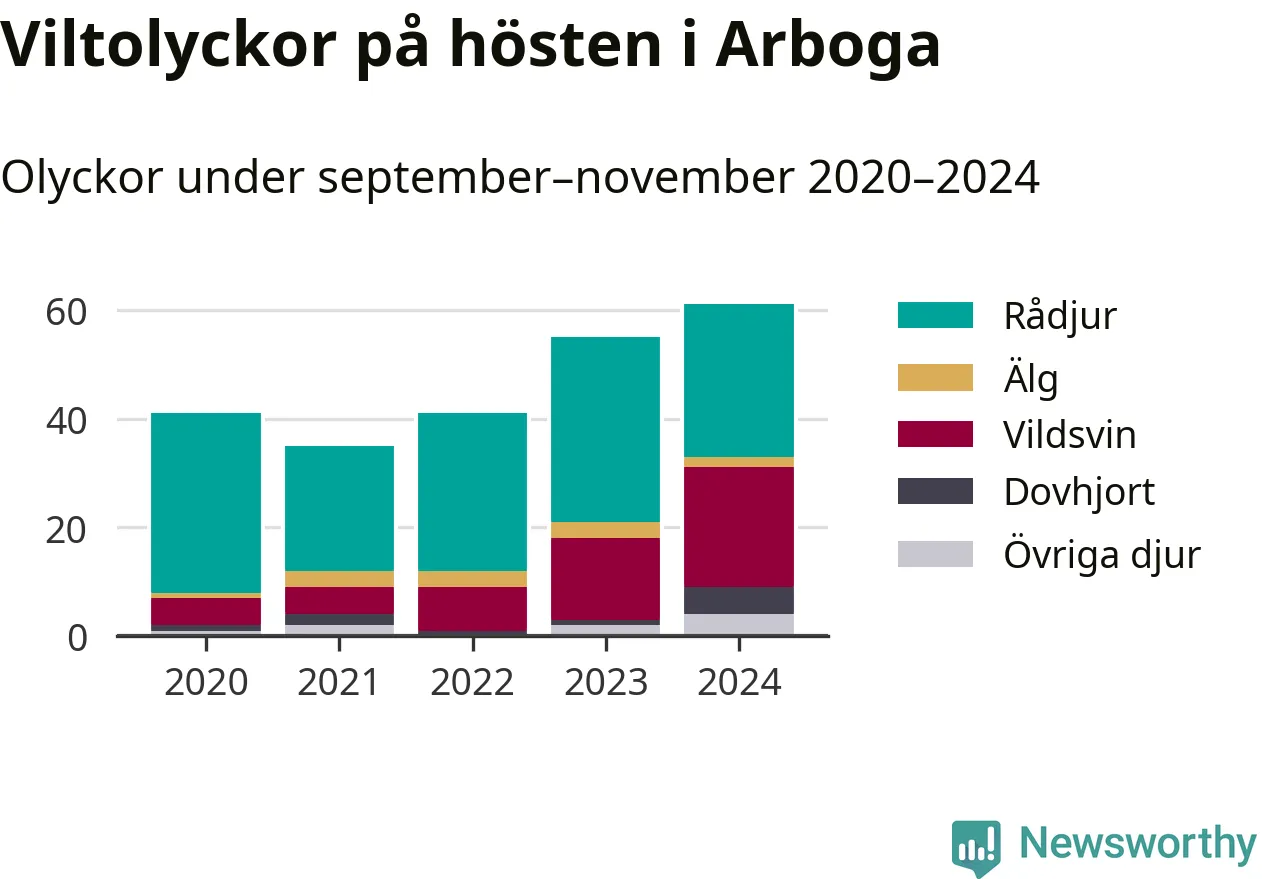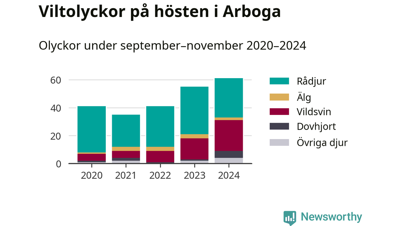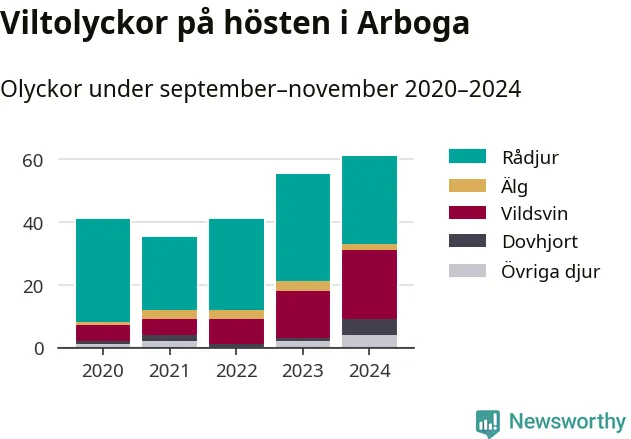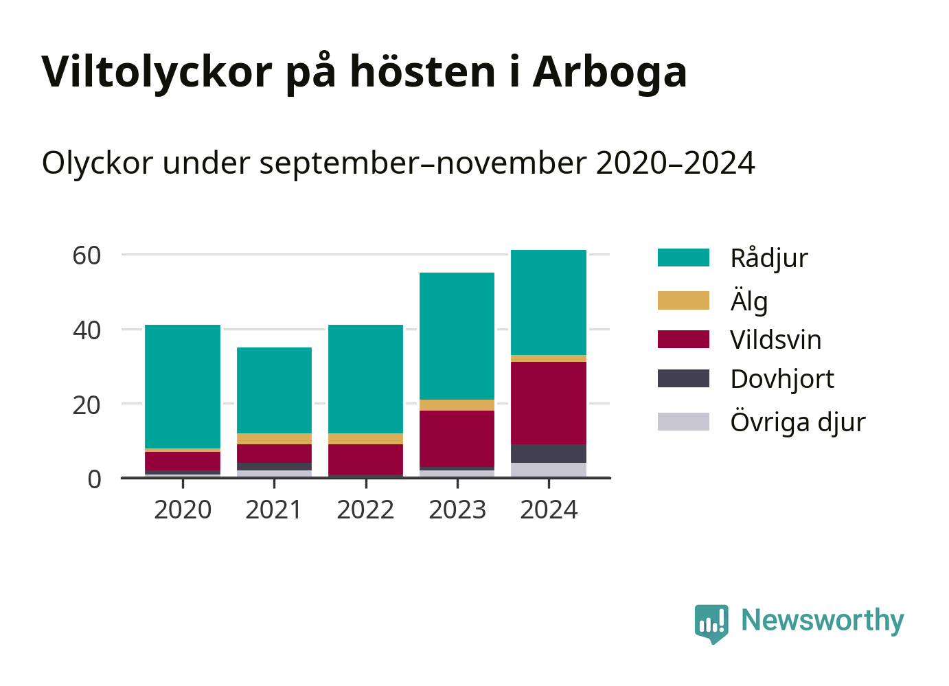 Under de senaste höstarna har antalet viltolyckor ökat i Sverige. I fjol höst noterades också flest viltolyckor i Arboga hittills under 2020-talet, totalt 61 stycken.
