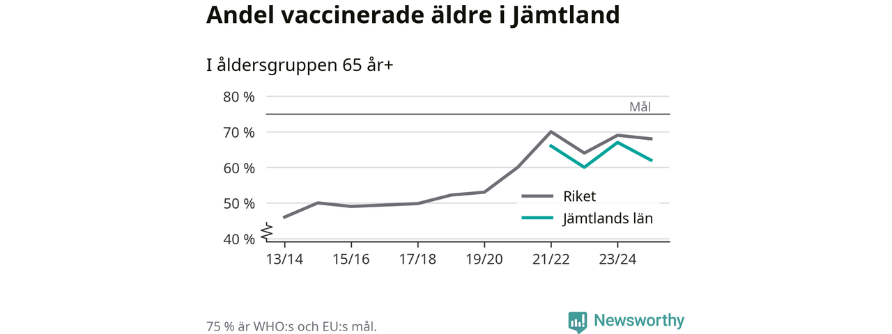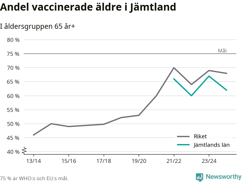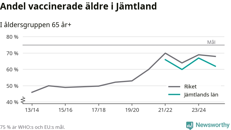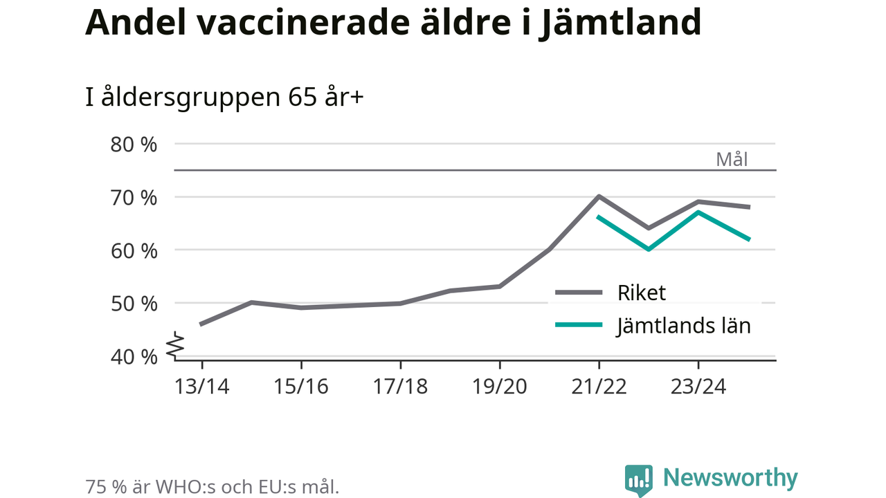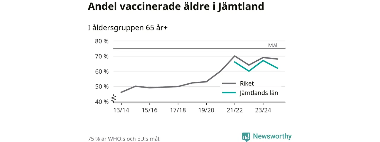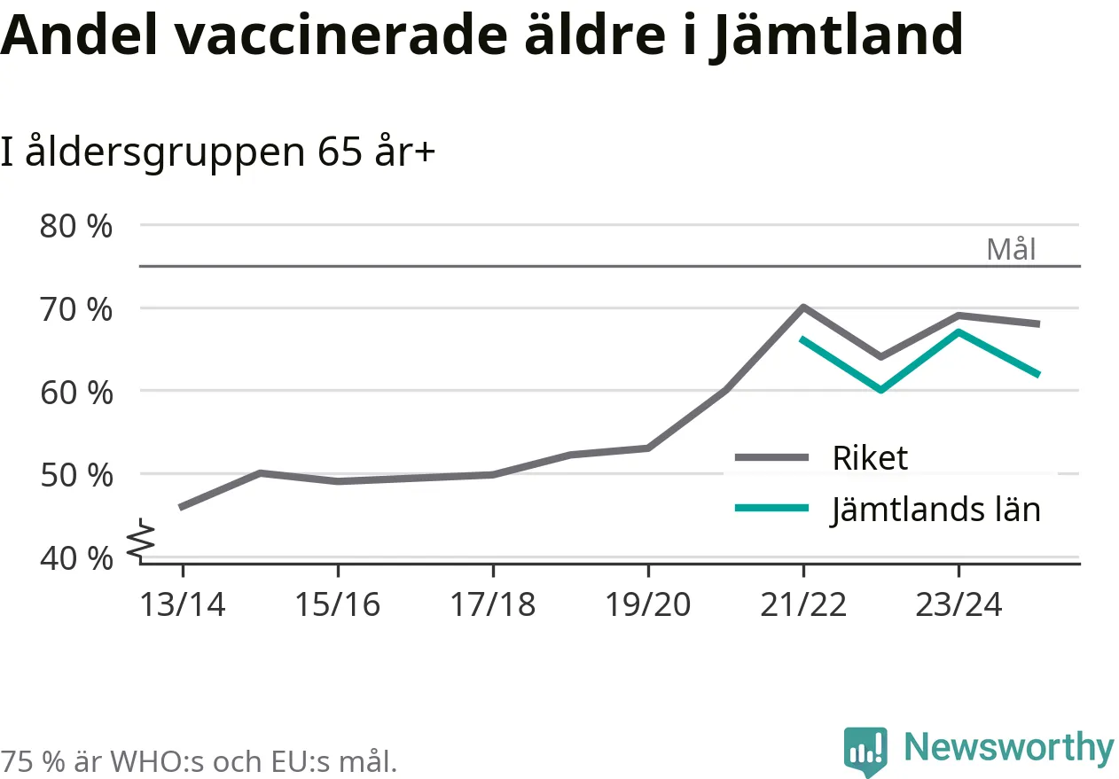 Det finns ett internationellt mål från Världshälsoorganisationen (WHO) om att 75 procent av alla äldre ska vara vaccinerade mot influensa. Sverige har de senaste åren närmat sig det målet, berättar AnnaSara Carnahan, epidemiolog på Folkhälsomyndigheten: