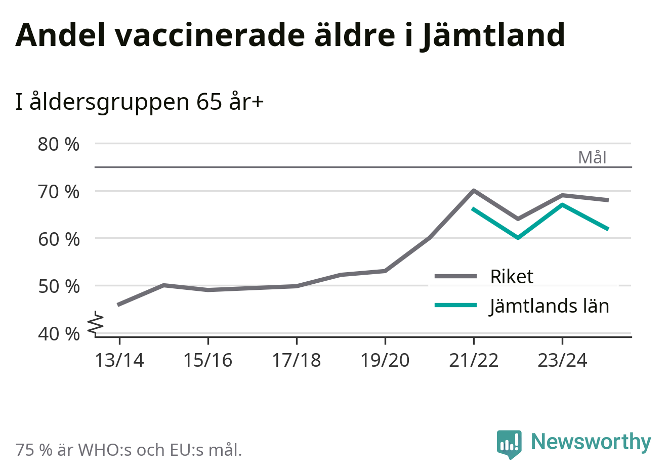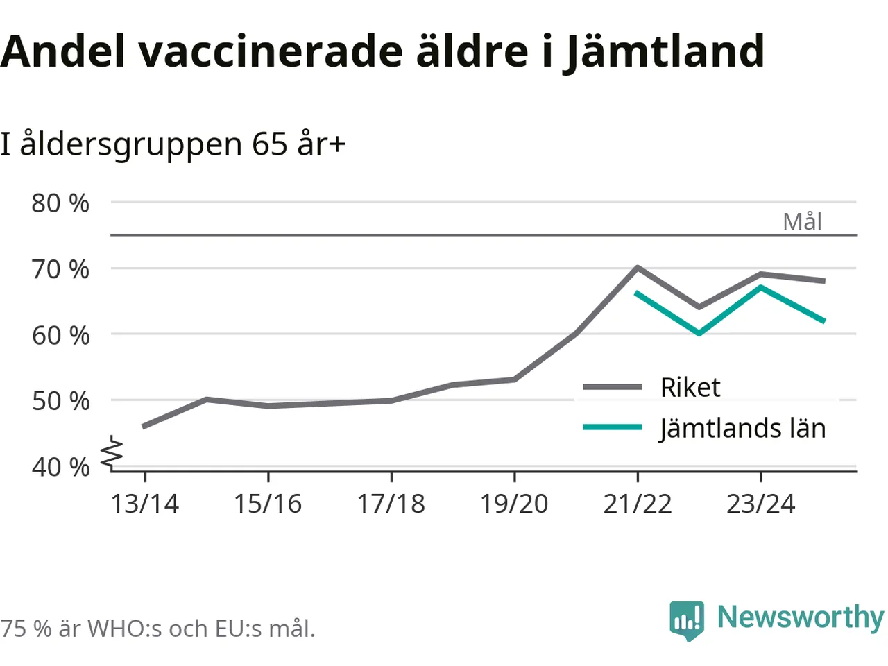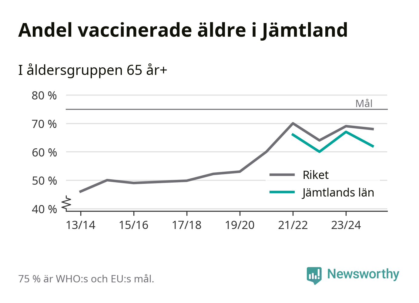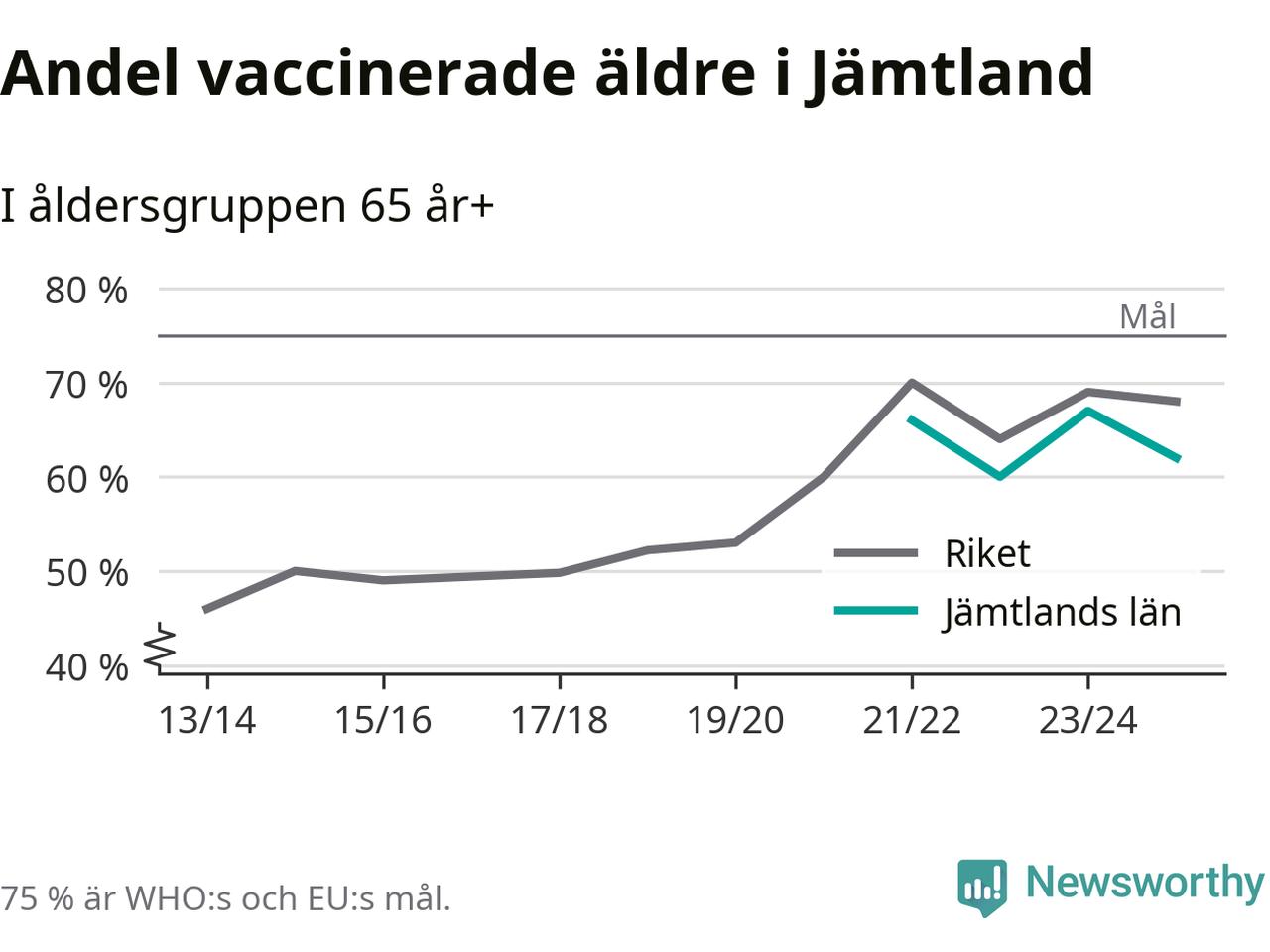 Det finns ett internationellt mål från Världshälsoorganisationen (WHO) om att 75 procent av alla äldre ska vara vaccinerade mot influensa. Sverige har de senaste åren närmat sig det målet, berättar AnnaSara Carnahan, epidemiolog på Folkhälsomyndigheten: