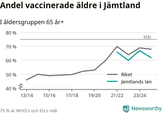 Nu är årets influensavaccination för äldre och riskgrupper igång i hela landet. I Region Jämtland Härjedalen vaccinerade sig omkring 62 procent av 65-plussarna i fjol.