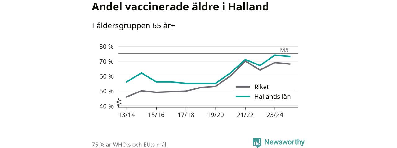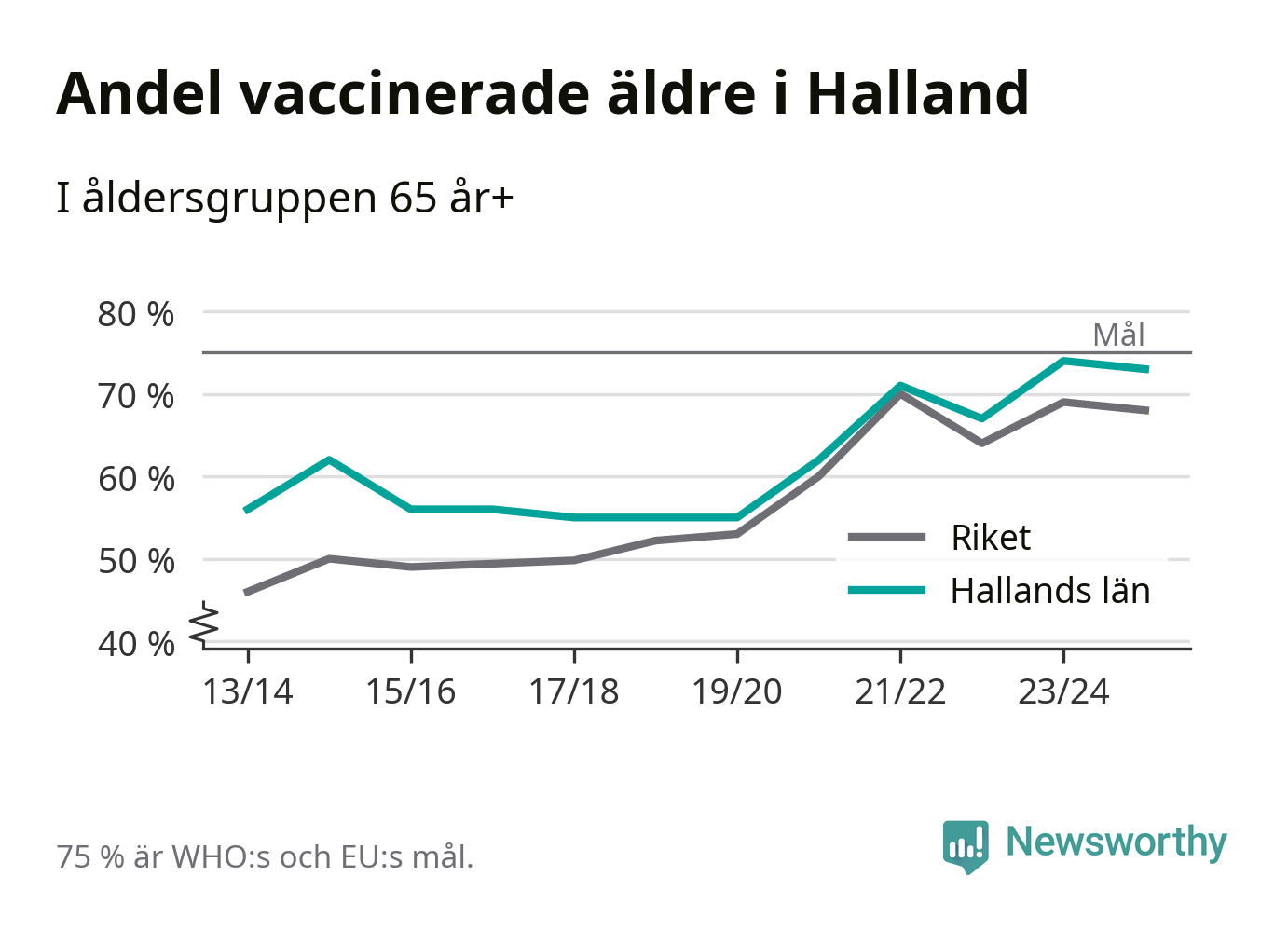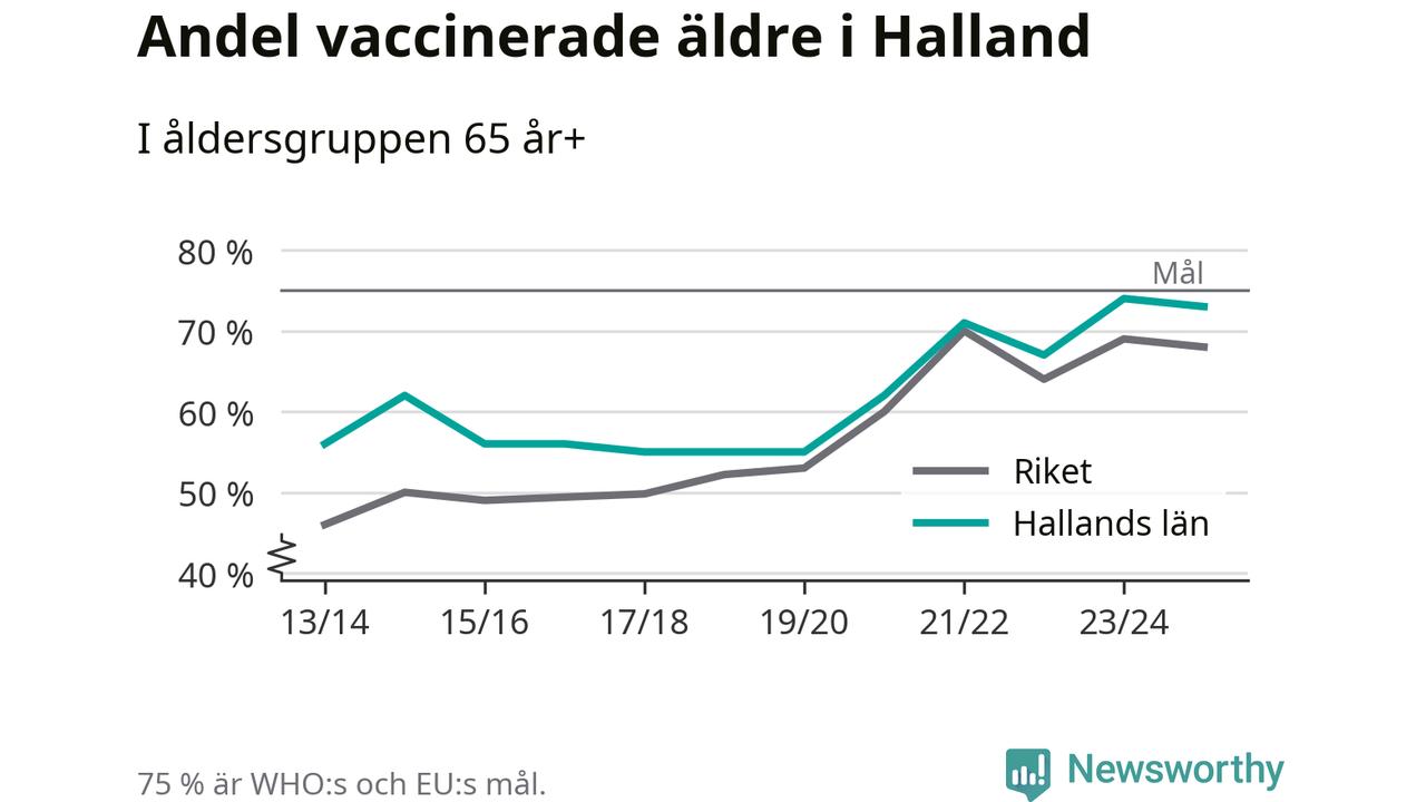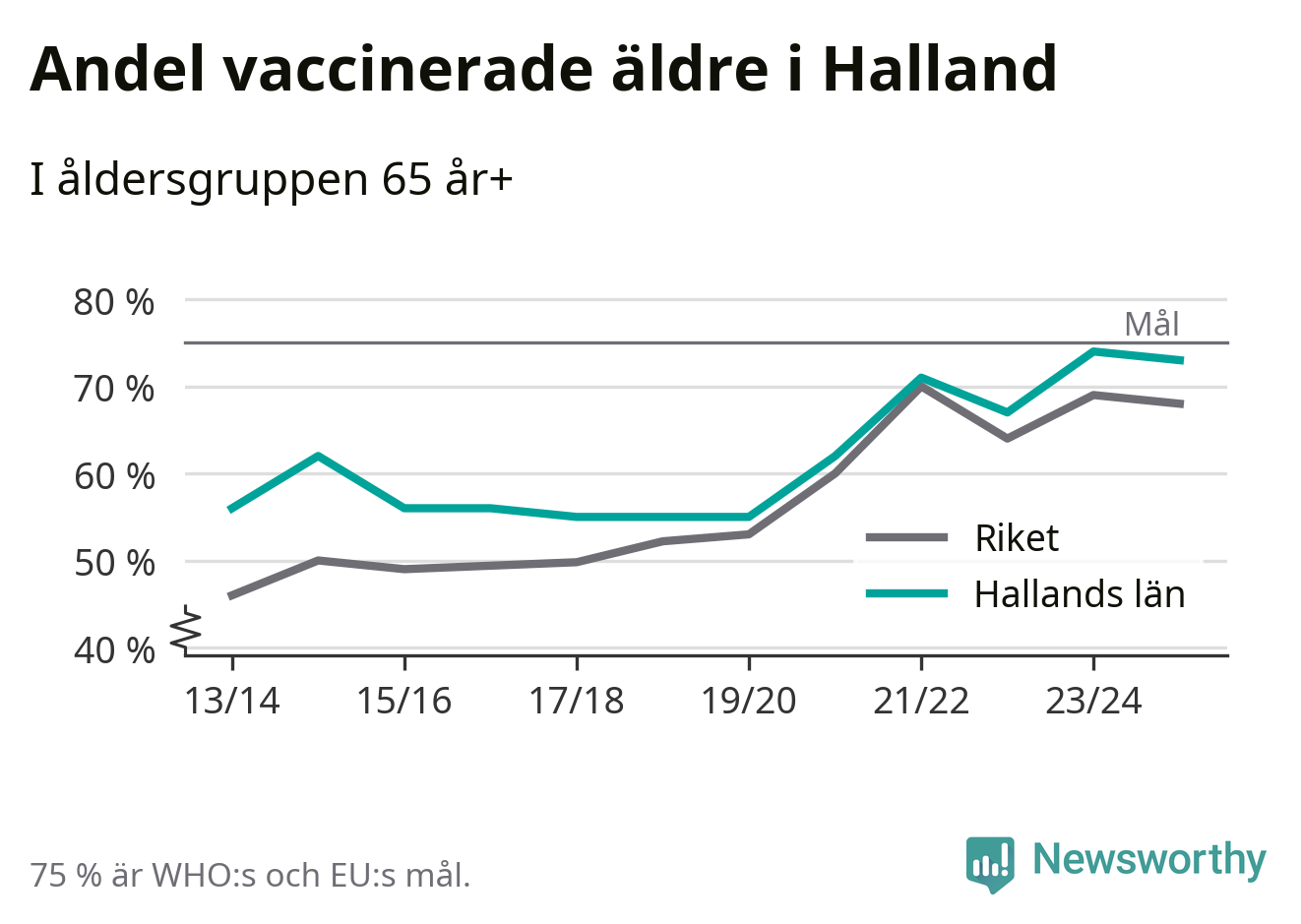 Nu är årets influensavaccination för äldre och riskgrupper igång i hela landet. I Region Halland vaccinerade sig omkring 73 procent av 65-plussarna i fjol. Därmed når regionen nästan målet på 75 procents täckning.