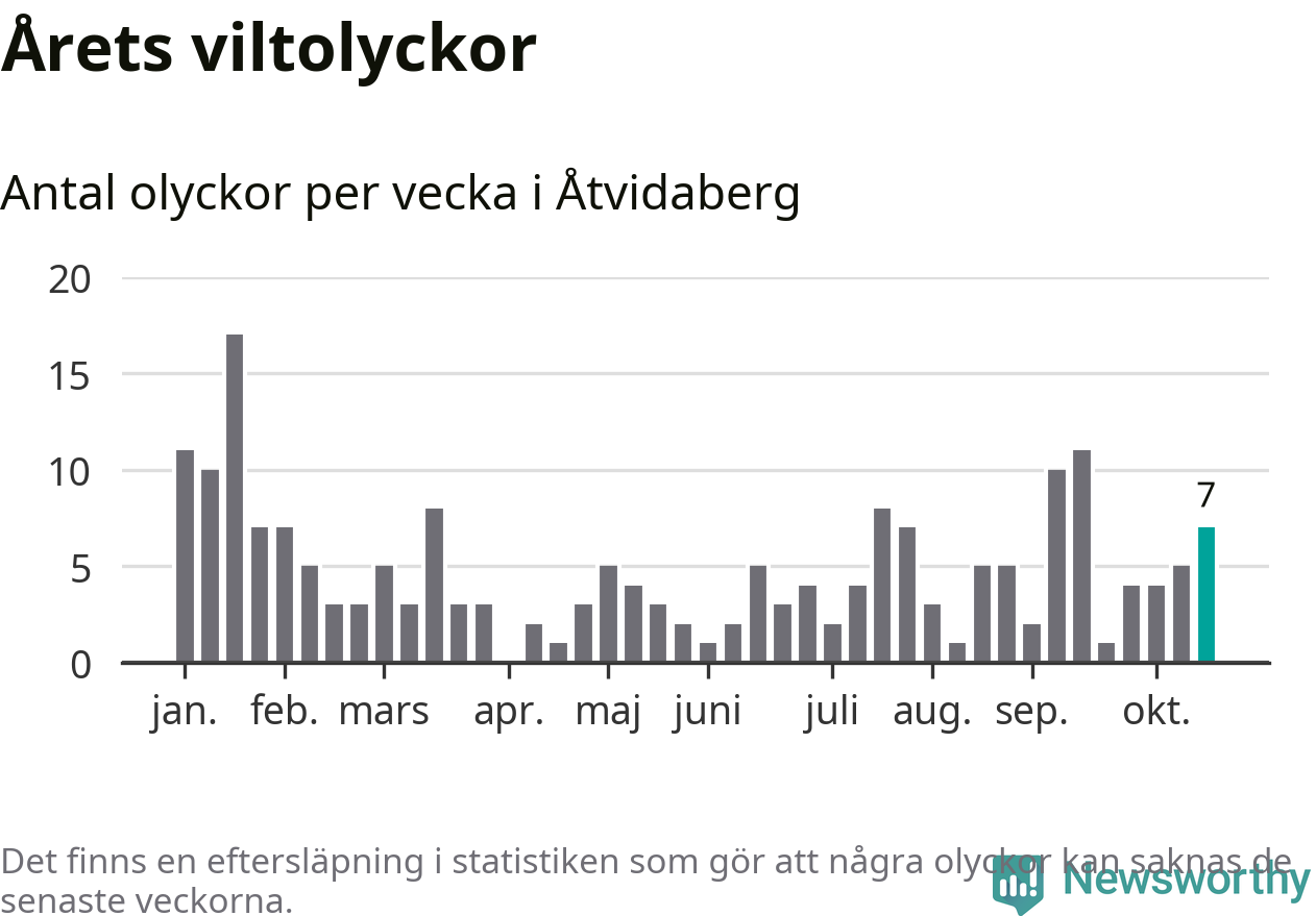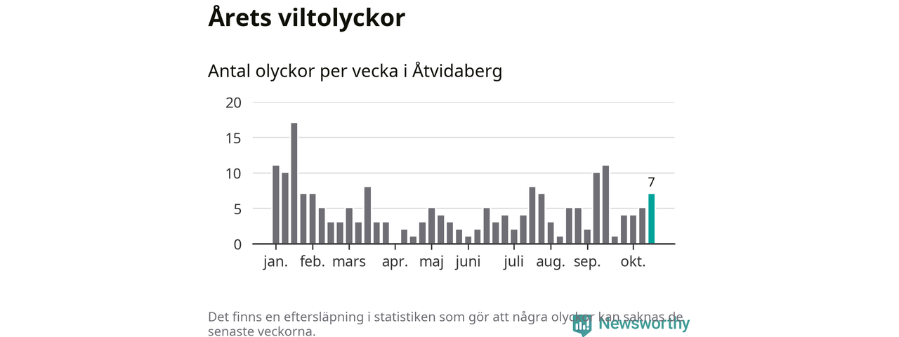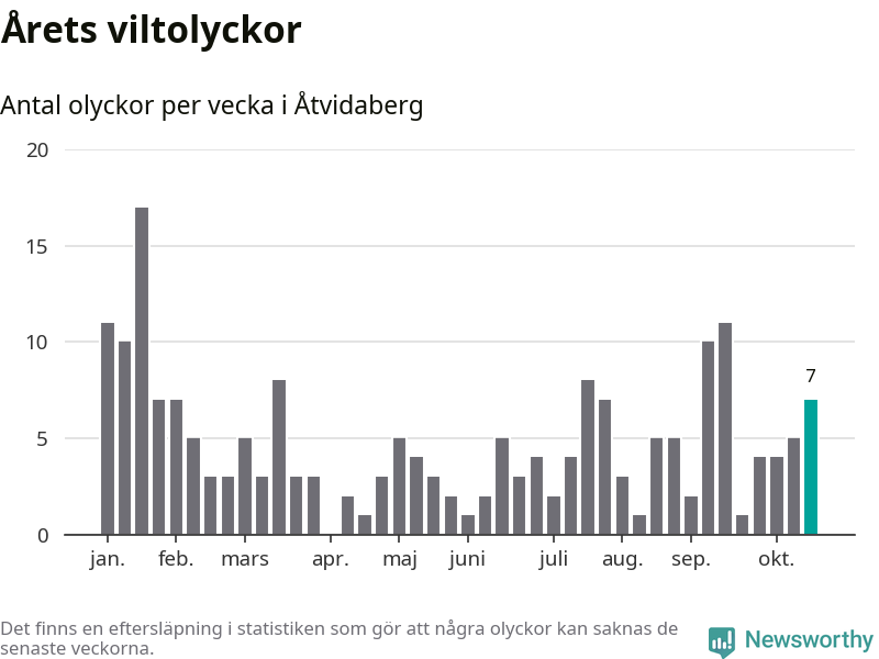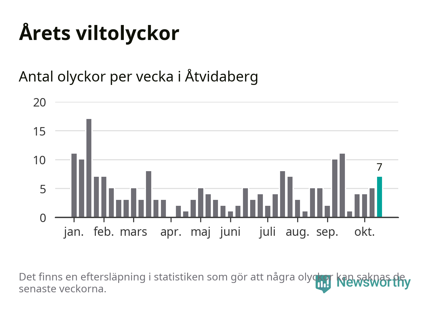 Hittills har sju viltolyckor rapporterats in i Åtvidabergs kommun från vecka 43. Se listan här.