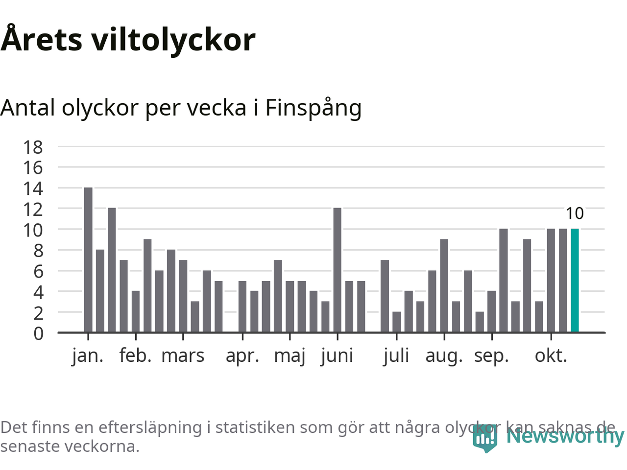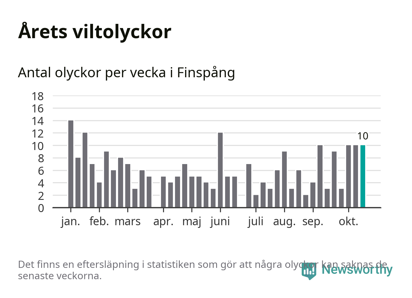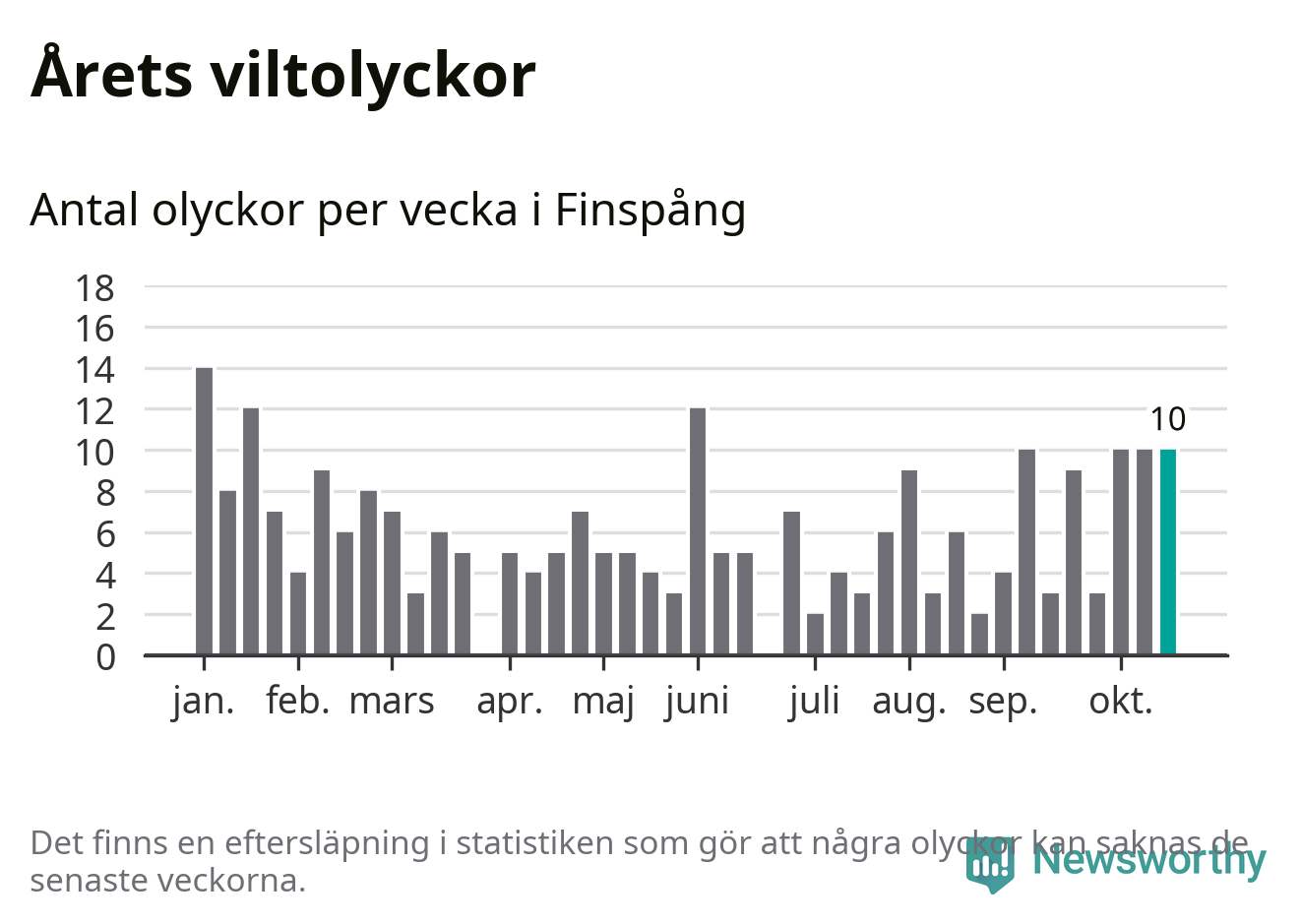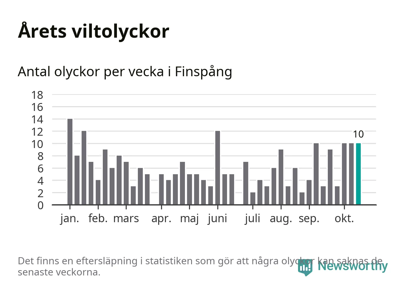 Hittills har tio viltolyckor rapporterats in i Finspångs kommun från vecka 43. Se listan här.