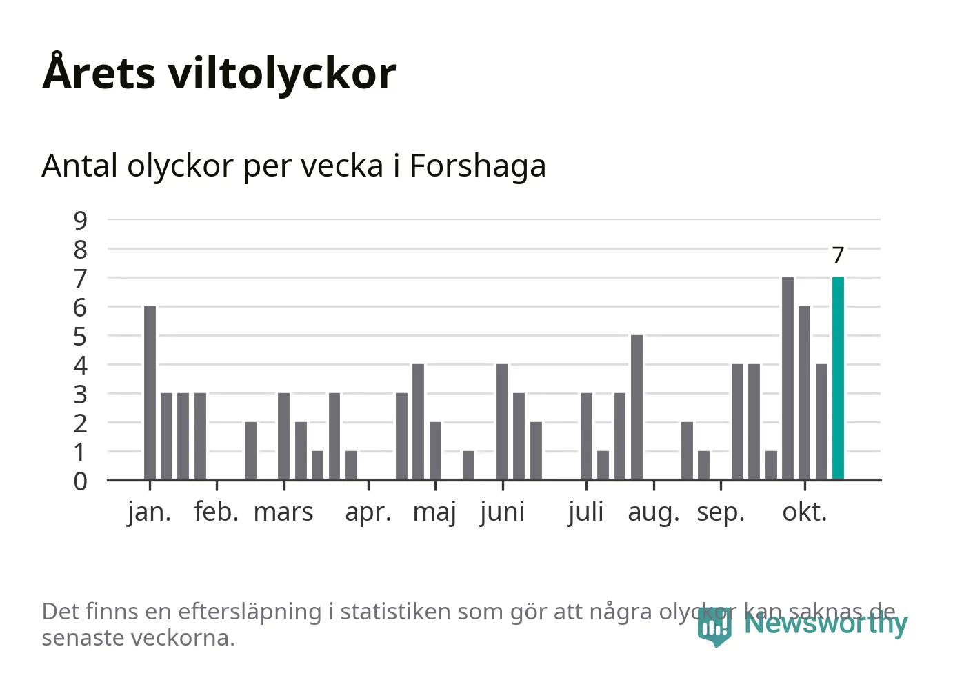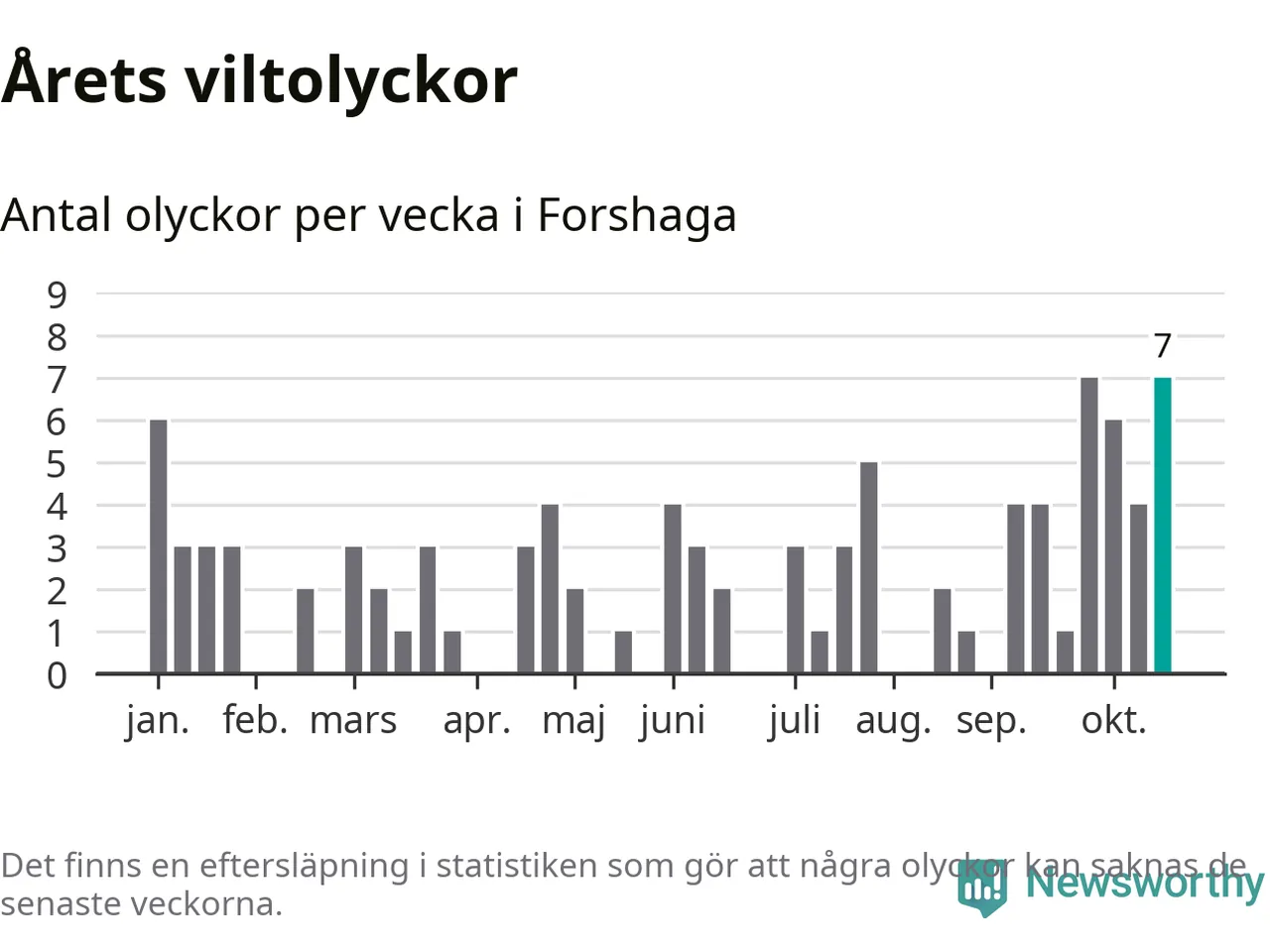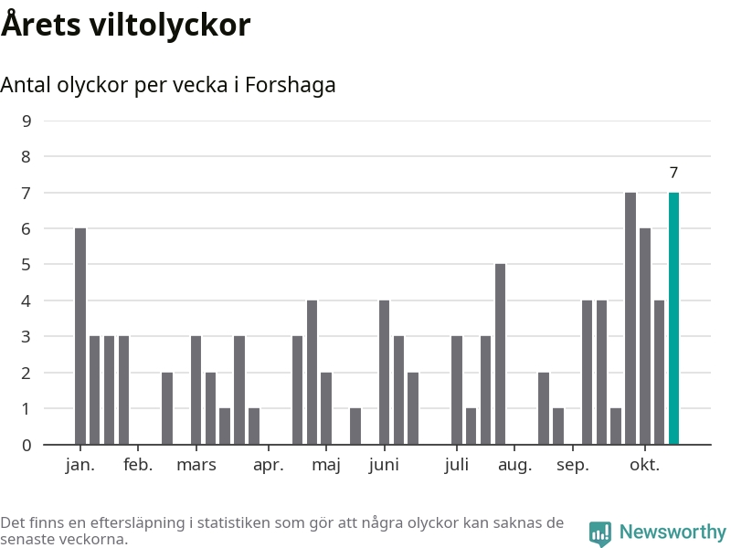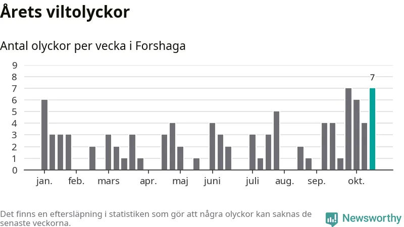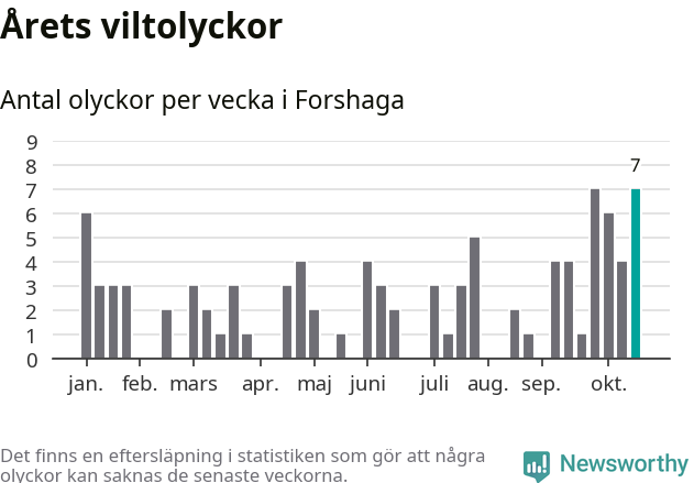 Sju olyckor på en enda vecka är däremot ovanligt många. Bara tio gånger tidigare sedan 2015 har det skett