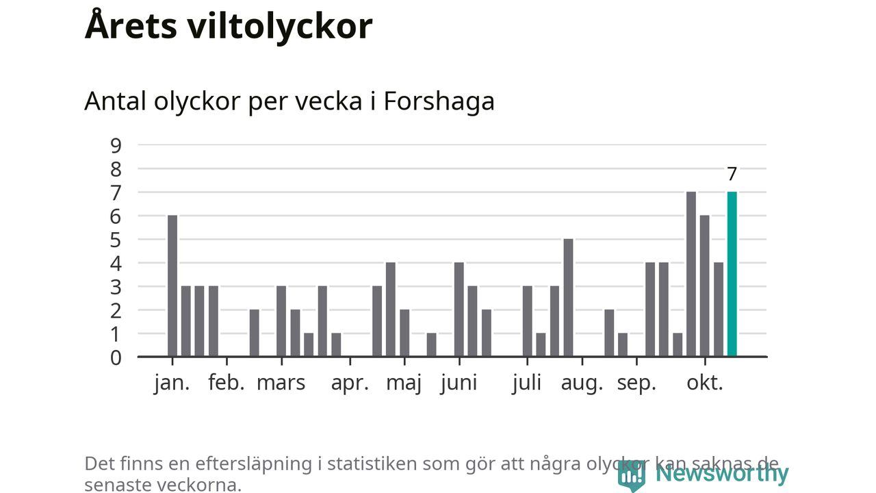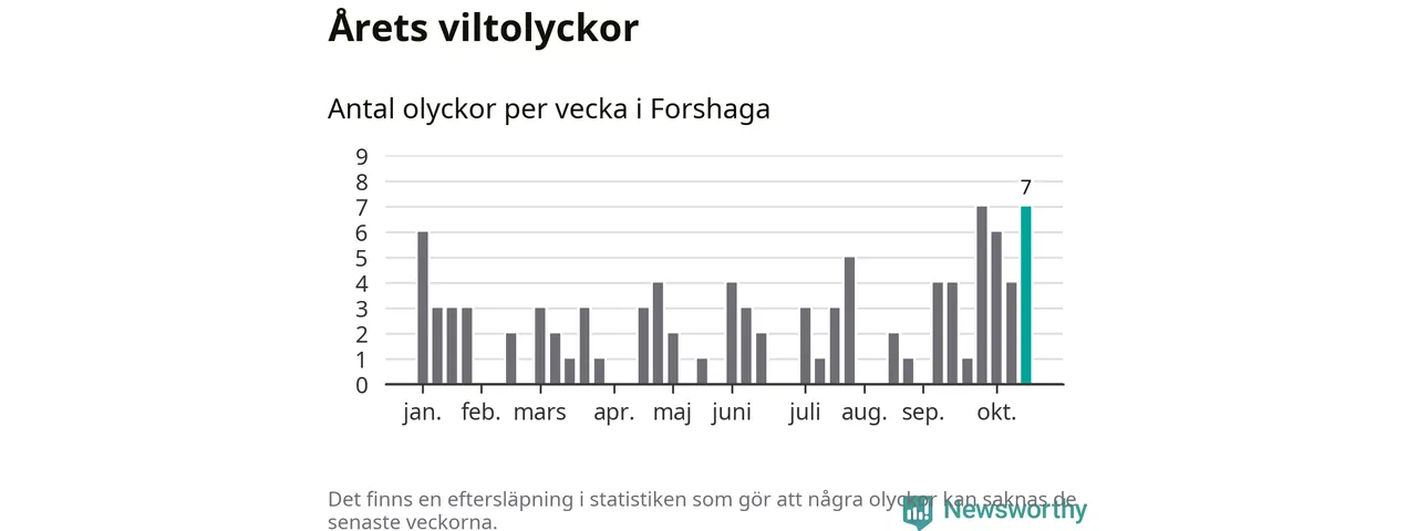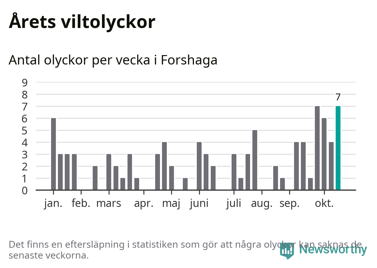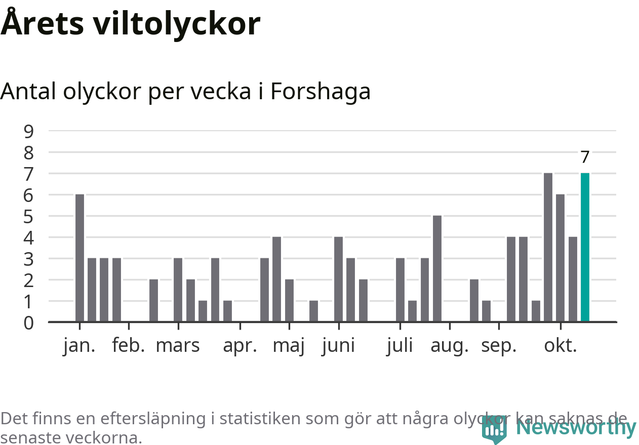 Sju olyckor på en enda vecka är däremot ovanligt många. Bara tio gånger tidigare sedan 2015 har det skett
