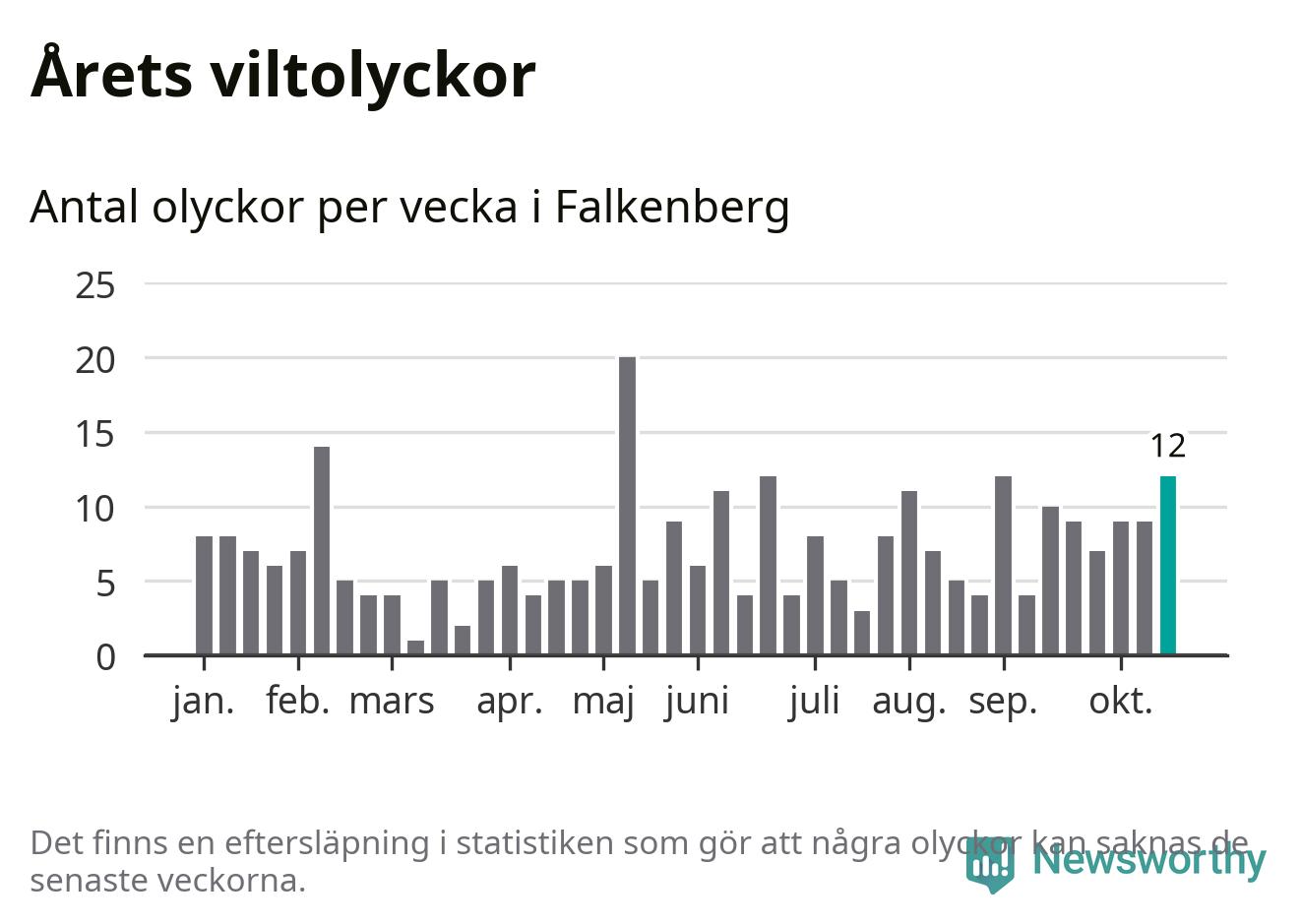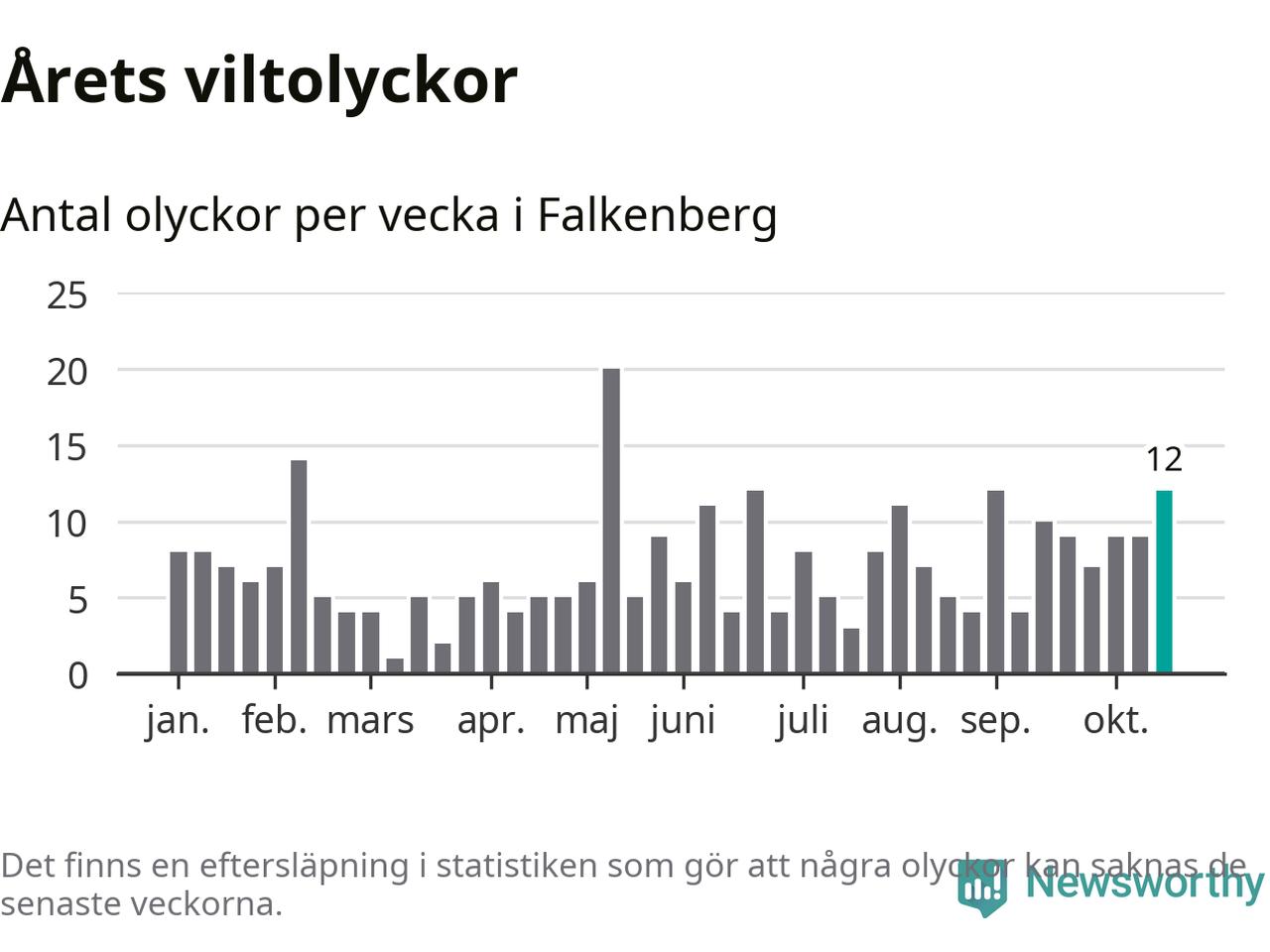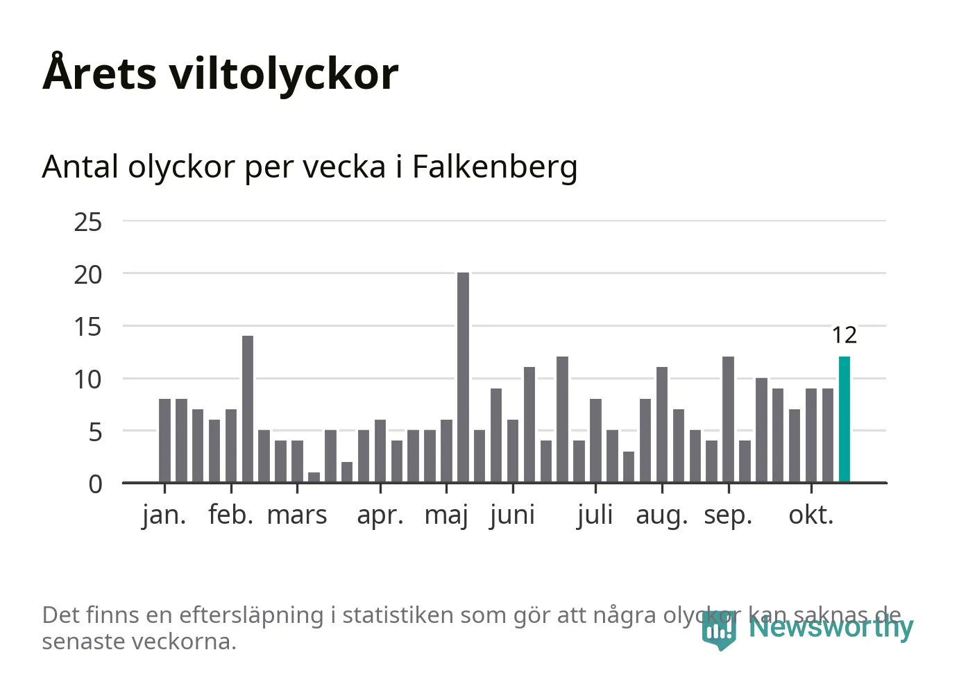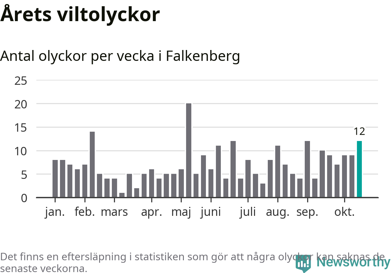 Hittills har tolv viltolyckor rapporterats in i Falkenbergs kommun från vecka 43. Se listan här.
