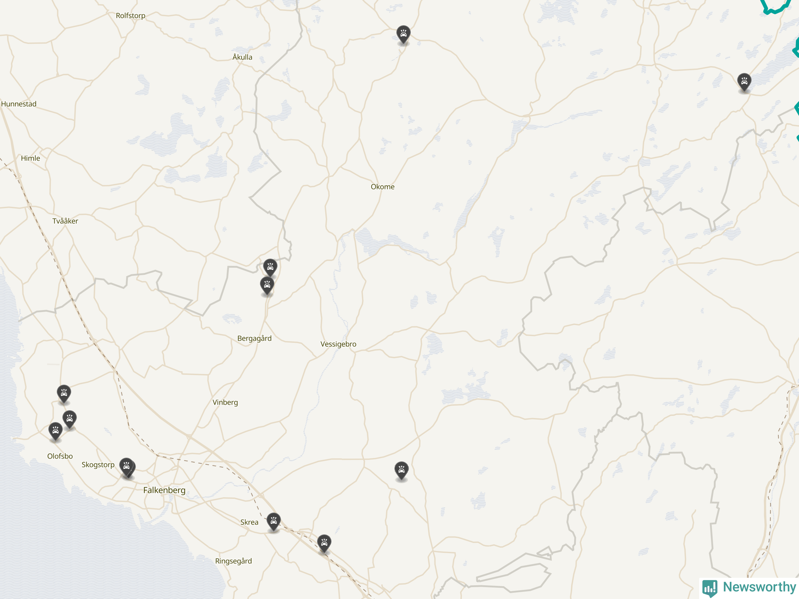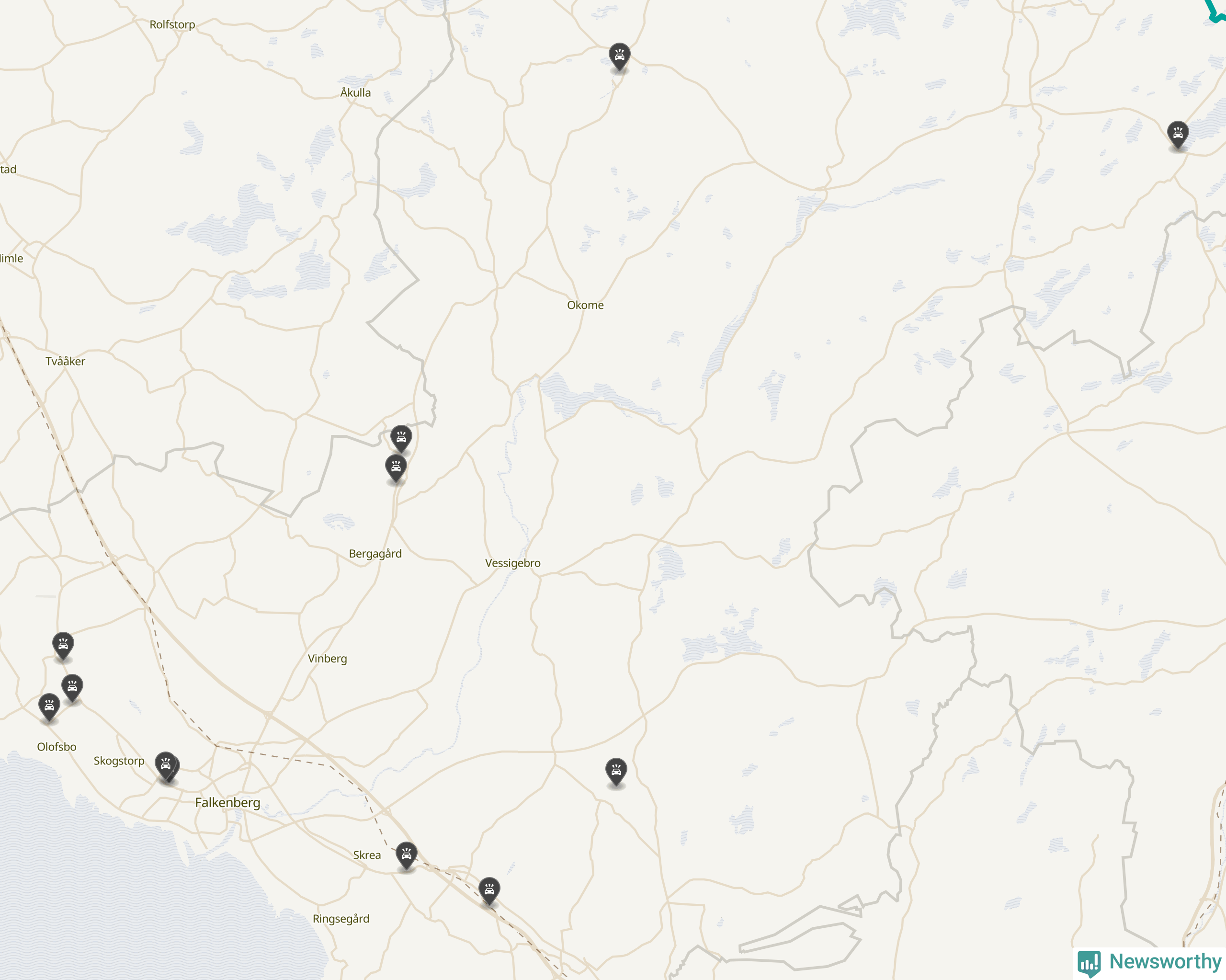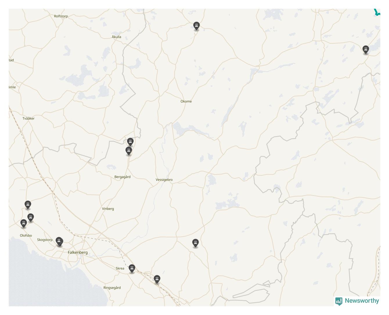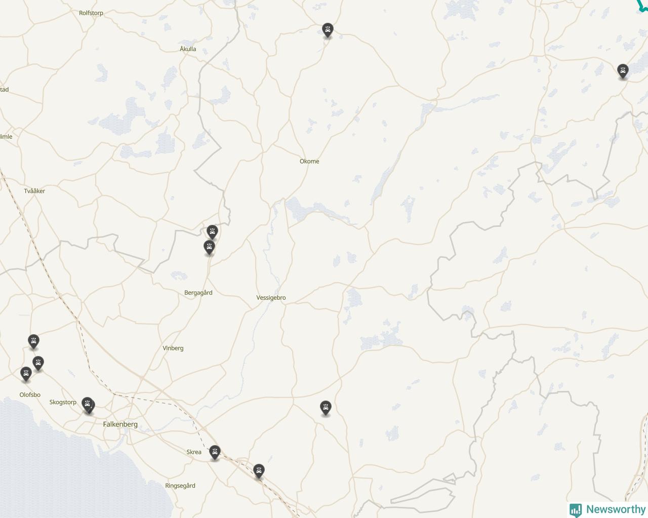 Här inträffade viltolyckorna i Falkenberg förra veckan