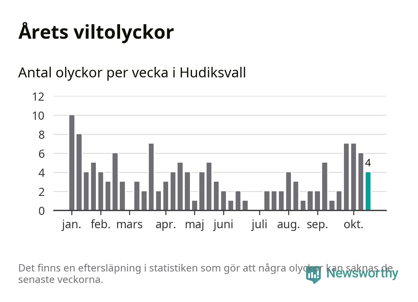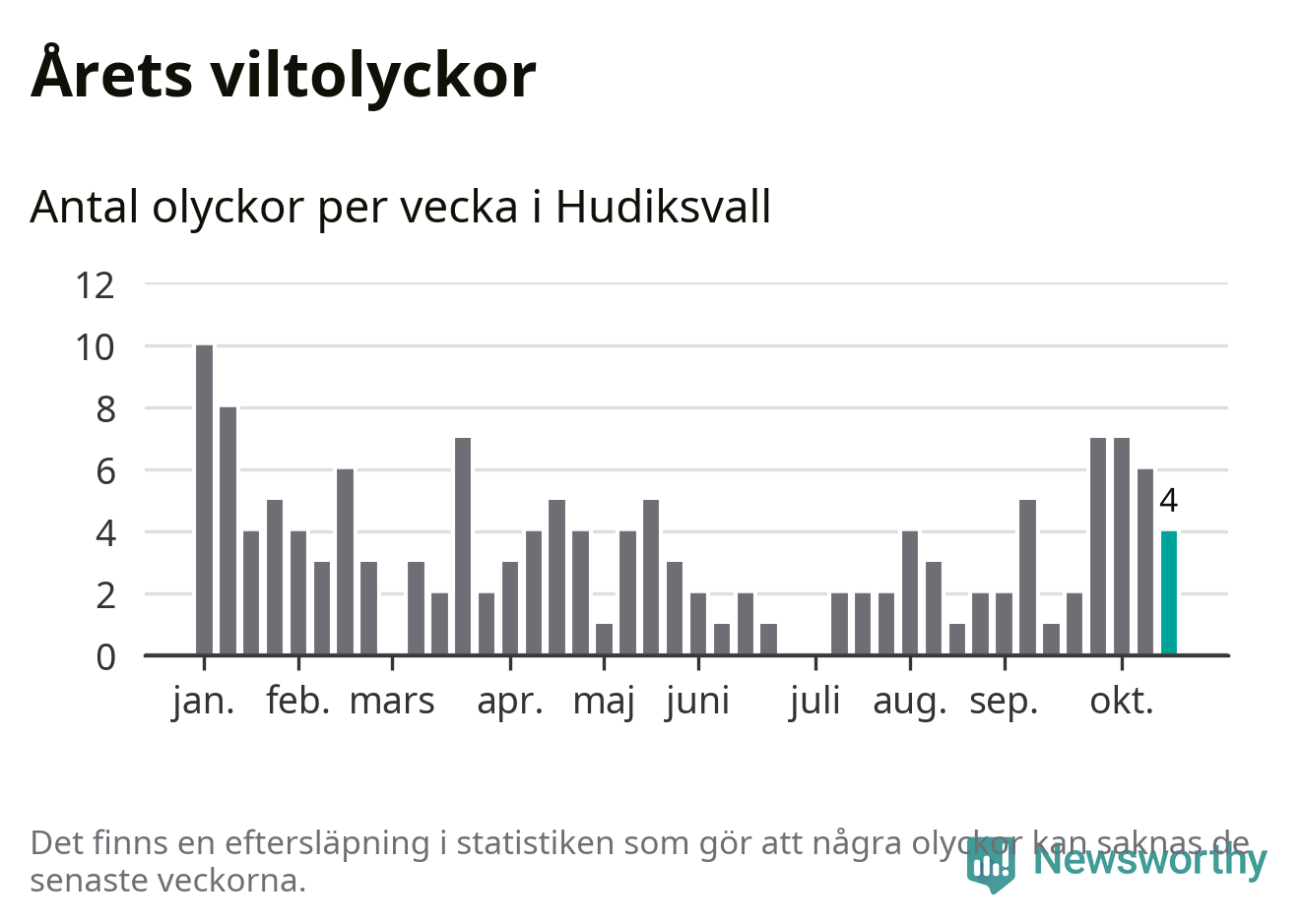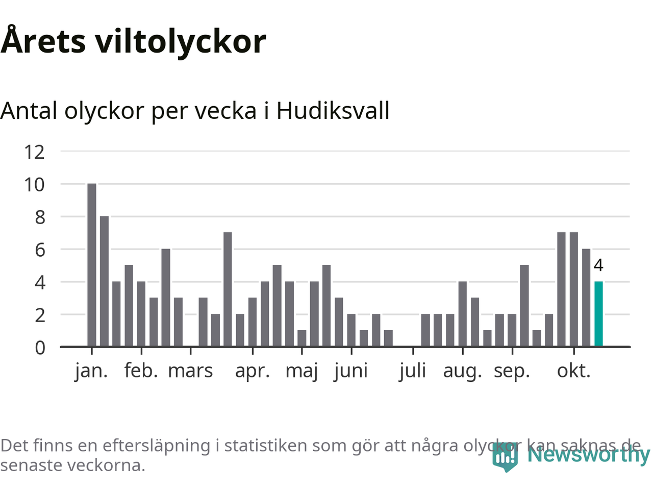 Hittills har fyra viltolyckor rapporterats in i Hudiksvalls kommun från vecka 43. Se listan här.