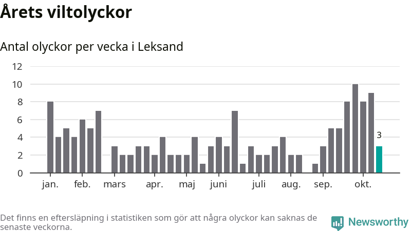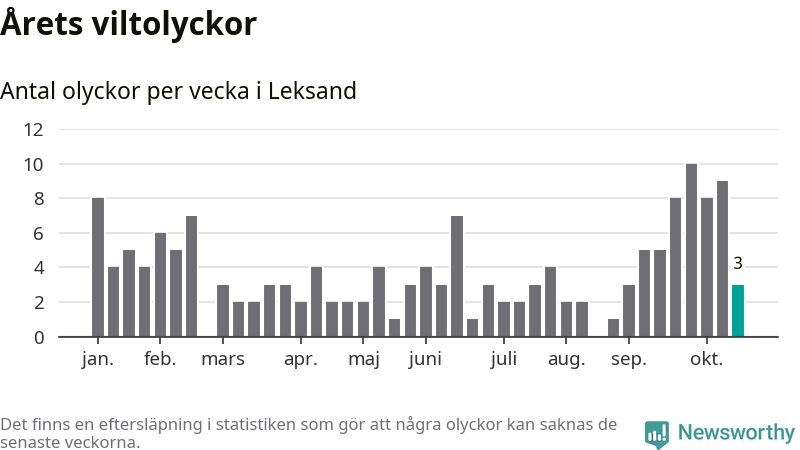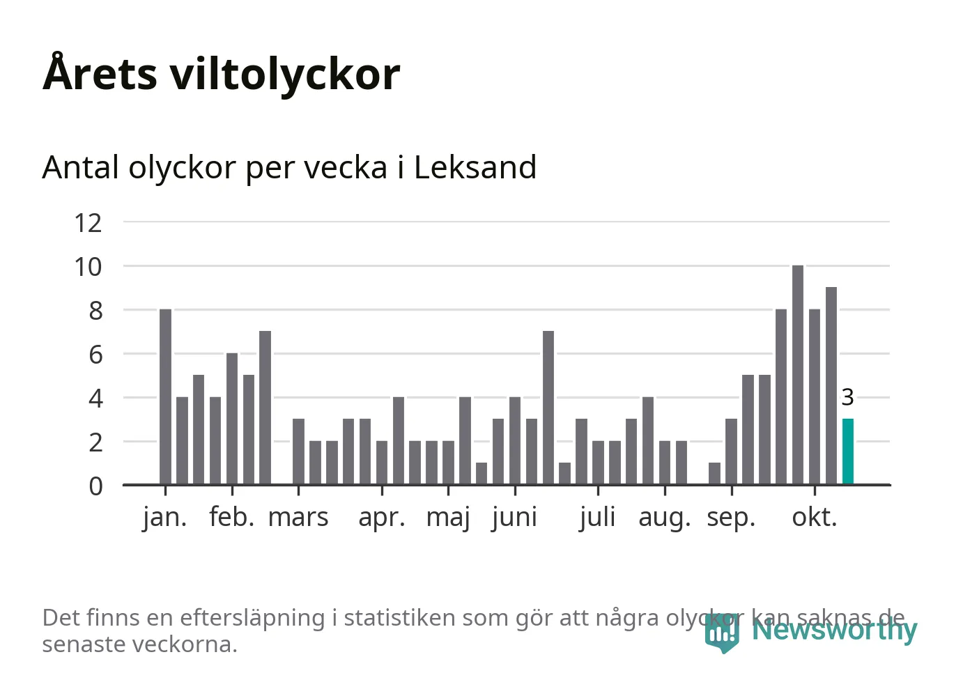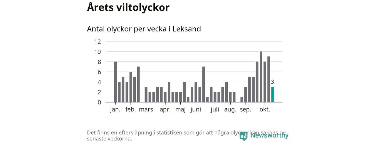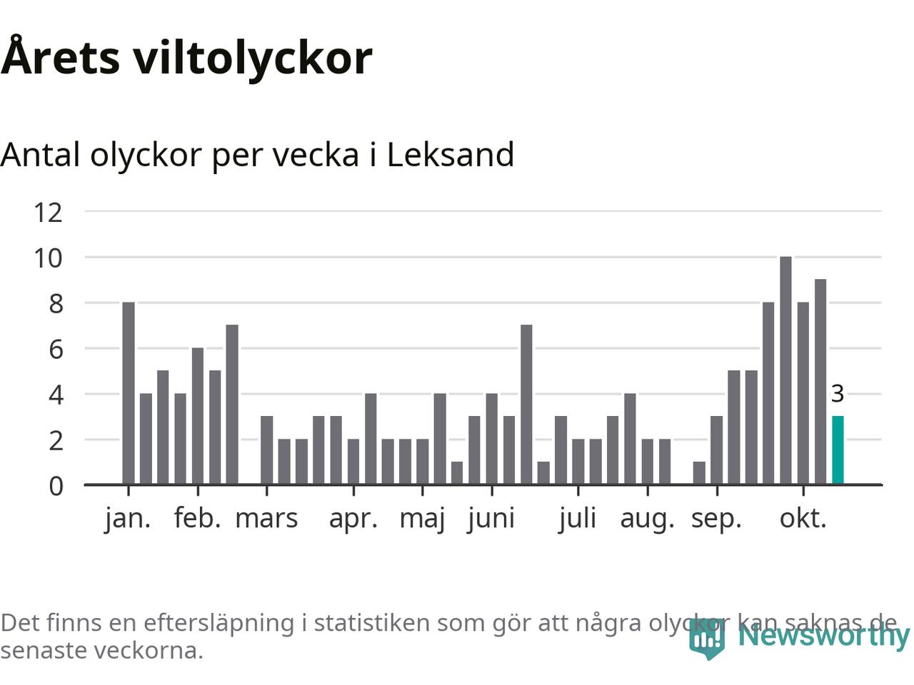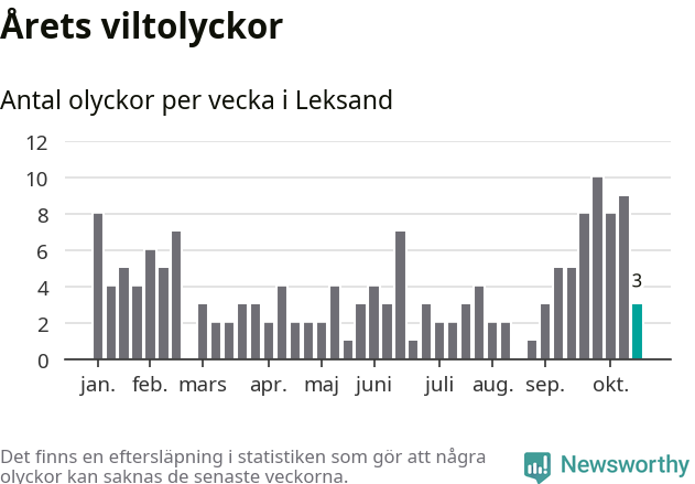 Hittills har tre viltolyckor rapporterats in i Leksands kommun från vecka 43. Se listan här.