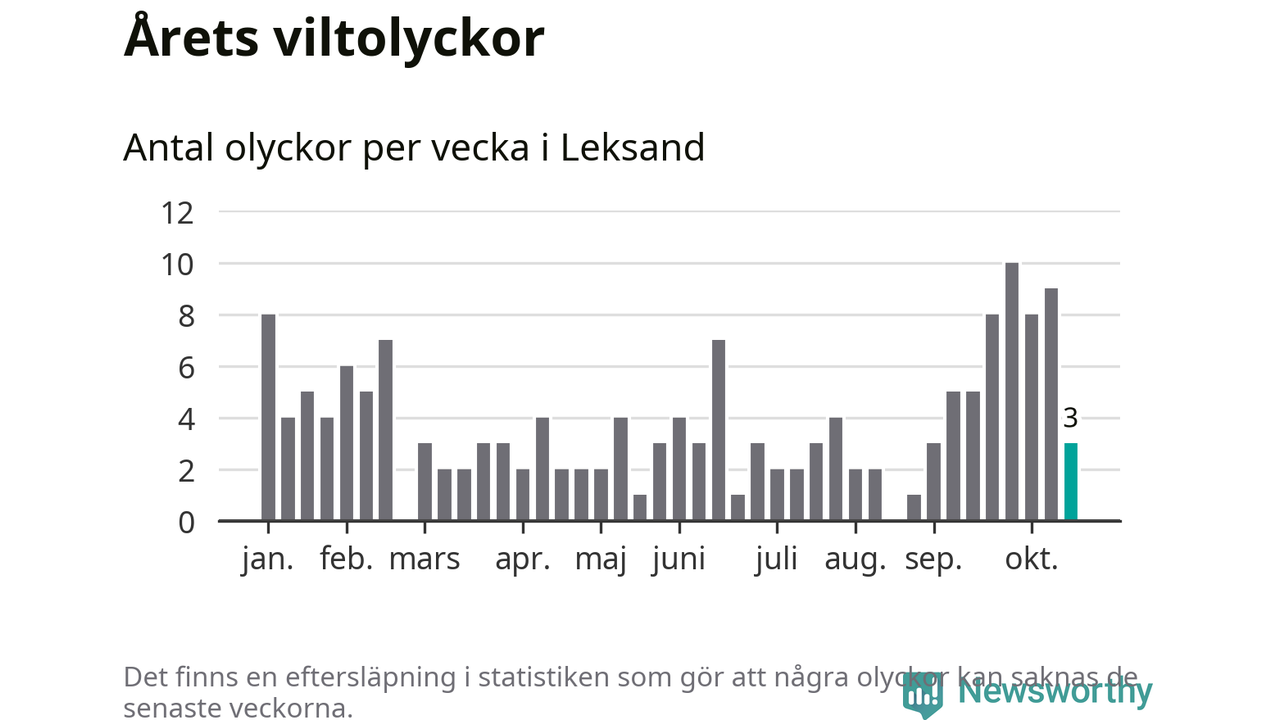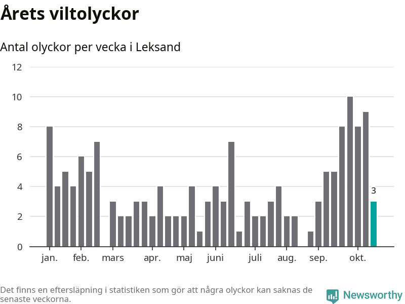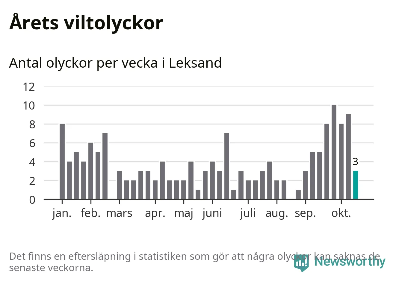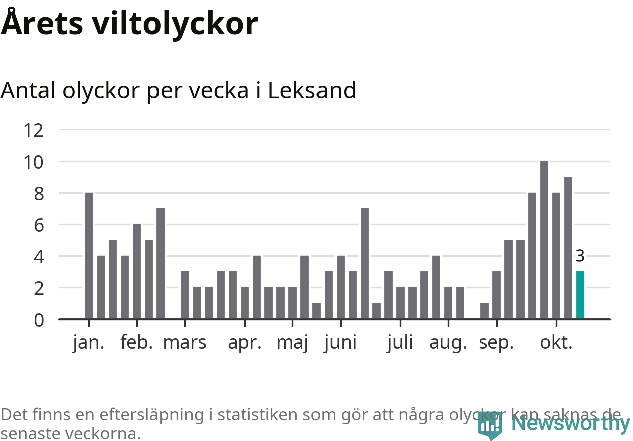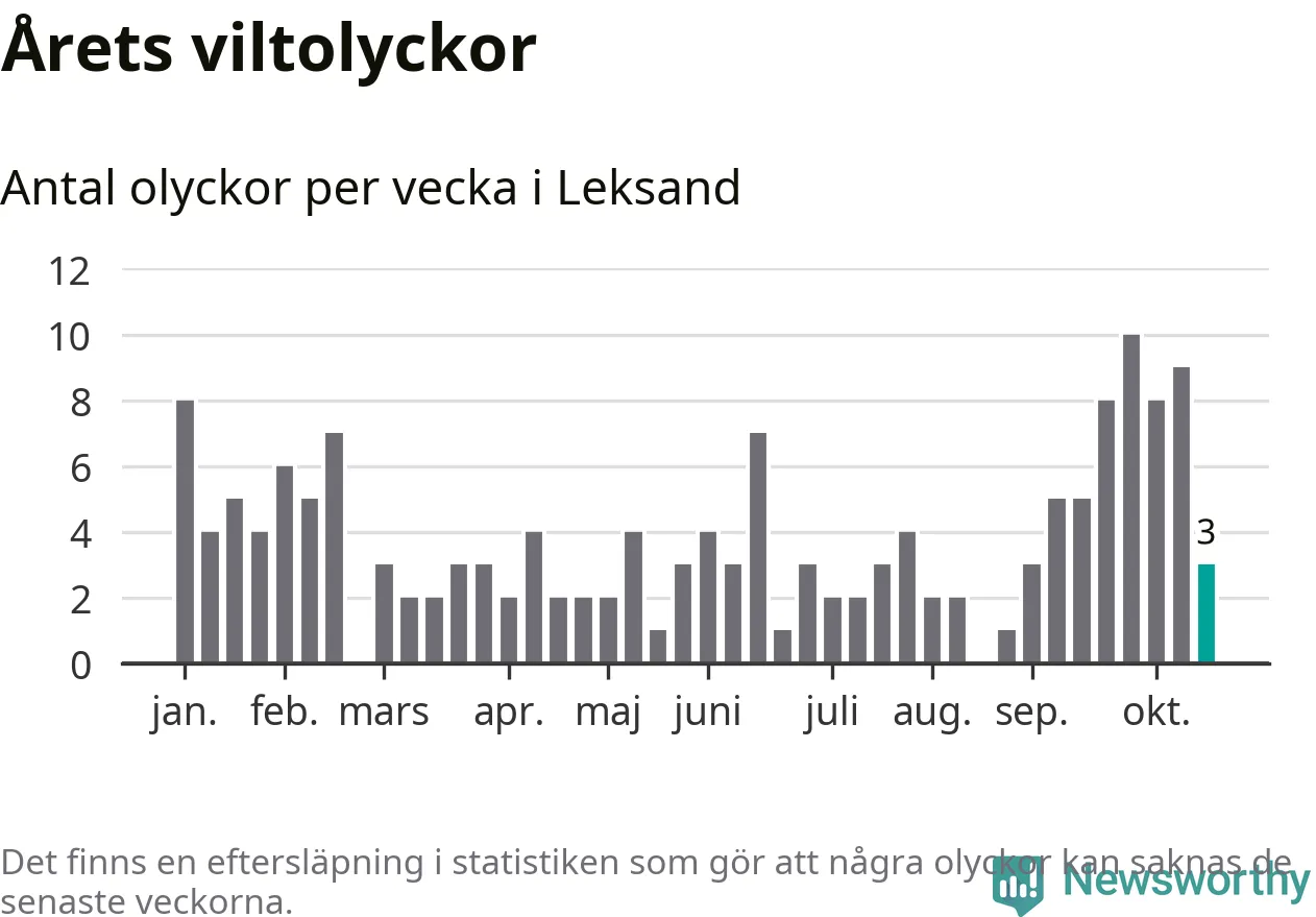 Hittills har tre viltolyckor rapporterats in i Leksands kommun från vecka 43. Se listan här.