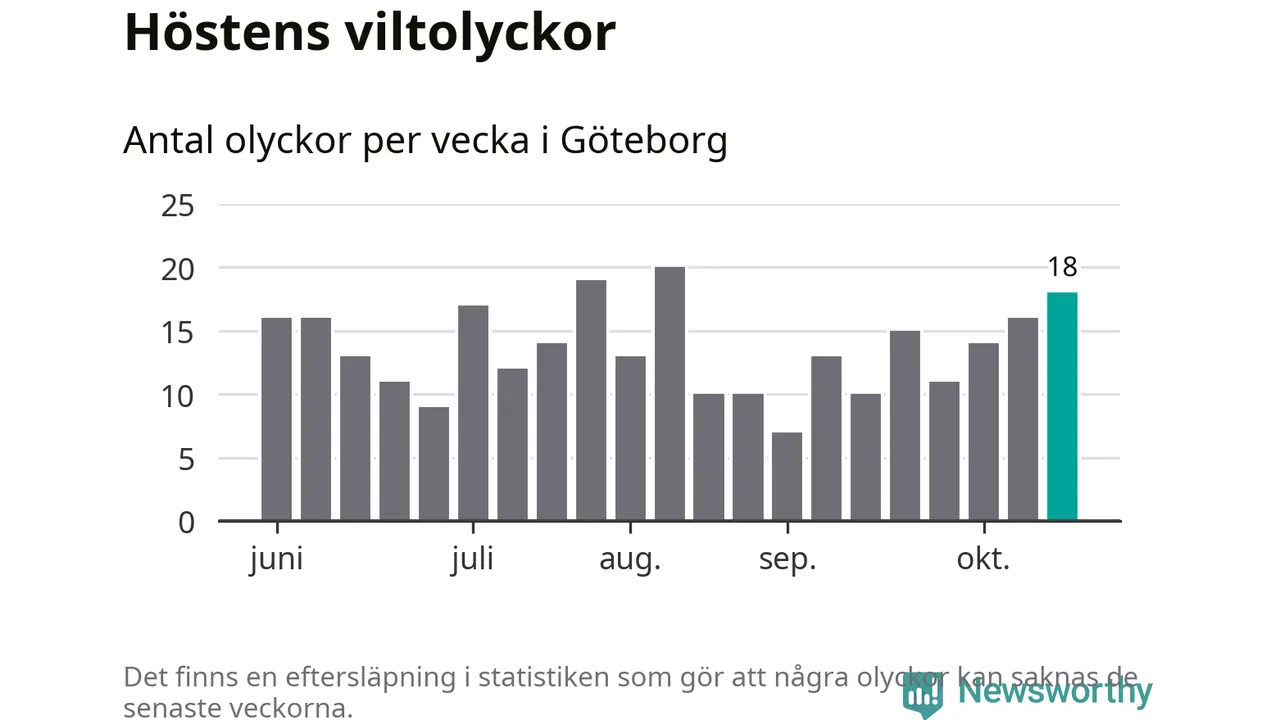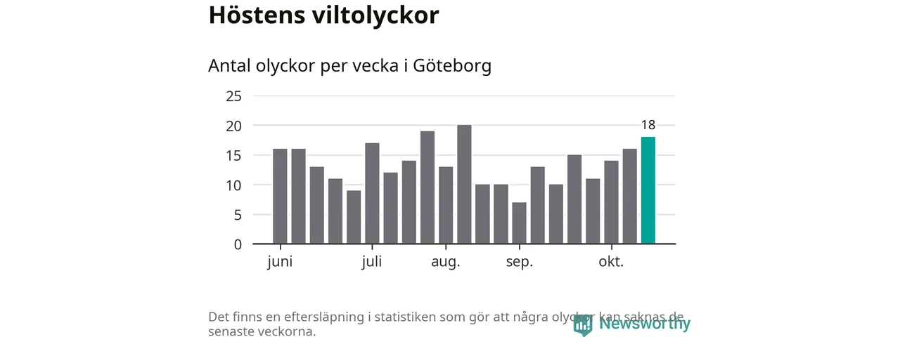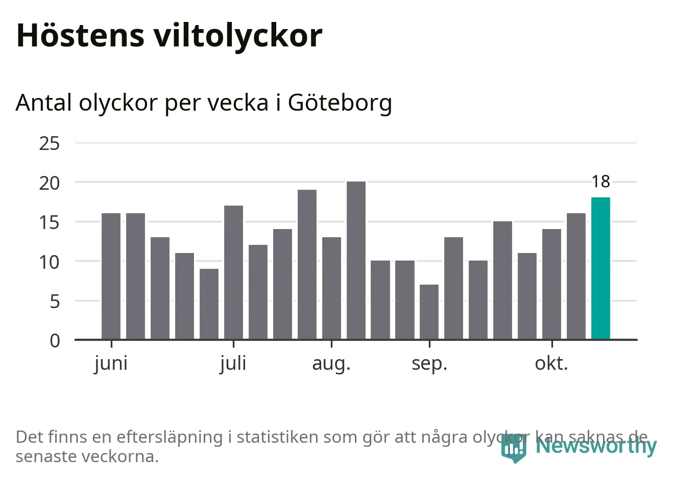 så många viltolyckor på en höstvecka i Göteborgs kommun, senast i augusti i år.