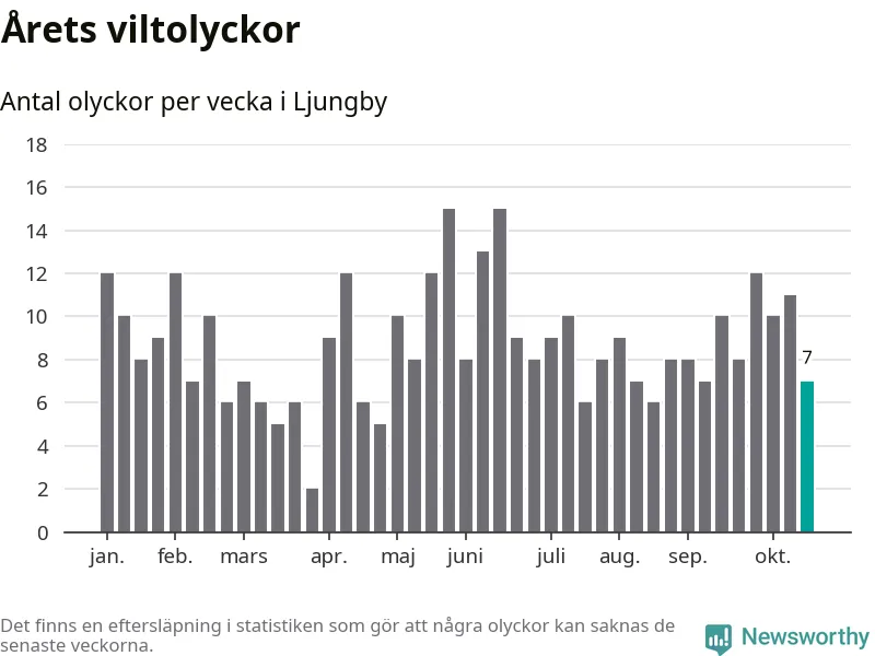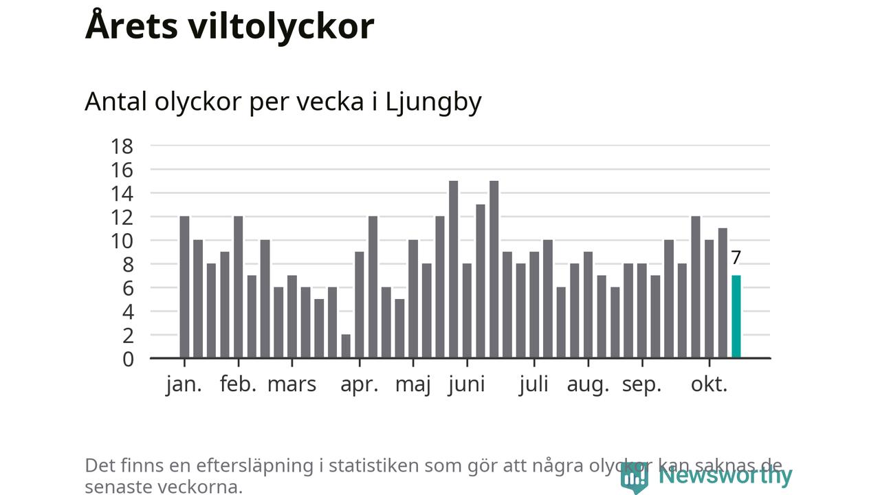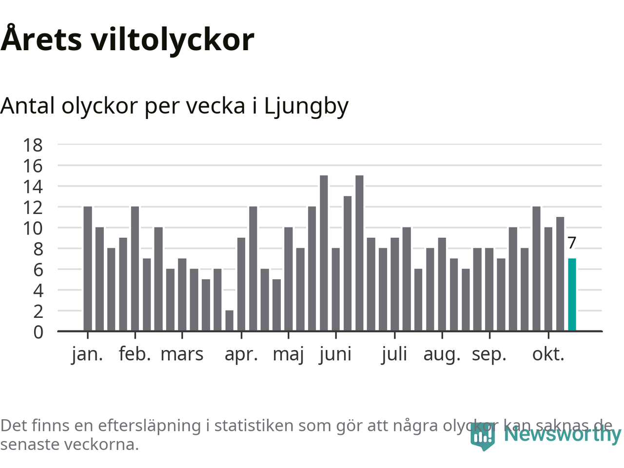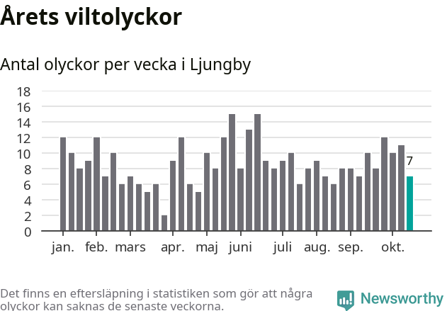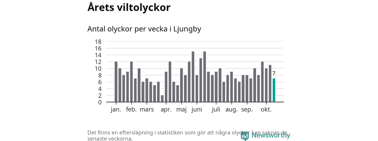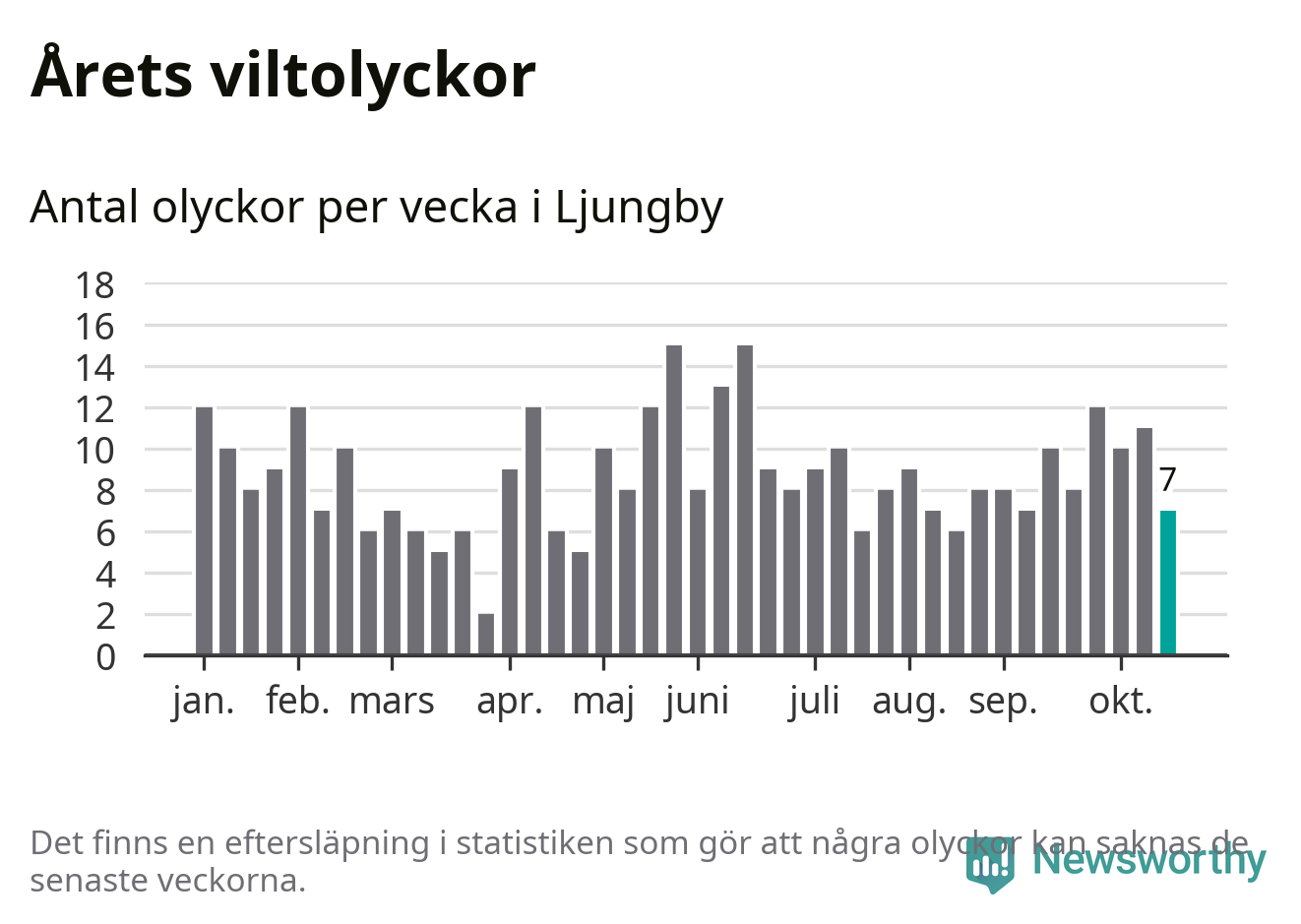 Hittills har sju viltolyckor rapporterats in i Ljungby kommun från vecka 43. Se listan här.