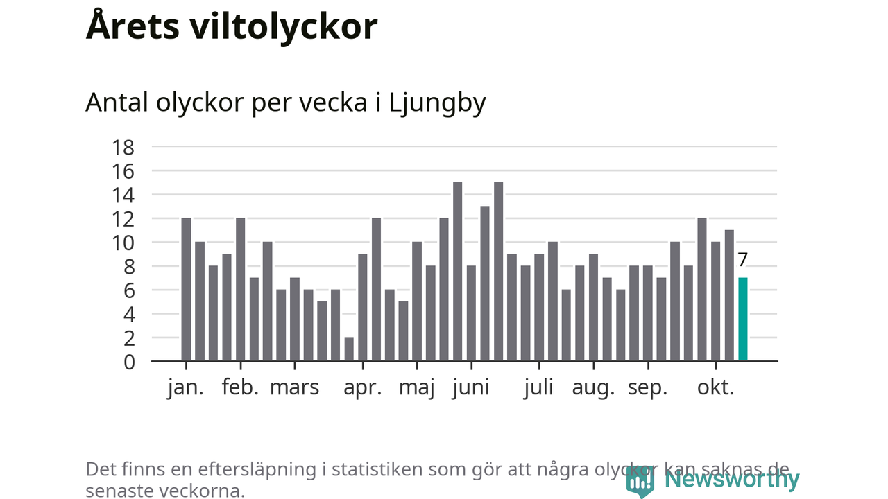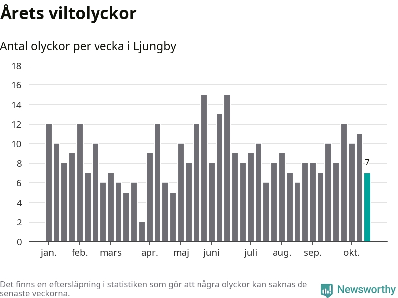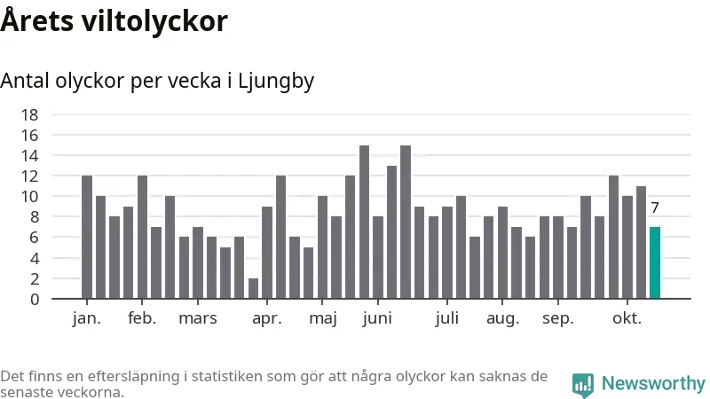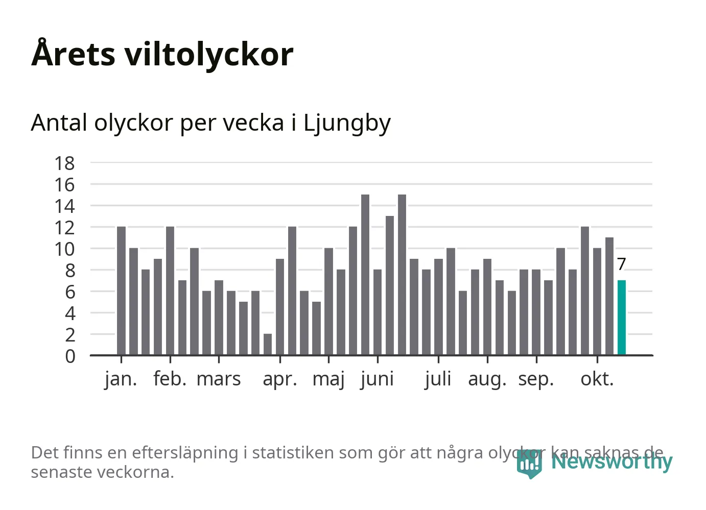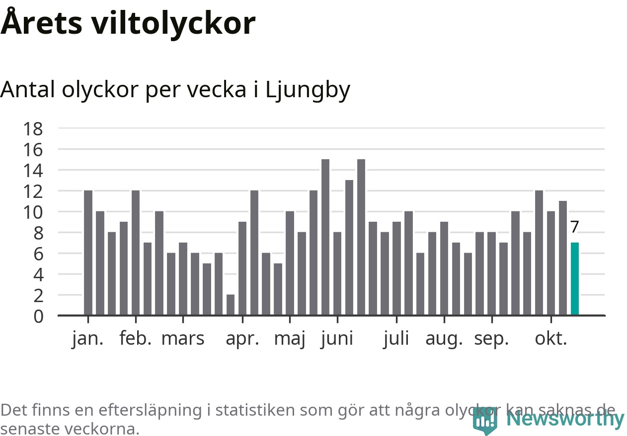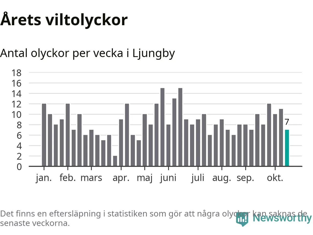 Hittills har sju viltolyckor rapporterats in i Ljungby kommun från vecka 43. Se listan här.