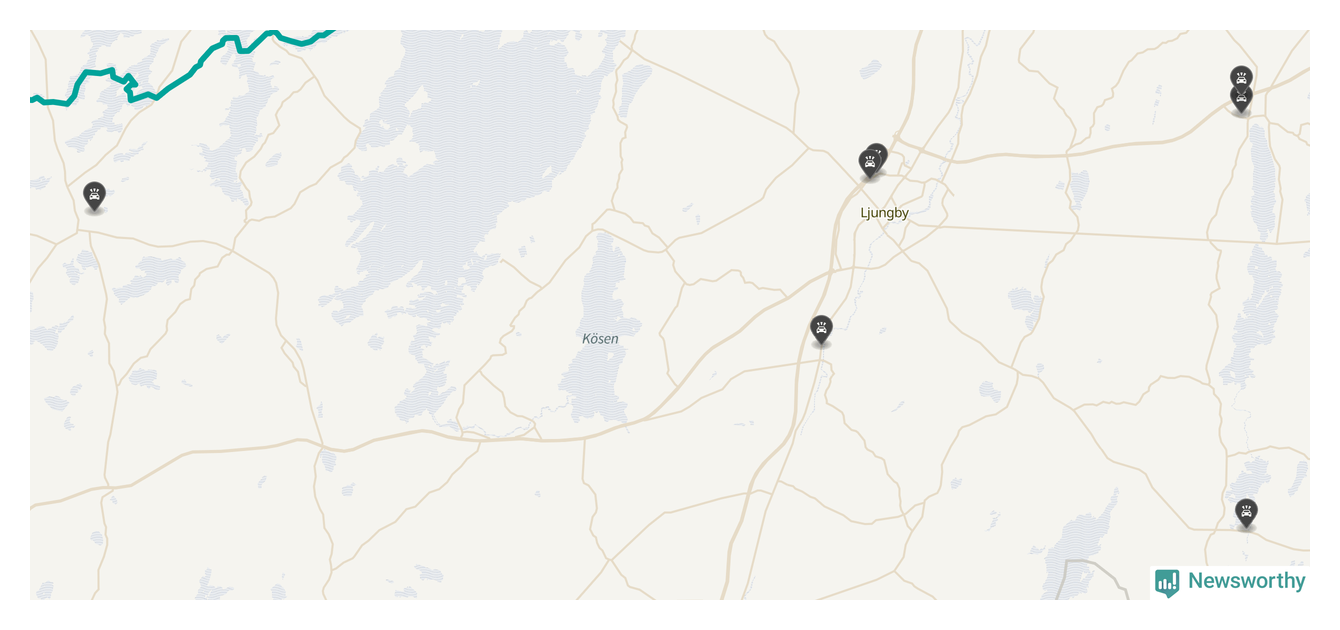 Här inträffade viltolyckorna i Ljungby förra veckan
