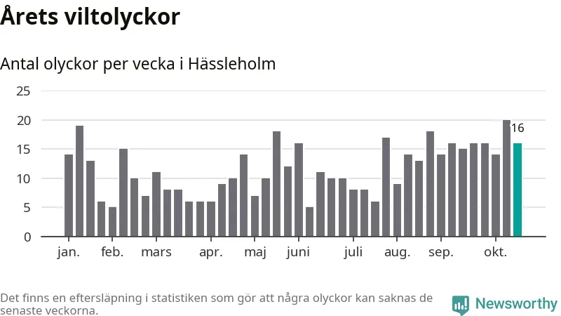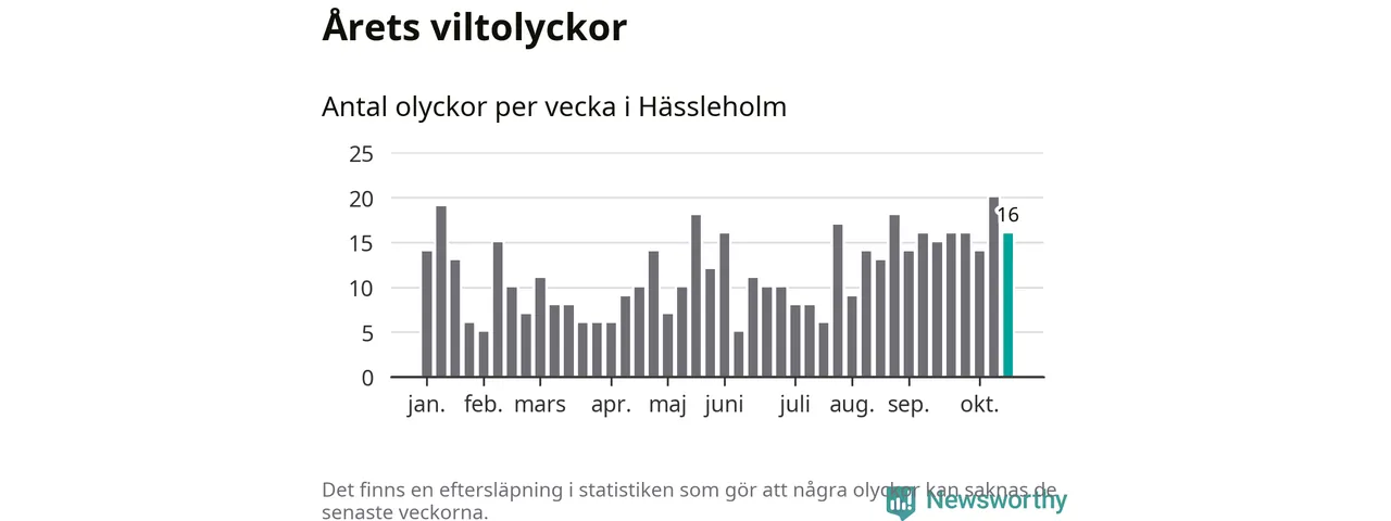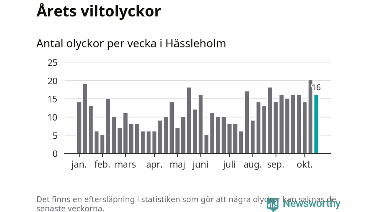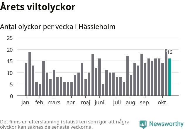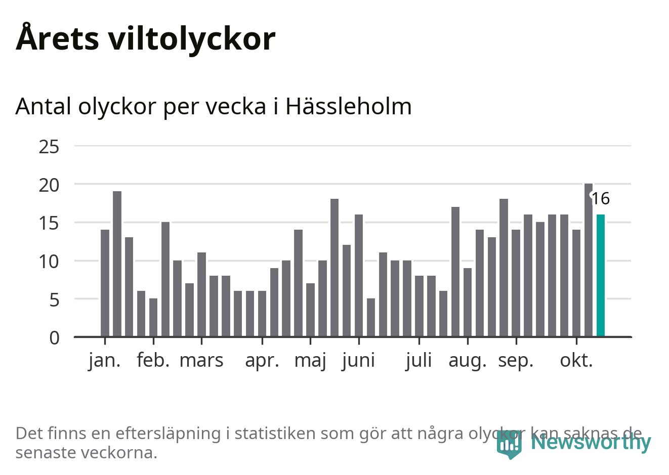 Hittills har 16 viltolyckor rapporterats in i Hässleholms kommun från vecka 43. Se listan här.